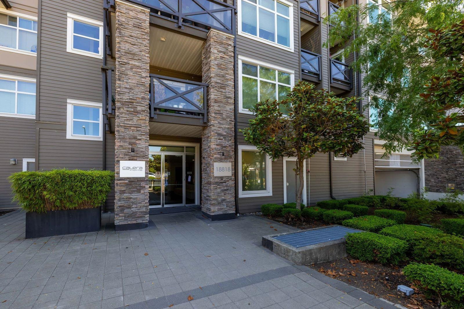 CALERA at Clayton Village! This Top floor 1 bedroom unit features a open floor plan w bring layout facing EAST overlooking the quiet side of complex. Laminate flooring & warm paint tones. Quartz countertops, stainless steel appliances & room for your desk also! Quiet covered deck to enjoy your morning coffee & watch the sunrise. 1 Secured underground parking stall & storage locker. Footsteps to shopping, Starbucks, Bus stop, Schools, restaurants & located next to future Skytrain route! A great place for your first home or downsizers.