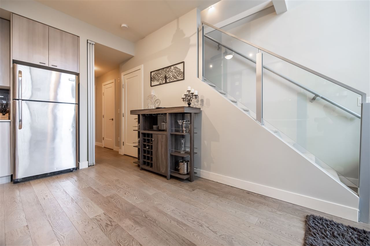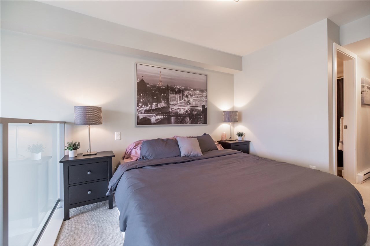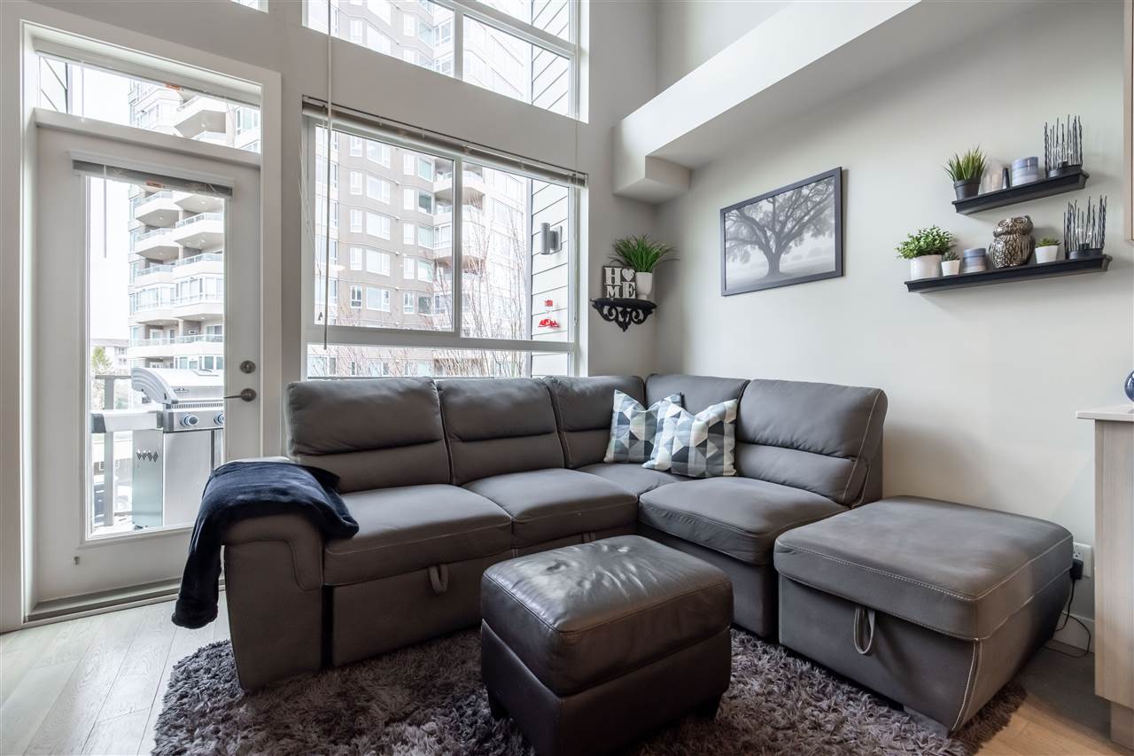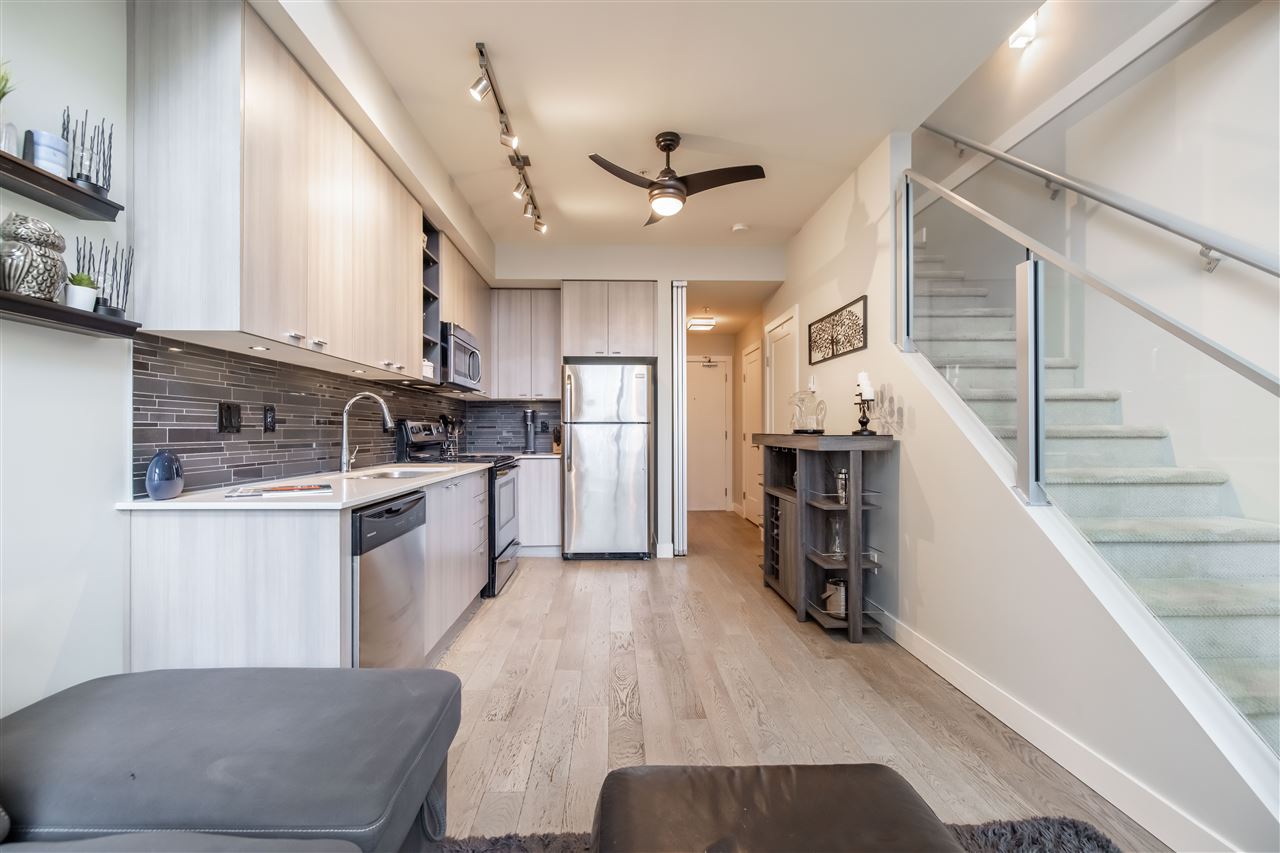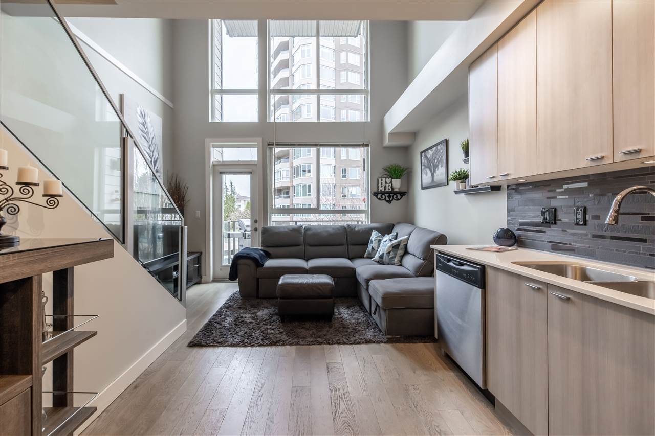 Welcome to the popular HUDSONS’S LOFT development in the heart of Central Park Village! This trendy 2 level clean 1 bdrm & den LOFT condo features 18′ ceilings and oversized windows on the quiet side of complex! Spacious Master suite upstairs with laundry for added convenience. Laminate floors in kitchen, stainless steel appliances & powder on main floor for company. Door leads to spacious deck perfect for entertaining! 1 underground secured parking stall & storage locker. Pets and Rentals allowed…great for INVESTORS! Walking distance to Trading Post Brewery, Coffee shops & more. A great place to call home!