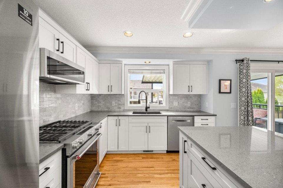 Welcome to this charming two-storey home nestled in a quiet family-oriented area of Mission. This beautifully maintained residence boasts stunning hardwood and cork floors, creating a warm and cozy feel. Beautiful recent upgrades to the kitchen and bathrooms, a gas stove perfect for culinary enthusiasts and a side hutch in dining area providing extra cupboard space/coffee bar. Enjoy outdoor living with a covered patio accessible from the dining area ideal for entertaining or relaxing while taking in the southern exposure and abundant natural light that fills the home. This property also includes a large studio suite, with own laundry and entrance perfect for guests or additional income potential. A/C. Dbl garage and lots of parking. Furnace/AC/HWT New in 2020.