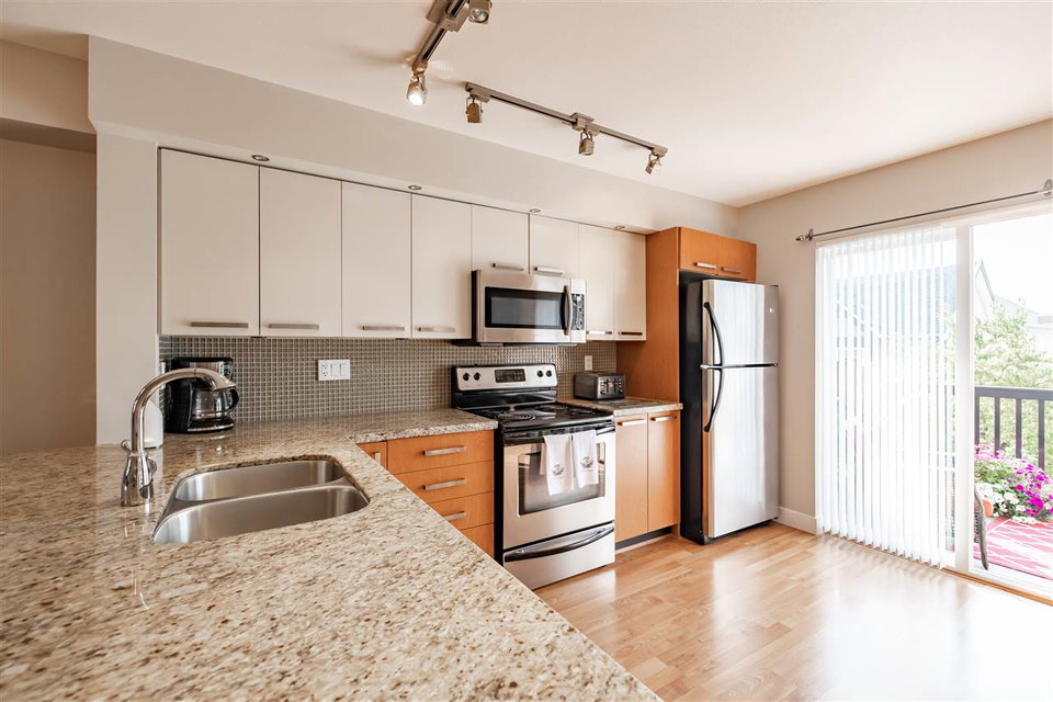 RARELY available 2 bedroom 2 bath townhouse in NUOVO! This spotless unit is in a fantastic, QUIET location with a SOUTH facing deck to enjoy your morning coffee or evening glass of wine. Open layout and PERFECT for first time buyers or down sizers. Warm paint colors, Laminate floors, spacious eating area and sliding door to your deck. Kitchen features granite counter tops, stainless steel appliances & loads of cabinets. 2 large bedrooms upstairs. Master has vaulted ceiling. 2 car garage with extra storage perfect for workshop or gym. Door leads to fenced backyard great for your pet. This home is meticulously cared for by its owners and a pleasure to show. Footsteps to all levels of schools, parks, restaurants & more!