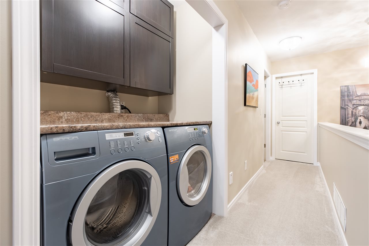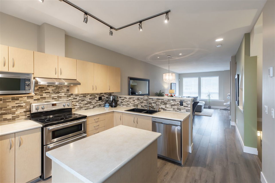 “HIGHBRAE”! Perfect Sullivan Station townhouse in meticulous condition backing onto the greenbelt walkway! This stunning 2 bdrm, 2 bath unit features warm designer paint colors, high ceilings, new laminate floors on main, new high end carpets throughout, updated light fixtures & more. Bright open layout w area for your bar stools off kitchen to entertain. Gas fireplace in spacious living area. Kitchen features stainless steel appliances, updated backsplash & room for a office or eating area. Door off kitchen leads to your private East facing deck for entertaining. Large master suite. Custom laundry area w upgraded units & storage. Incredible 2nd bdrm for kids or guests w Murphy bed! Double tandem garage w workshop area. Fenced rear yard w lower sitting area as well. 10 out of 10!