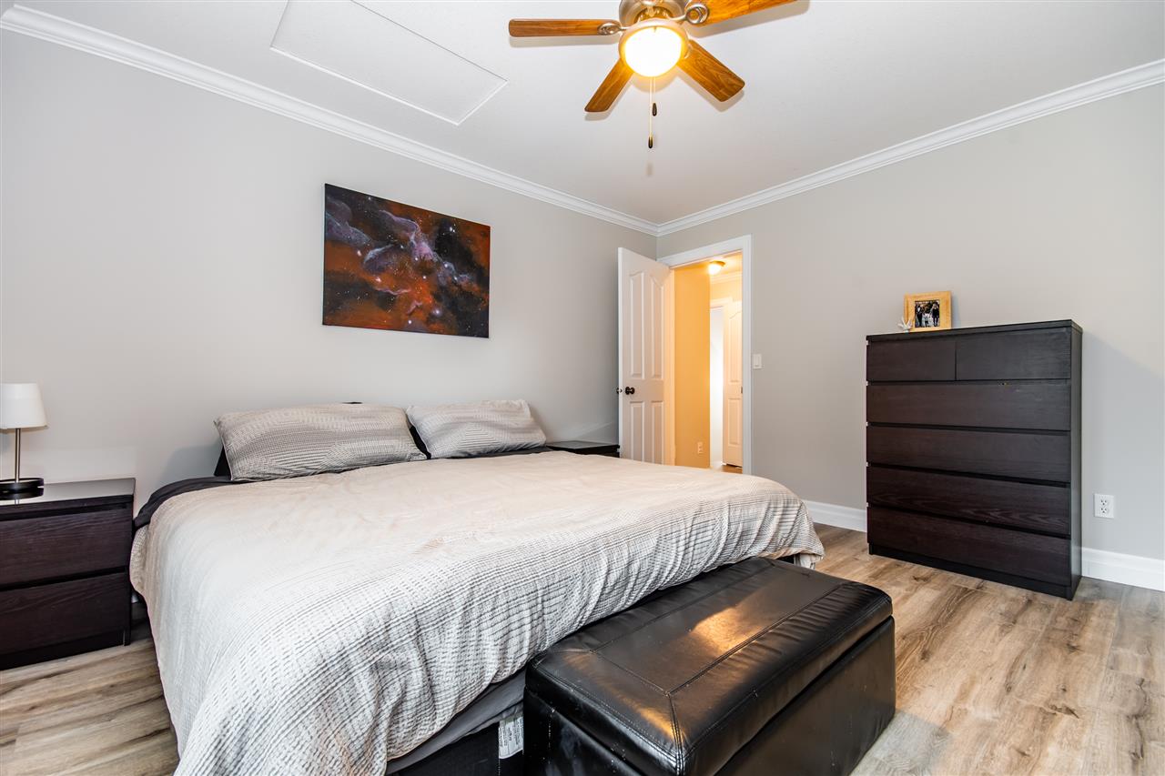 Bright and beautiful! Awesome central location close to schools, shopping and other amenities nearby. Lots of living space and easy to imagine yourself living here! Great modern vibe with the updated flooring, fresh neutral paint and even a new hot water tank! CONVENIENT Master Bedroom on the main floor with 4 piece ensuite and walk in closet. The basement gives you even more functionality for storage, a rec room and a 4th bedroom which is currently being used for THEATER room. Double car garage and good sized driveway for parking. Enjoy the outdoor living on your patio and beautiful yard space. Rentals not allowed. Pets allowed with restrictions. Two total of cats or dogs. No height or weight restrictions. A must see – call me today to book a viewing! Live happy in this home.