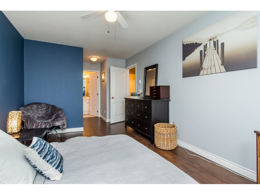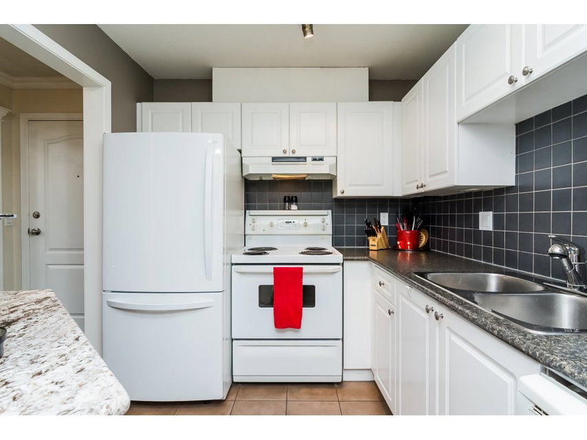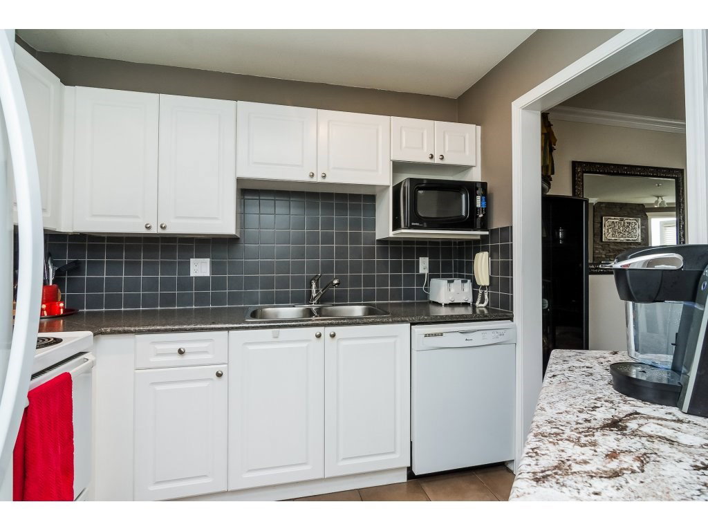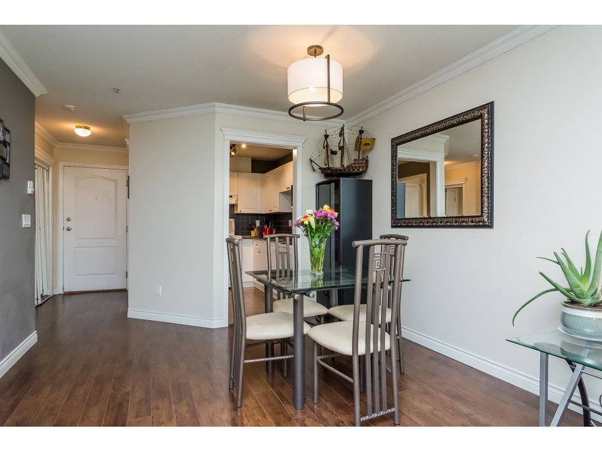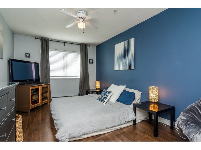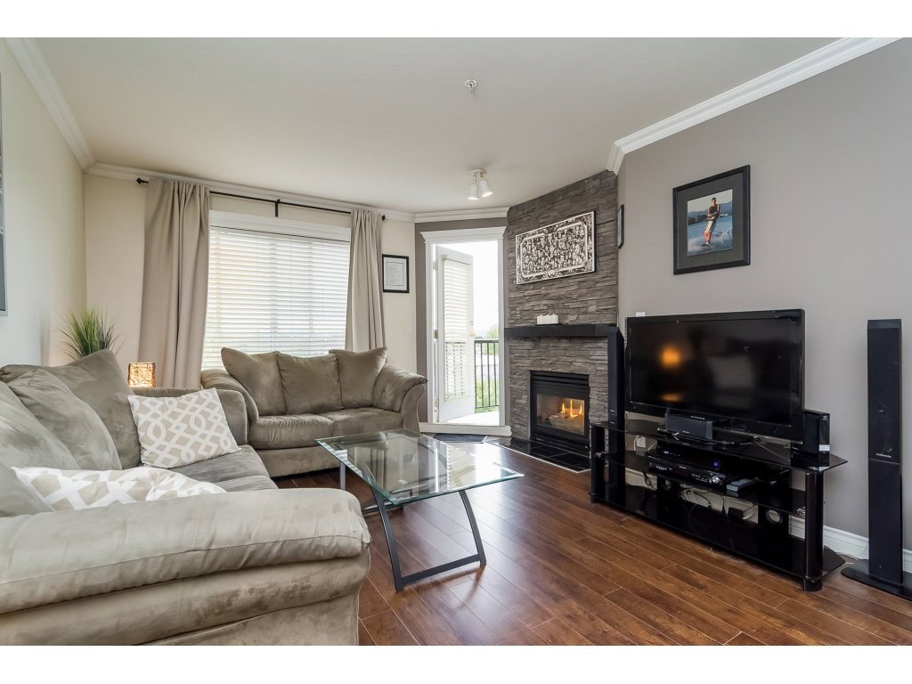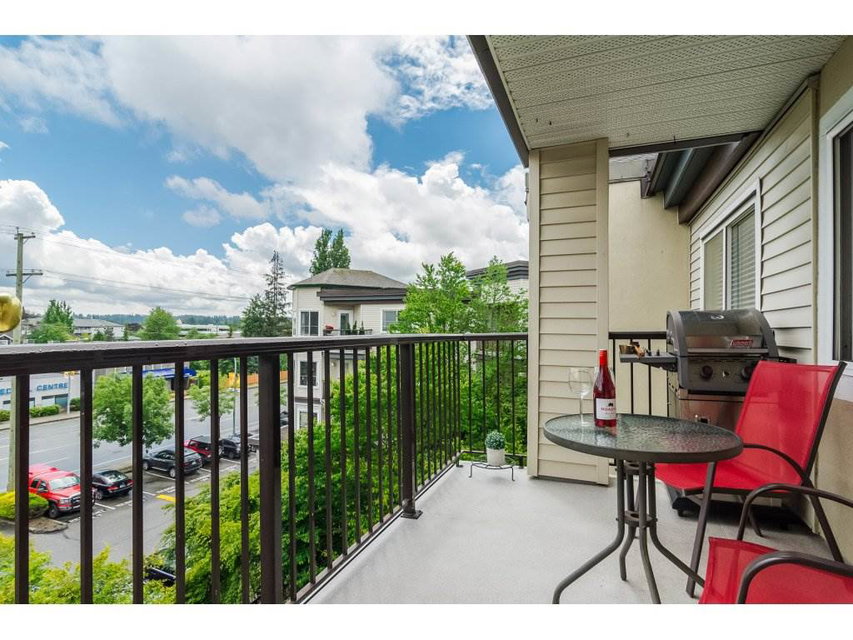 COLLEGE COURT! Attention first time buyers or downsizers! SPOTLESS TOP FLOOR 2 bedroom 2 bath condo in the heart of Langley. This immaculate unit features upgraded laminate floors, warm paint colors, crown moldings, & upgraded light fixtures. Newer kitchen counter top , white appliances & cabinetry & tile floor. Cozy living area features a gas rock fireplace and door to a perfect bbq deck to enjoy a glass of wine. Gas & hot water included in monthly strata fee. Huge master bedroom with walk in closet & full bath. New washer/dryer. Freshly painted bathrooms. Secured underground parking stall. Footsteps to Shopping, restaurant, bus loop & Cascades Casino, & Kwantlen College! This unit shows pride of ownership.