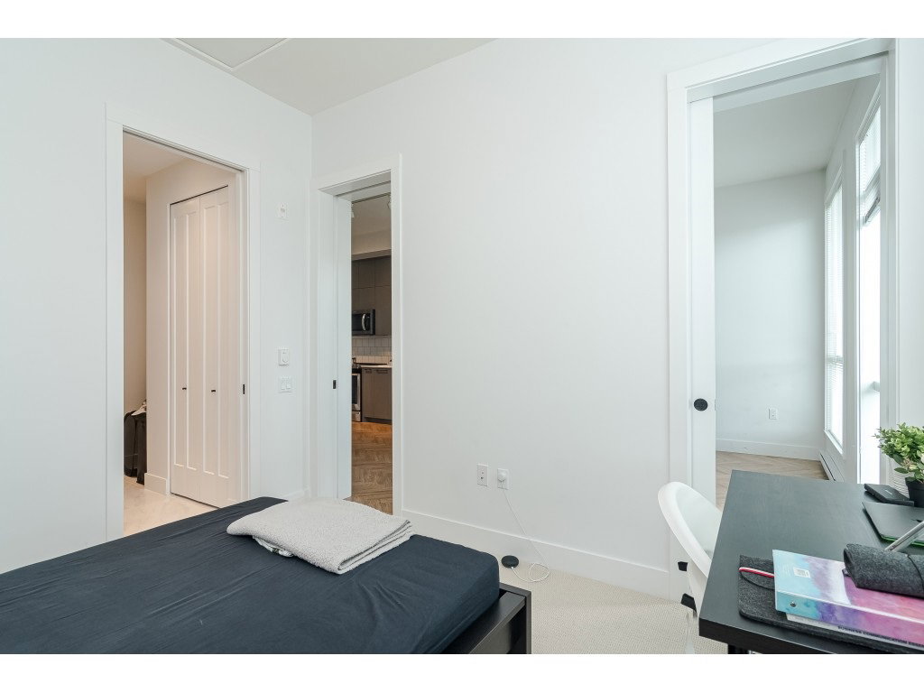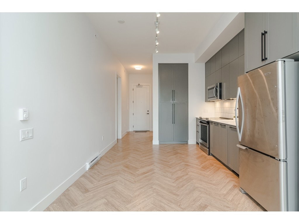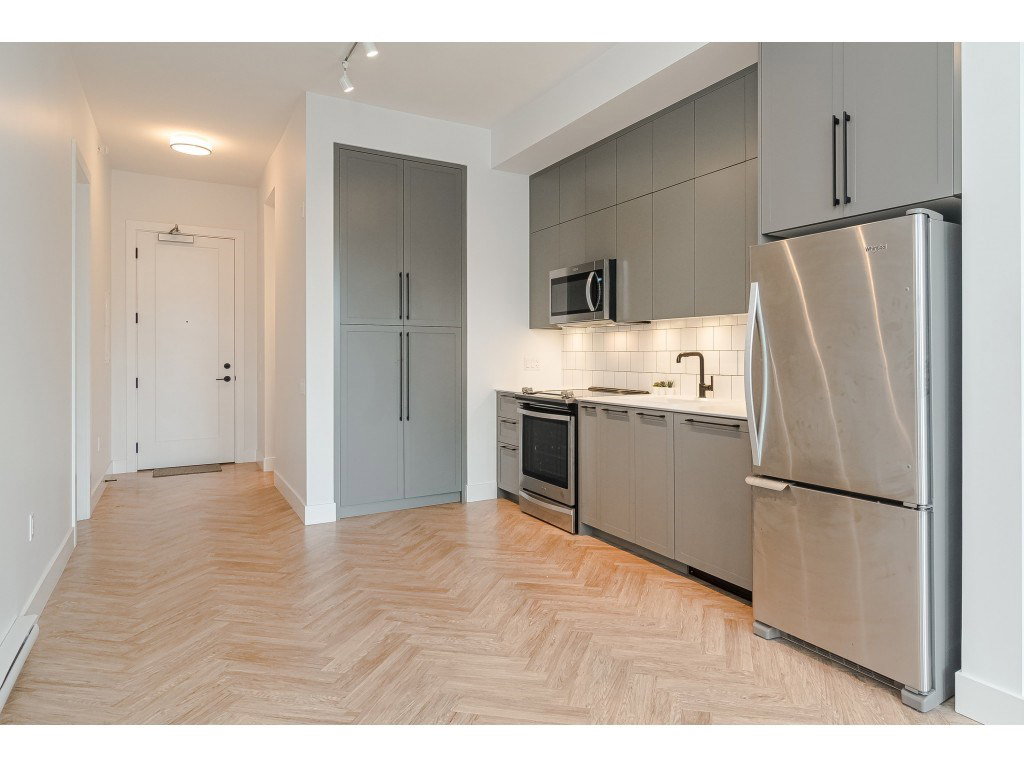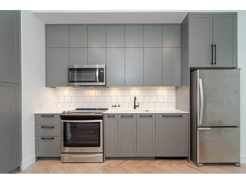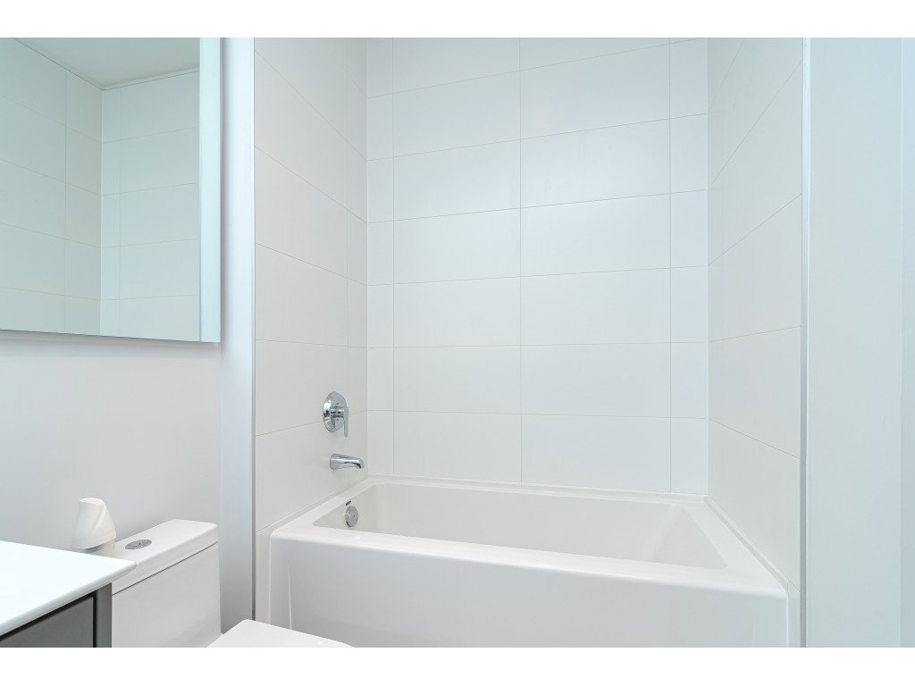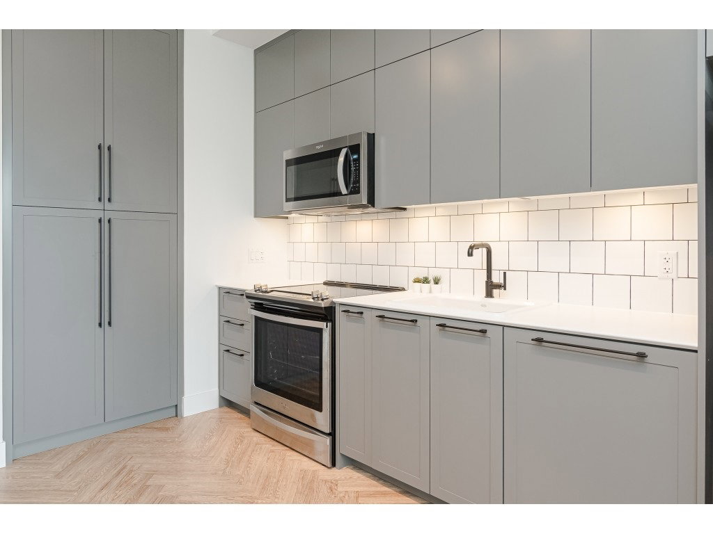 GUILDHOUSE by MOSAIC. Georgian-Style Top Floor Unit located on the quiet side. Highly functional floor plan with 10 ft ceilings and 8 ft windows, 2 Bedroom + 2 Bath room and 1 parking & Storage. Lots of natural light in this unit. Spacious master bedroom with spa-inspired walk through closet and bathroom. Reinforced TV wall, recessed LED pot lights throughout the unit. Kohler sink/faucet with porcelain sink/tiles, dual flush toilets in the bathrooms. 2-5-10 New Home Warranty included. Just steps away from Guildford Mall, Movie Theatre T&T supermarket, Walmart and Superstore, Transit, Schools and close access to HWY 1. All Sizes are approximate.