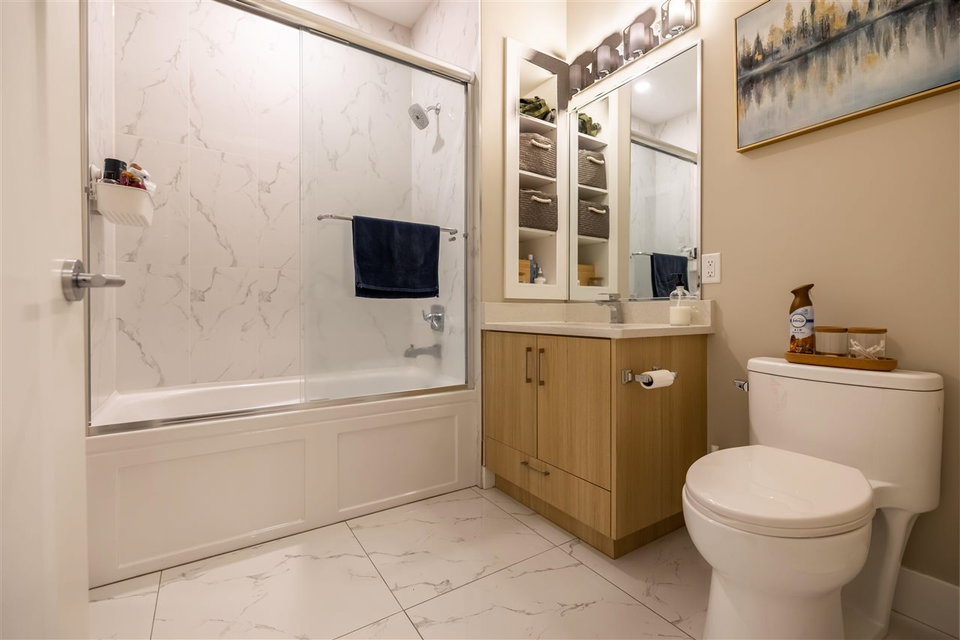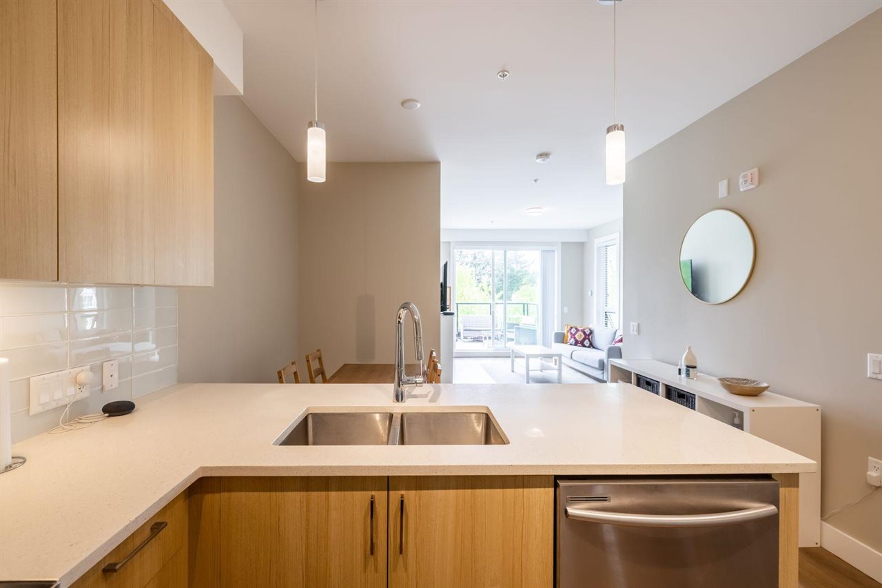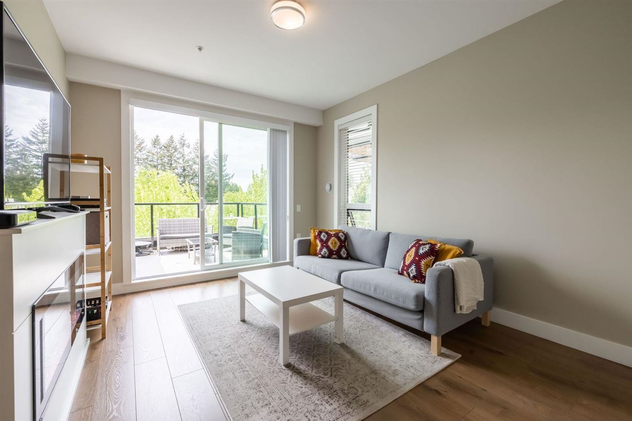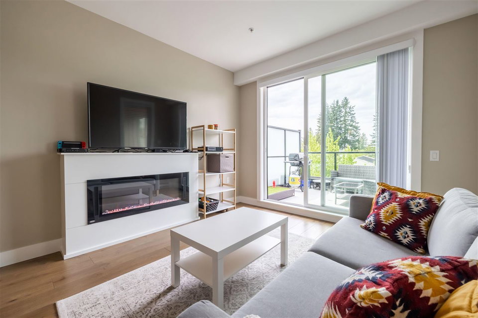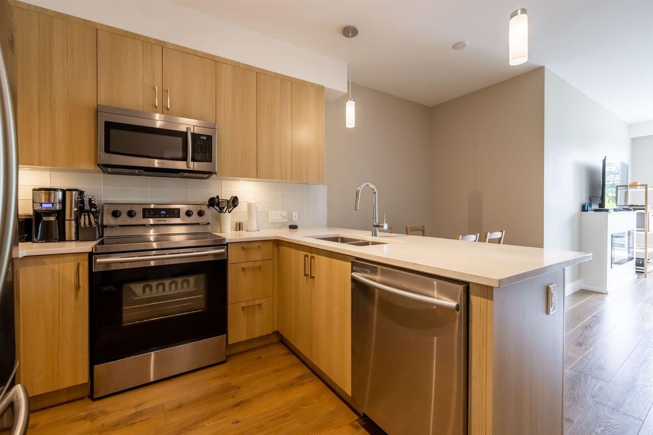 ORION in the heart of Pitt Meadows! This 2 year old complex is walking distance to everything. Perfect TOP FLOOR corner unit is bright and offers a open floor plan. Entertain on your incredible spacious deck and a great spot for summer BBQ’s! Modern kitchen finishing’s with quartz countertops, Stainless steel appliances, room for your bar stools, laminate floors and more. Large bedroom with room for your computer desk! Extra storage in suite as well. Contemporary design and perfect location behind Meadowvale Mall. Easy access to parks, highway, nature trails, shopping, gym & more. Pets and Rentals allowed! Come check it out