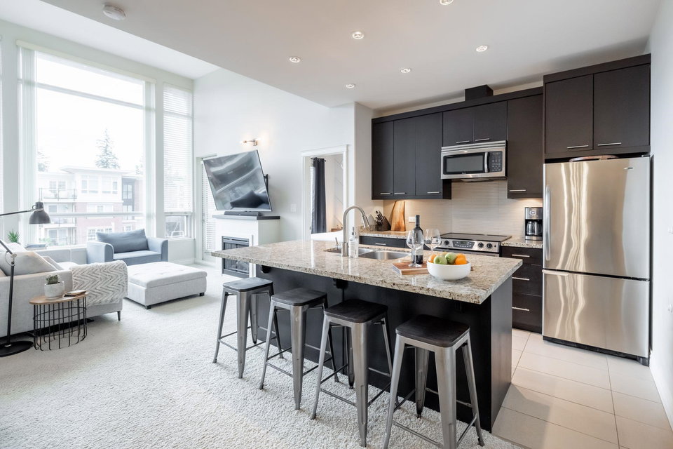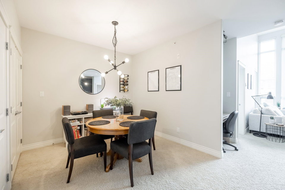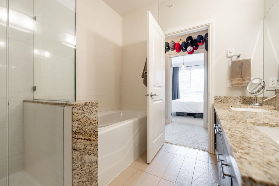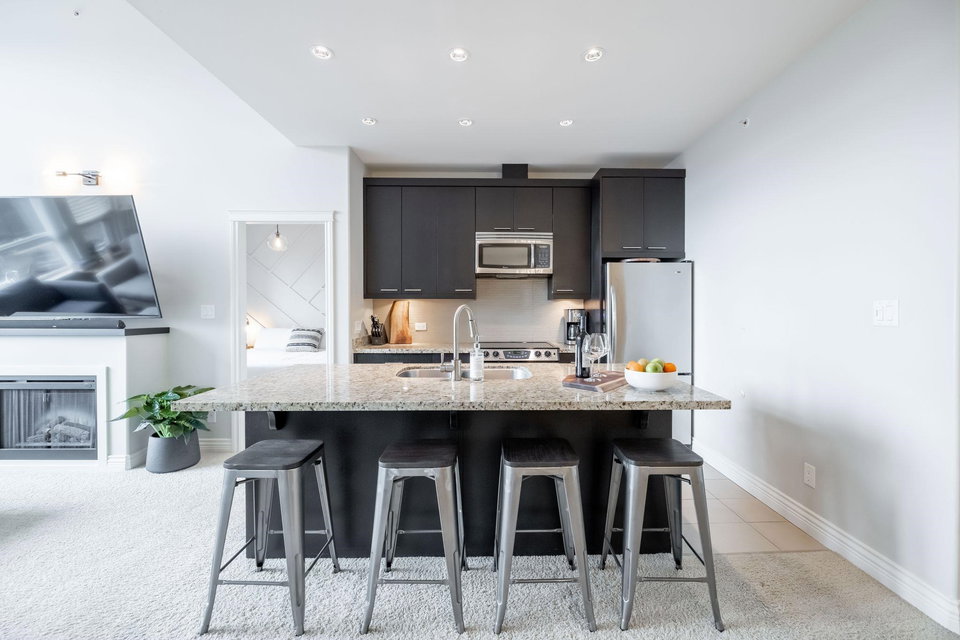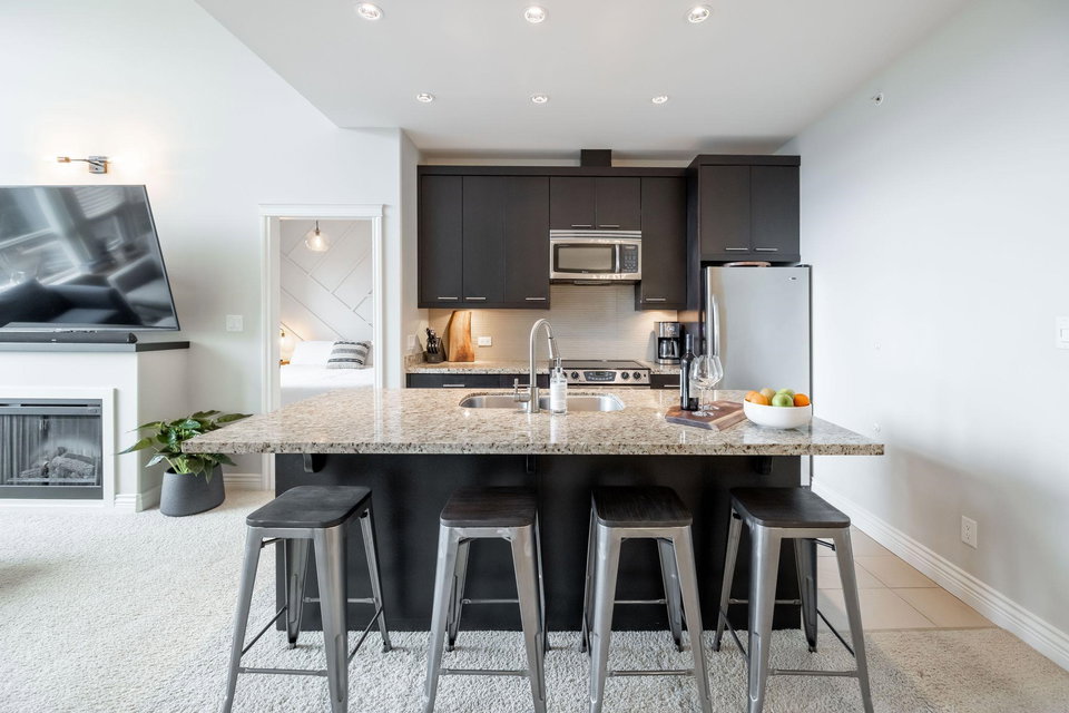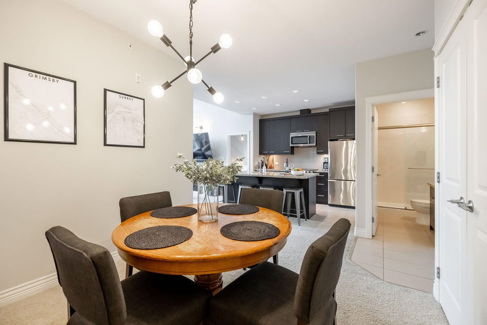 Welcome to Watermark! Very proud to showcase this 923 sq ft, TOP FLOOR unit in one of South Surrey’s most sought after complexes located above the Shops at High Street! You will love the 13 foot vaulted ceilings in your living room layout and a gourmet kitchen with oversize island, makes it perfect for entertaining family and friends! The home has 2 large bedrooms on opposite sides of the unit, your primary bedroom features a custom walkthrough closet to your ensuite with dual vanity and separate soaker tub and shower! A location that can’t be beat, you are walking distance to shops, restaurants and parks! Quick highway access is another bonus! Don’t miss out, call today for your personal tour!