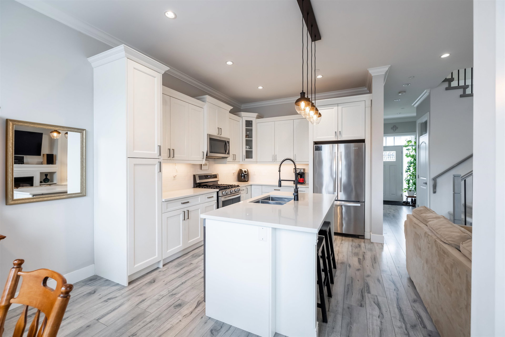Welcome to this pristine 3 level home nestled in the sought after Auguston Neighbourhood of East Abbotsford. This immaculate residence boasts tasteful updates creating a move in ready oasis for your family! 2677 sq ft w bright floor plan. Large windows allowing loads of natural light, and the modern kitchen has ample storage & huge pantry! Stainless steel appliances, gas range & great island to entertain! Adjoining family room w gas fireplace. Den on main floor makes a great home office or play room. 3 bedrooms upstairs w oversized master, walk in closet & beautiful ensuite bathroom. Full size laundry room upstairs also w sink for added convienance. Downstairs features a new 2 bdrm suite w high quality kitchen. Great fenced yard w large deck space for bbq’s. Double car garage.WOW!