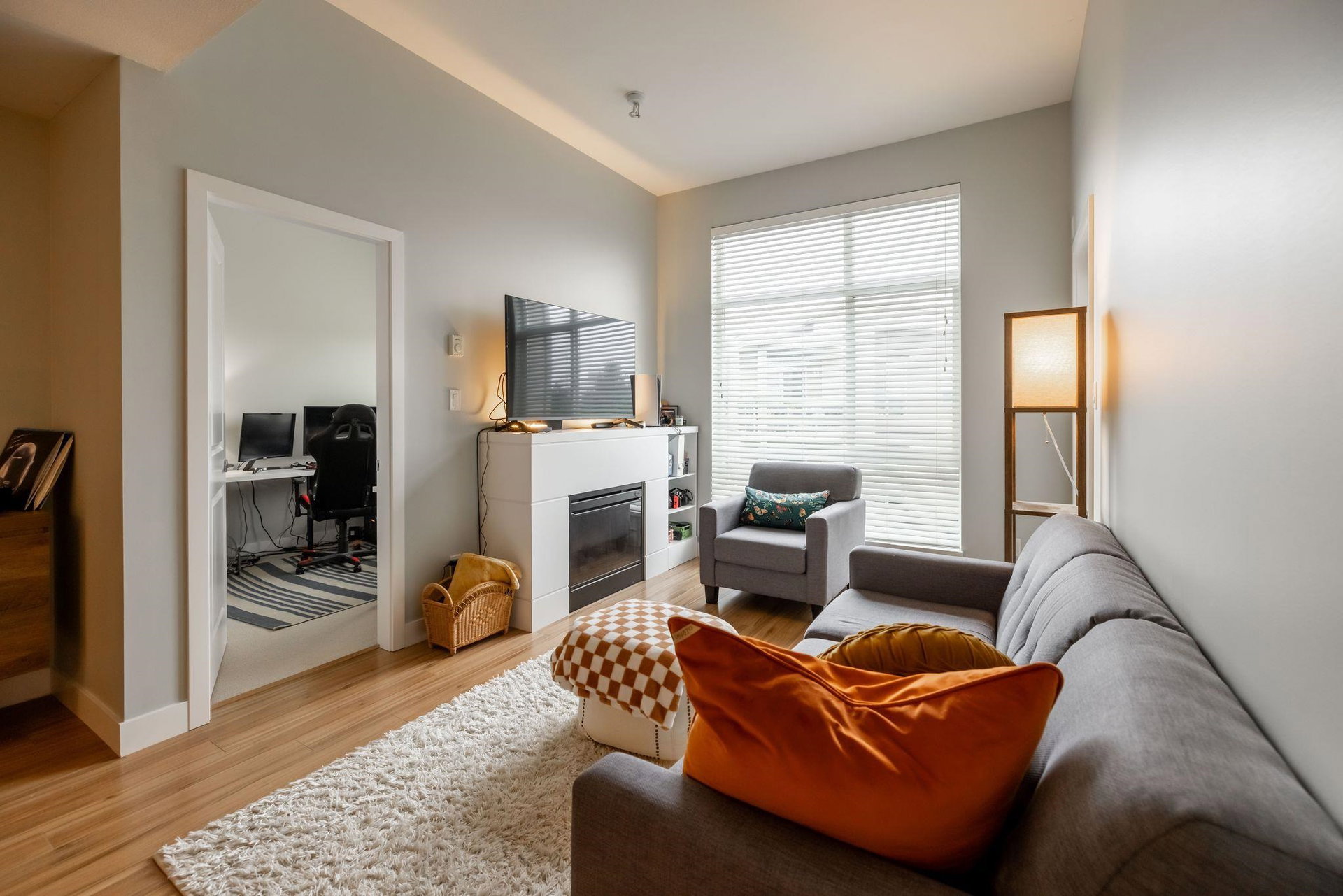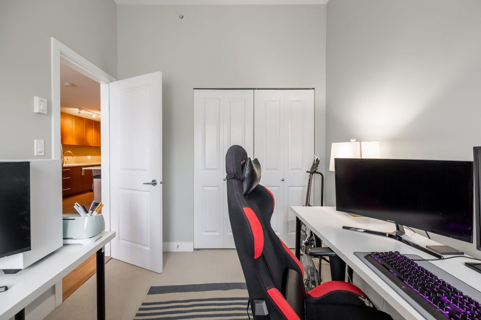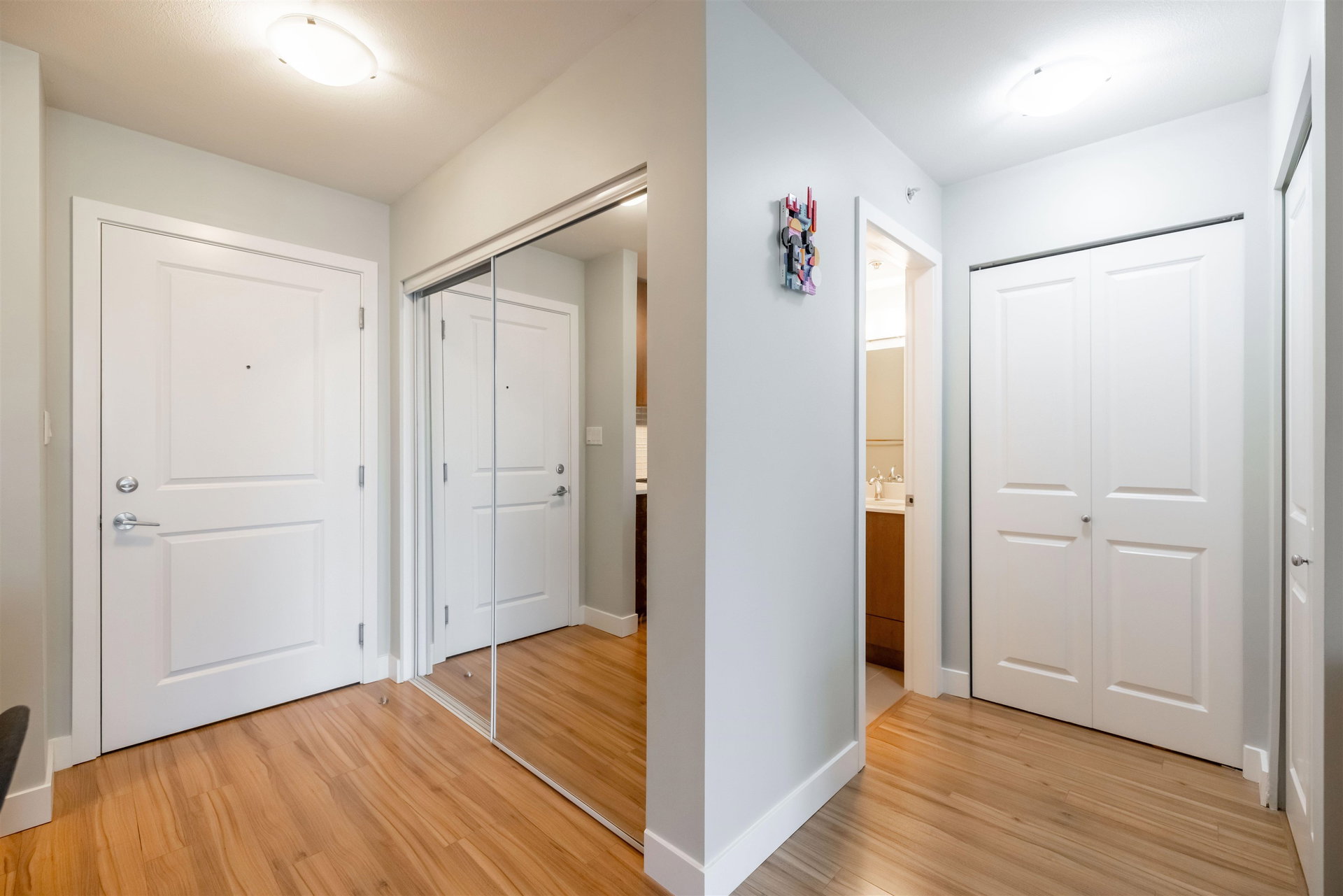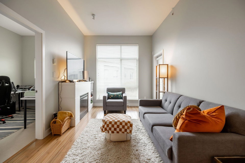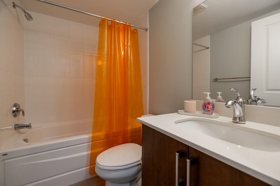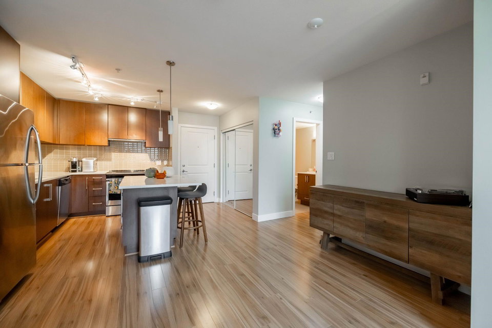 Welcome to the SUMMIT HOUSE at Morgan Crossing! We are proud to showcase this spotless 2 bedroom 2 bath TOP FLOOR unit overlooking the serenity of the rooftop green space the complex is known for! 2 bedrooms on opposite sides of the unit and 10 foot ceilings in the living room! Kitchen features quartz countertops, stainless appliances and gas stove! Underground secured parking stall & storage locker. Unit in fantastic condition in great complex! Morgan Crossing features 60+ shops and walking distance to all levels of schooling, shopping, parks and convenient highway access! This will not last, call now for your personal tour!