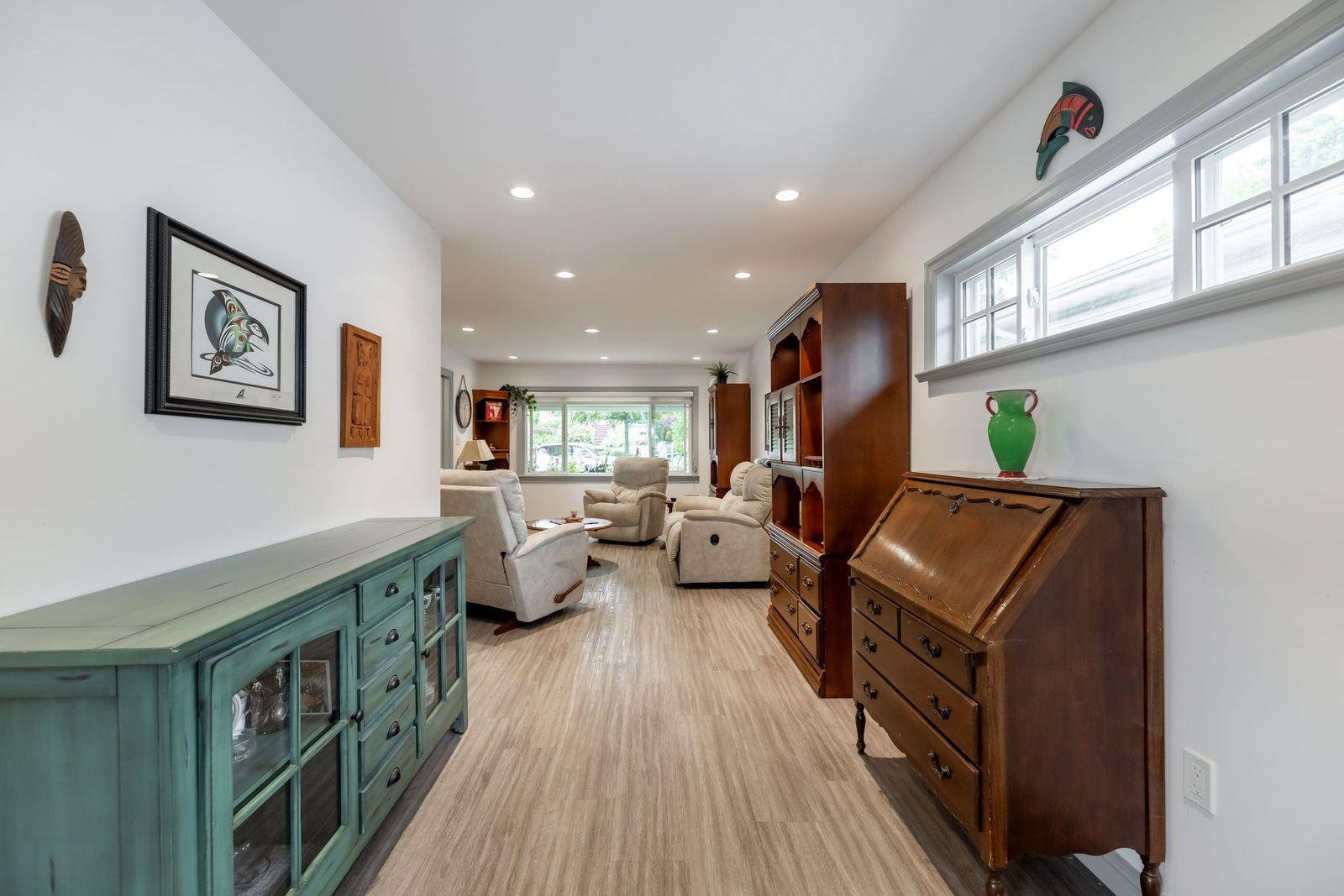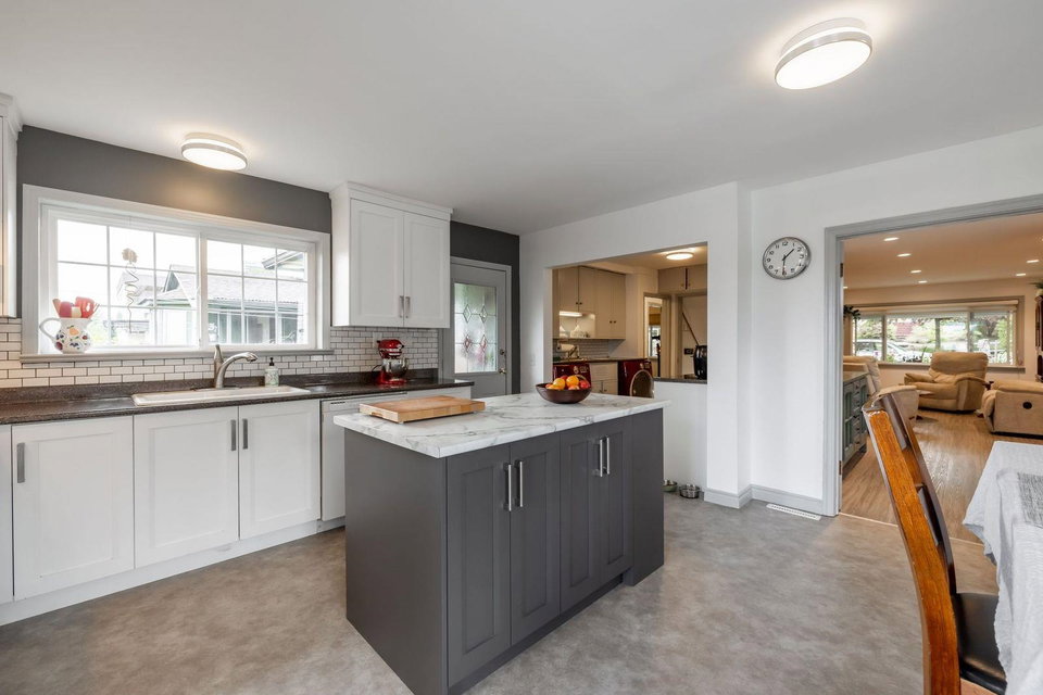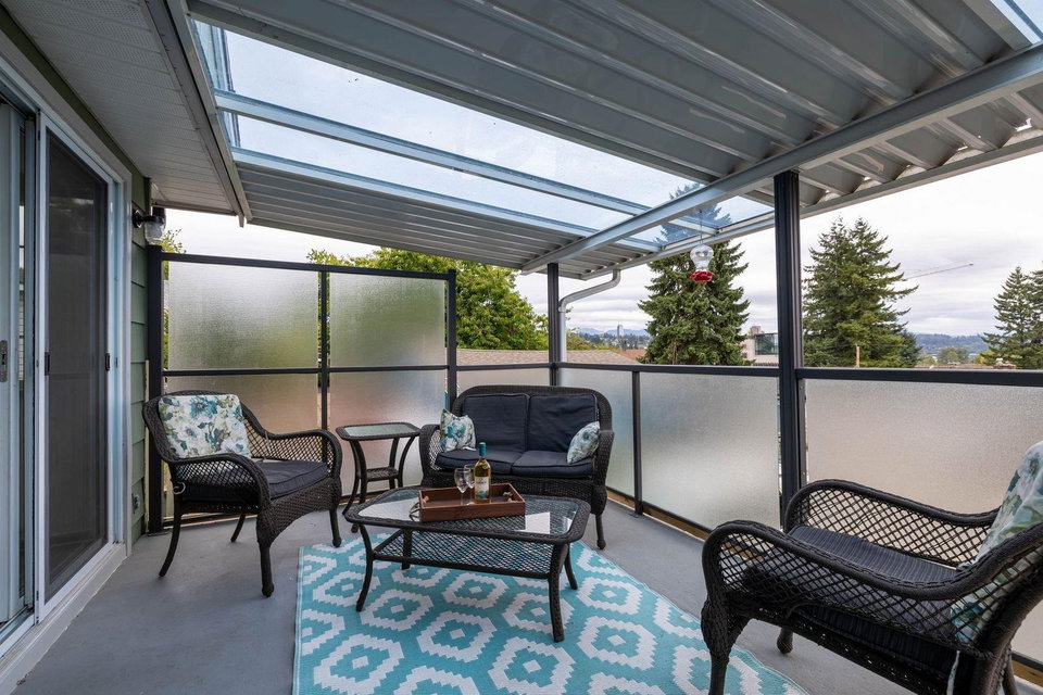 Sapperton Charmer w City Skyline & River views from this well kept Rancher with full basement home! First time on market in 78 YEARS. Located on a quiet street & situated on the Southeast side taking advantage of the views. 2 bedroom up & 2 bedrooms down. Loads of updates including warm paint tones, laminate floors, potlights, bright white kitchen, w island for entertaining & lots of natural light. Sliding door off kitchen leads to covered deck to enjoy a glass of wine. Large laundry area w full size washer/dryer & storage. Guest room downstairs separate from the suite is a great bonus. 1 bedroom mortgage helper w great tenant. Newer carpets in home. Spacious suite w large kitchen. Big rec room/living room w cozy gas fireplace. 5108 sq ft lot w back lane & 22’x23′ shop!