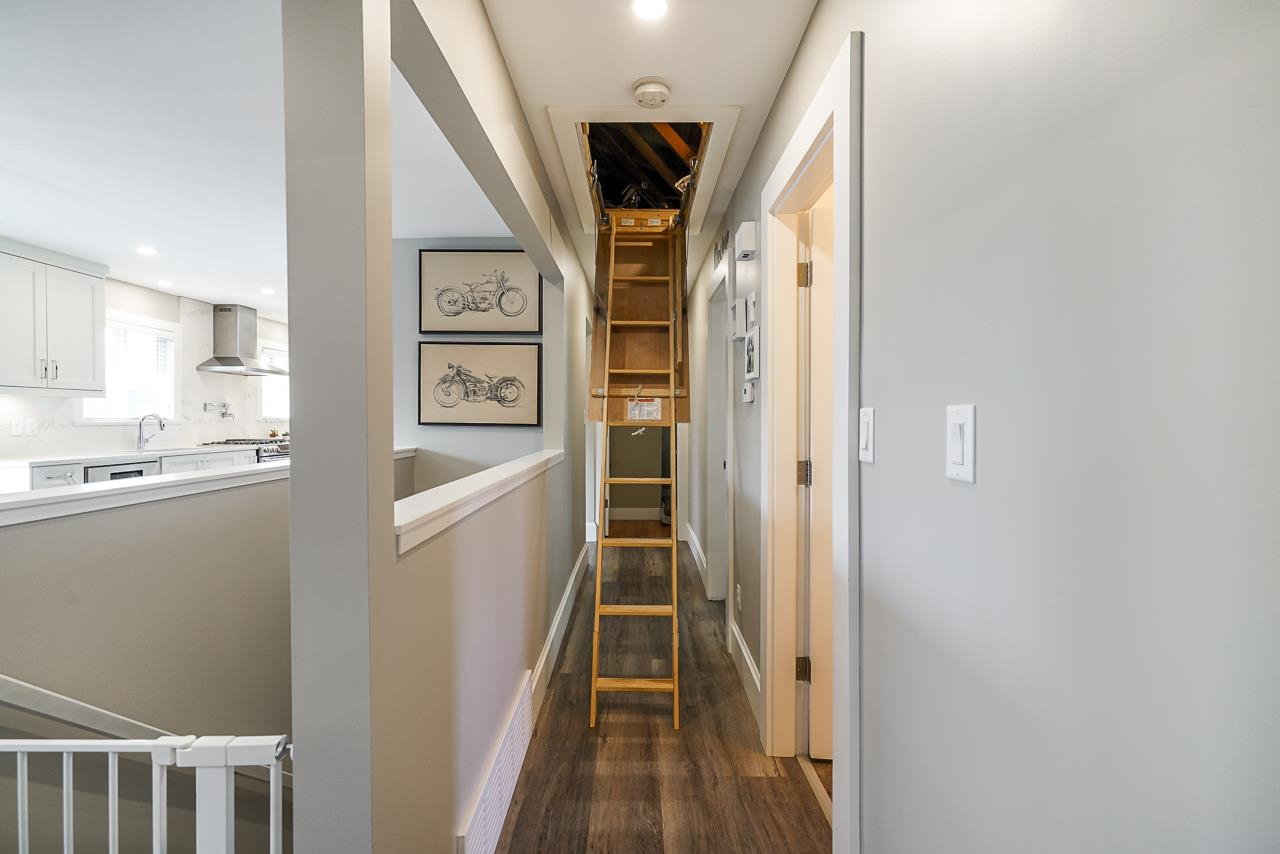 Located on a quiet cul-de-sac street, this professionally renovated home with attention to detail is a must see! Major updates include fresh paint and new flooring throughout, new roof, windows, perimeter drains, landscaping & more! Main floor features a stunning open concept kitchen and living room with floor-to-ceiling cabinetry, quartz counters, gas stove, pot filler and s/s appliances. 3 bedrooms and 2 full bathrooms on main including a spacious master bedroom with custom walk-in closet & ensuite w/ shower. Bonus jacob’s ladder for easy access to attic. Huge covered wrap-around deck off the kitchen that extends to overlook the backyard. Basement with welcoming foyer, rec room, bedroom, bathroom and separate entrance. Close to schools, transit and all conveniences.
