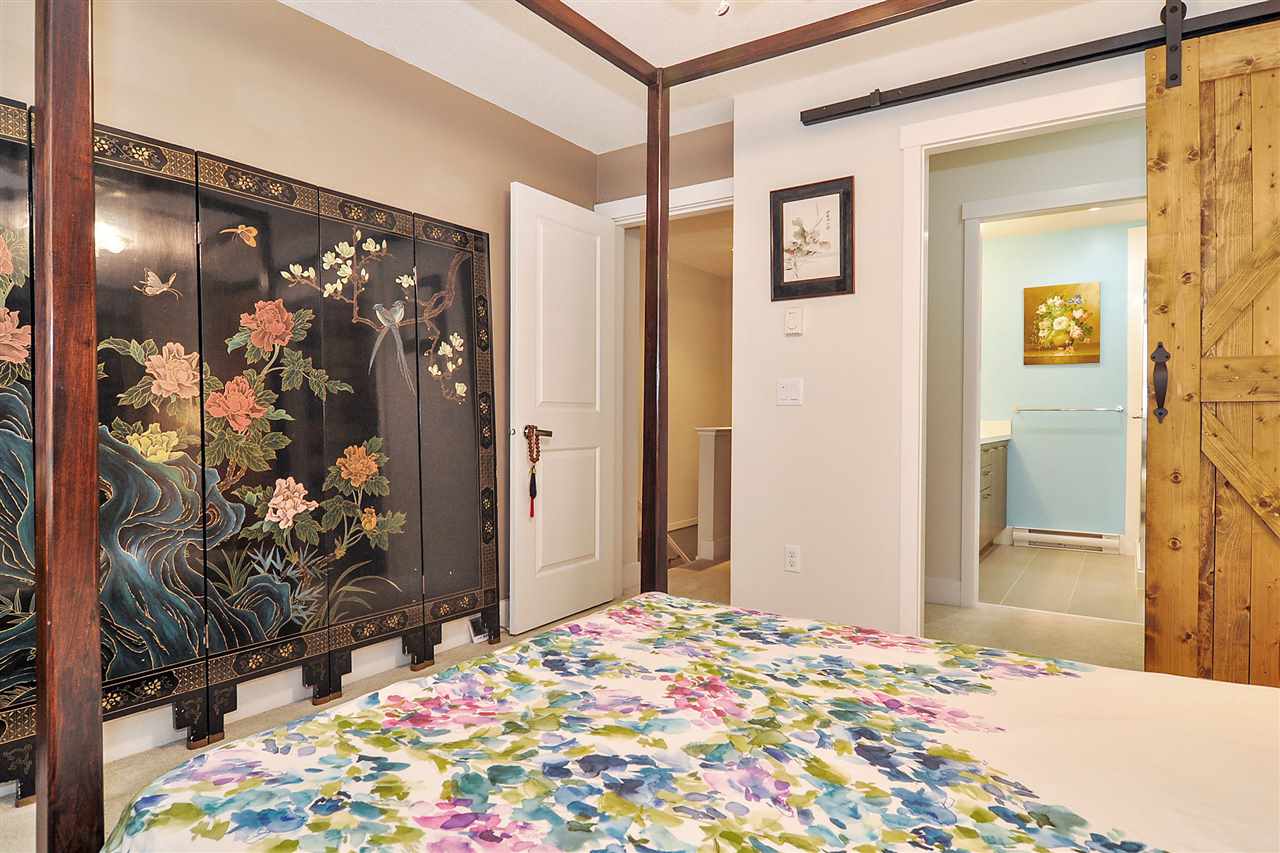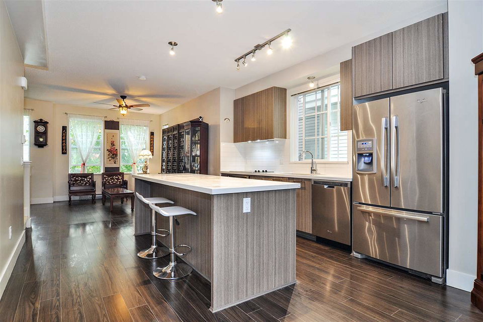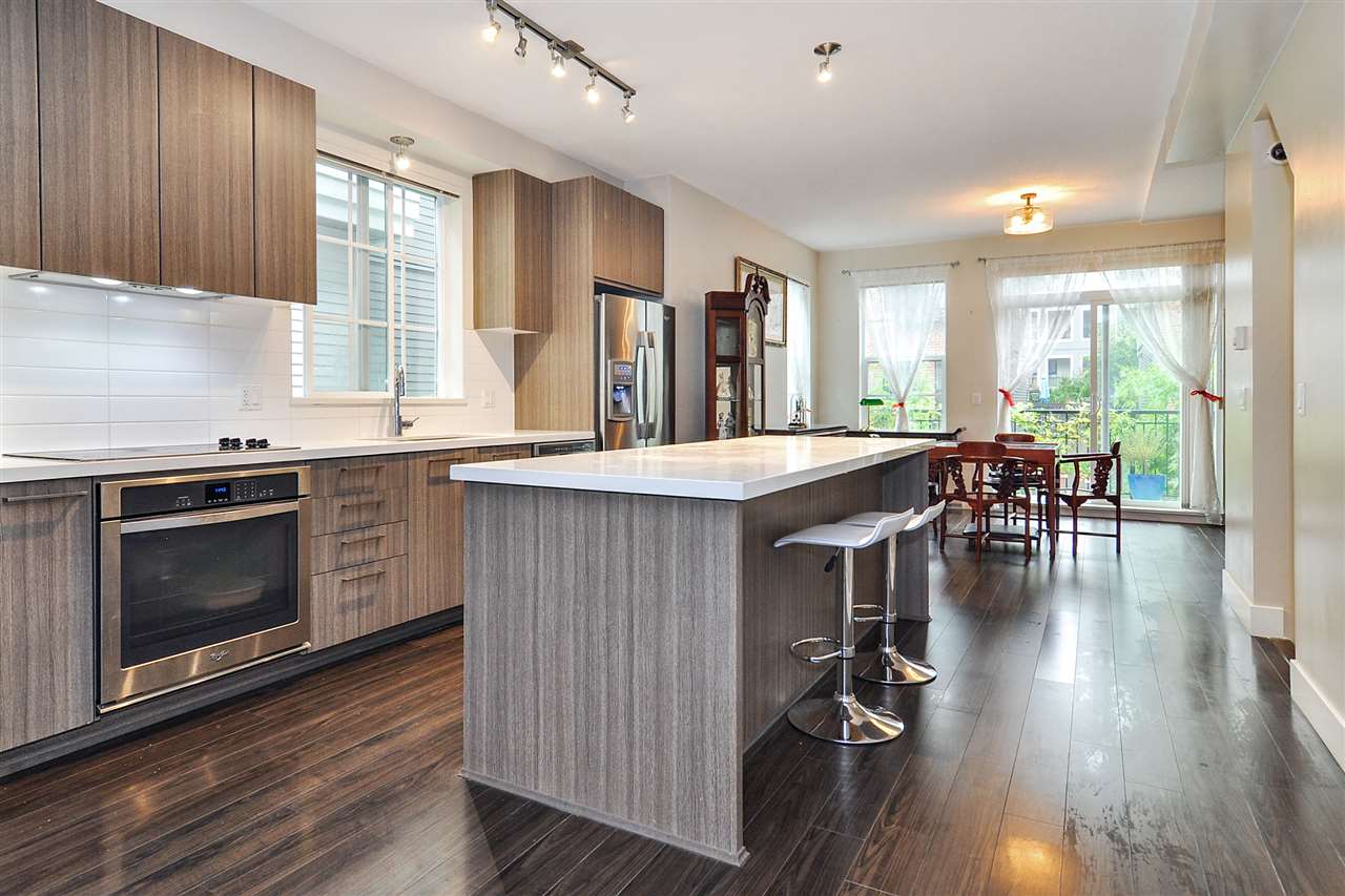 Exclusive family oriented townhouse complex with only 40 units built by prestigious Polygon! Very spacious & open main floor. Laminate flooring. Modern kitchen featuring stainless steel appliances & custom bonus island. Large balcony off dining room. Electric heat. Master bdrm includes walk-thru closet and 5 piece ensuite. Bonus bedroom and bathroom on lower level. Extra storage space in garage. Fantastic amenities, including outdoor pool & hot tub. Close to a variety of walking trails and playgrounds. Morgan Elementary & Earl Marriott Secondary school catchments. Low strata fees.