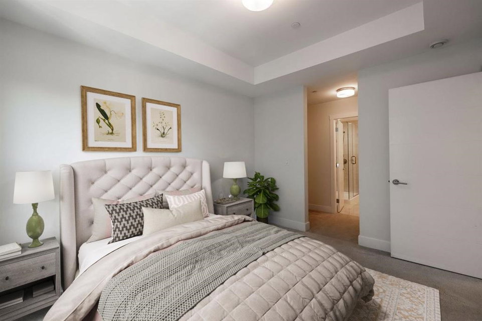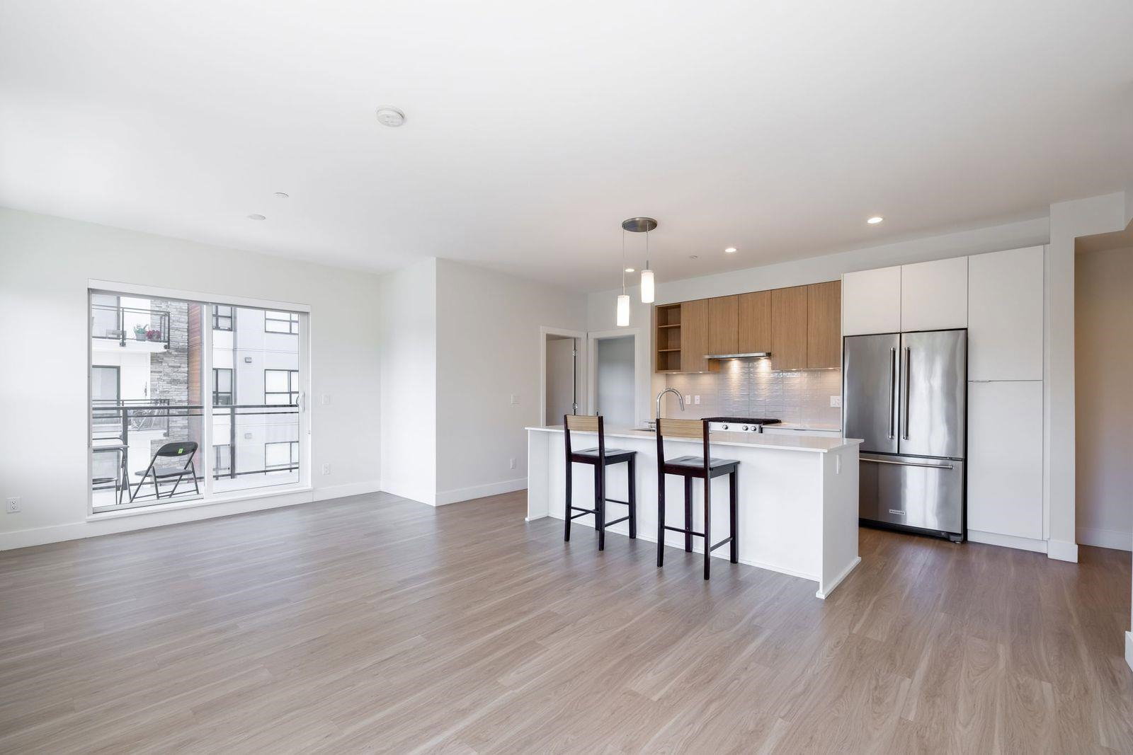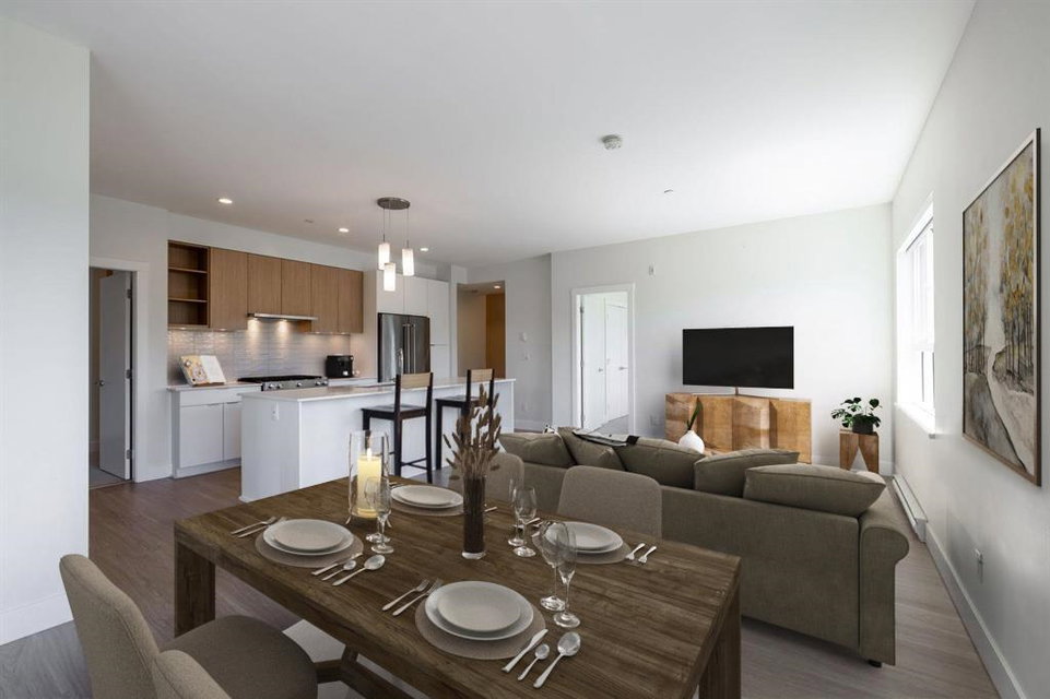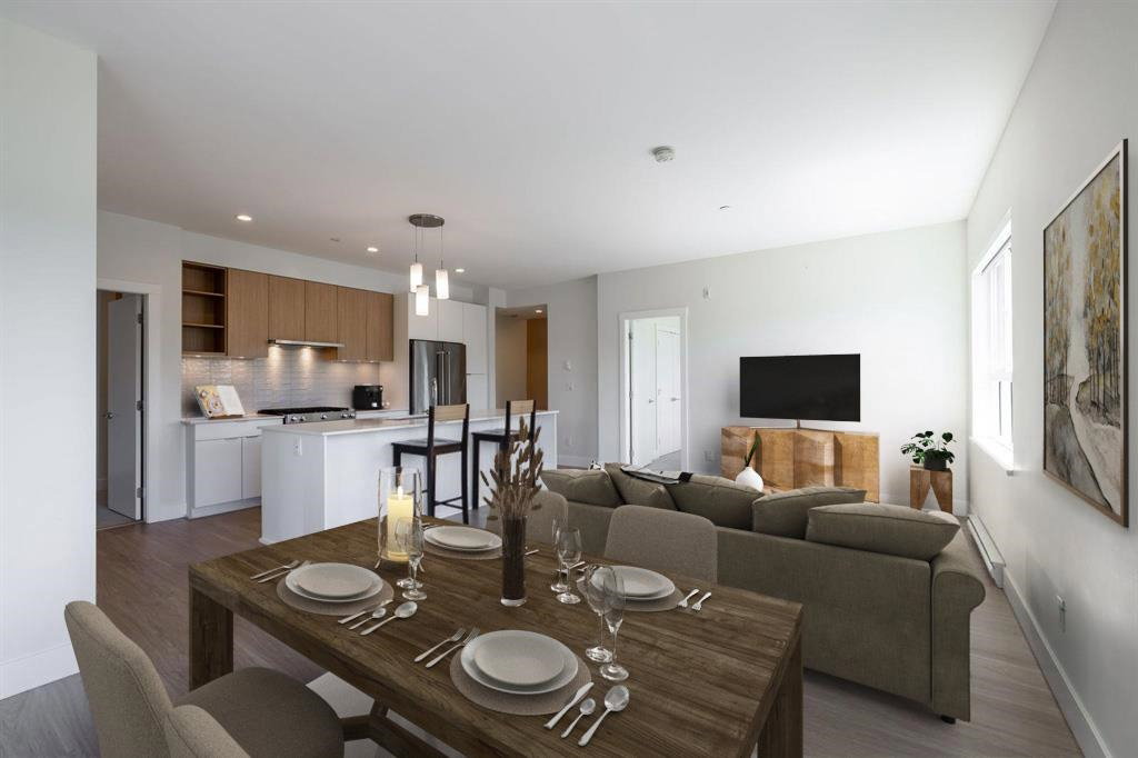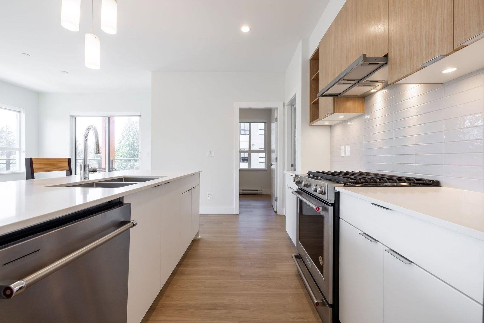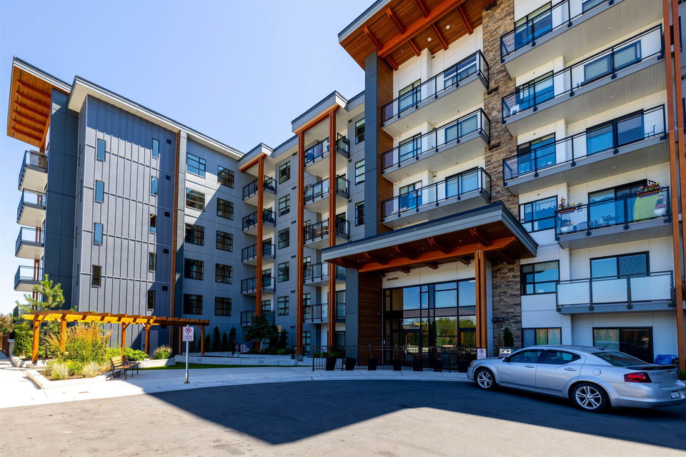 Highly sought after SCOTT & NICOLSON in the heart of North Delta! This like new CORNER unit features 2 bedrooms & den & is sun drenched on the SOUTH WEST quiet side of building. 1047 sq ft w open layout & loads of windows. Large island for entertaining. Gas range & stainless steel appliances in kitchen. Sliding door leads of large 172 sq ft deck w built in gas line for bbqs. A great spot to having a glass of wine w your friends. Spacious master suite has walk in closet & beautiful ensuite. 2 underground parking stalls. 1 with EV charging as a bonus! Storage locker for also. Complex features gym, lounge, outdoor siting area w firepits & more. Footsteps to shopping, transit, restaurants & easy access to freeway & Alex Fraser Bridge. This home is ready to move in! Call today.