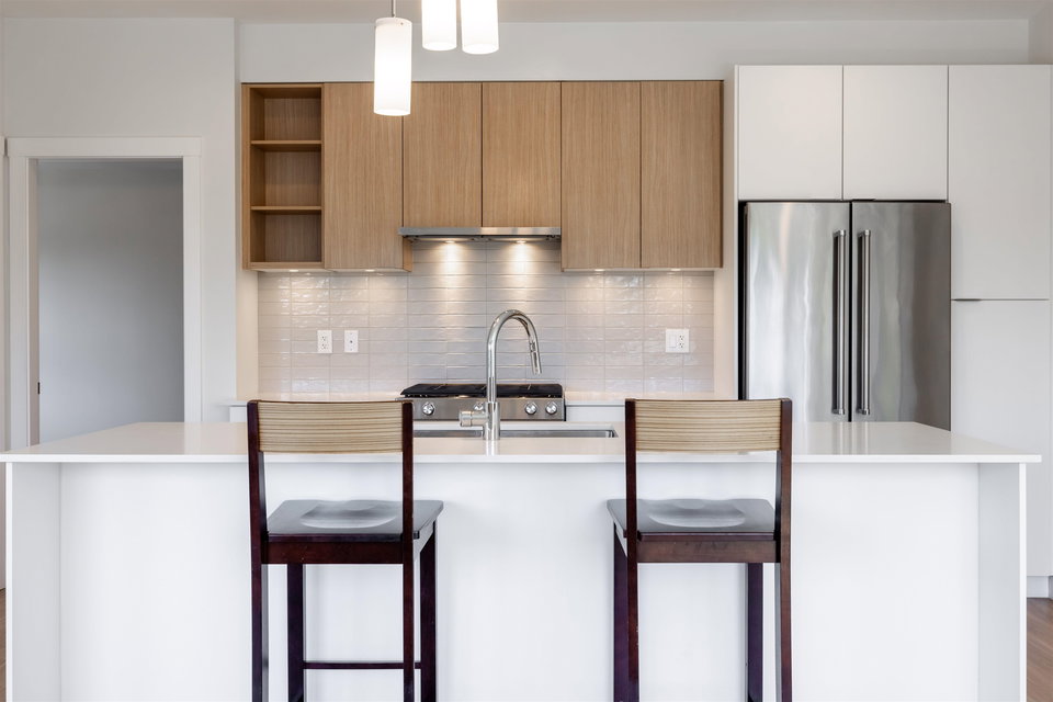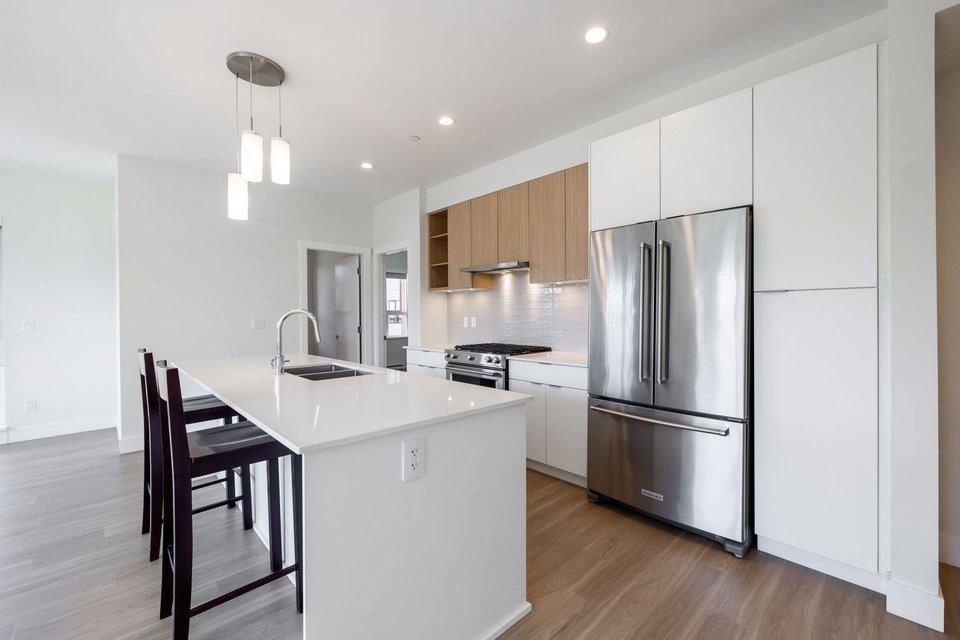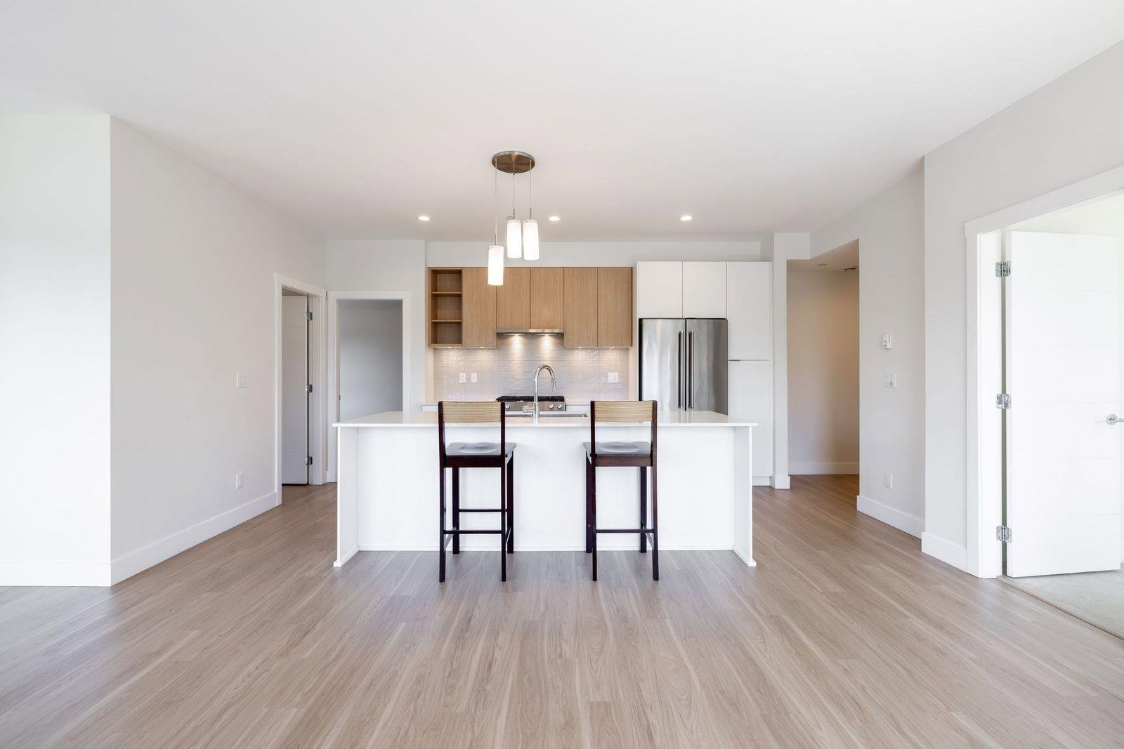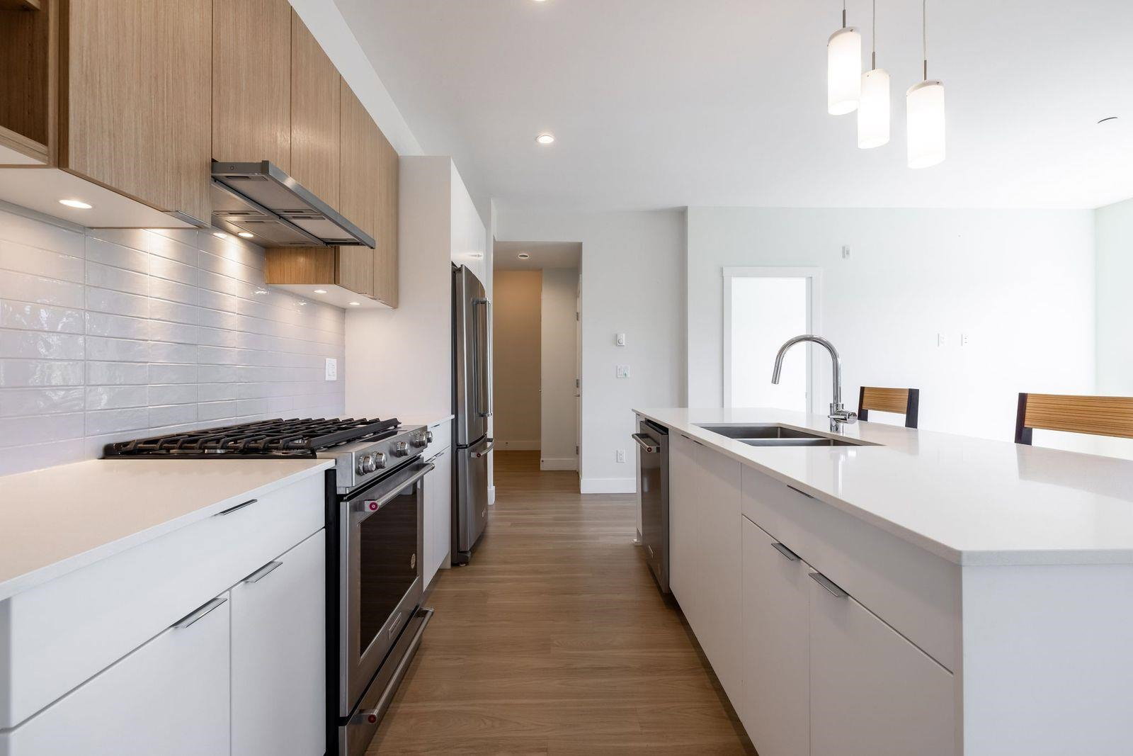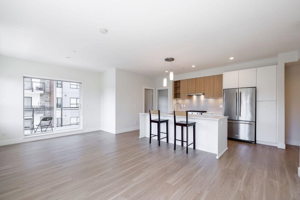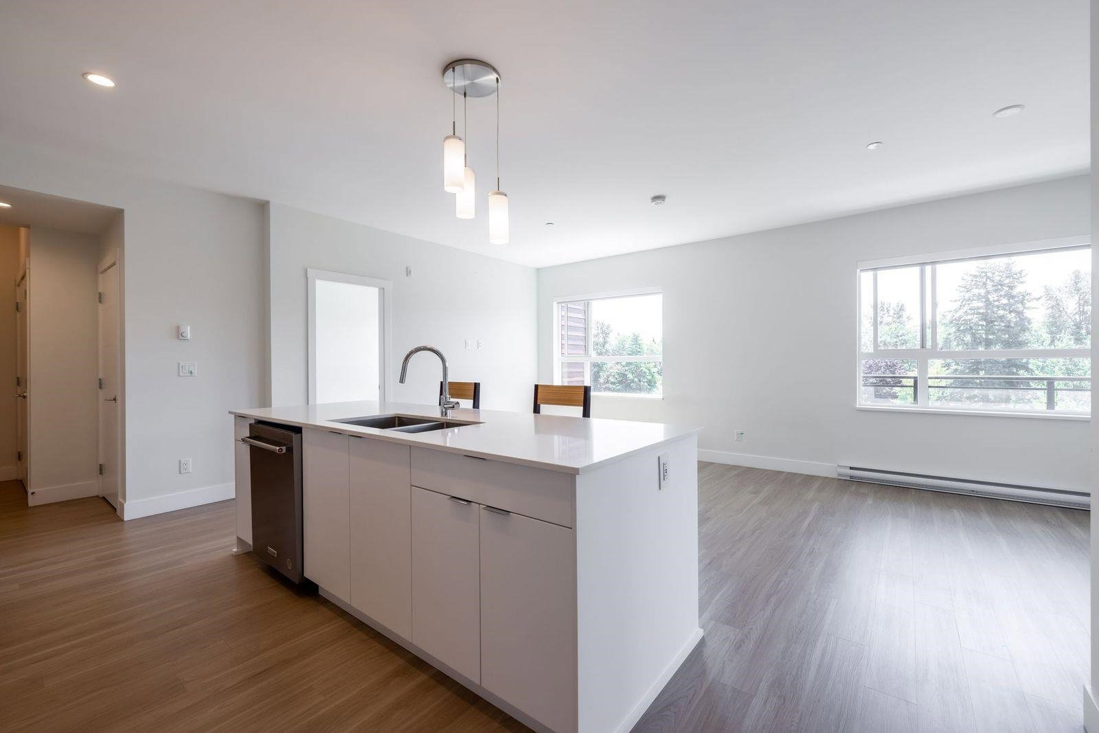 Highly sought after SCOTT & NICOLSON in the heart of North Delta! This like new CORNER unit features 2 bedrooms & den & is sun drenched on the SOUTH WEST quiet side of building. 1047 sq ft w open layout & loads of windows. Large island for entertaining. Gas range & stainless steel appliances in kitchen. Sliding door leads of large 172 sq ft deck w built in gas line for bbqs. A great spot to having a glass of wine w your friends. Spacious master suite has walk in closet & beautiful ensuite. 2 underground parking stalls. 1 with EV charging as a bonus! Storage locker for also. Complex features gym, lounge, outdoor siting area w firepits & more. Footsteps to shopping, transit, restaurants & easy access to freeway & Alex Fraser Bridge. This home is ready to move in! Call today.