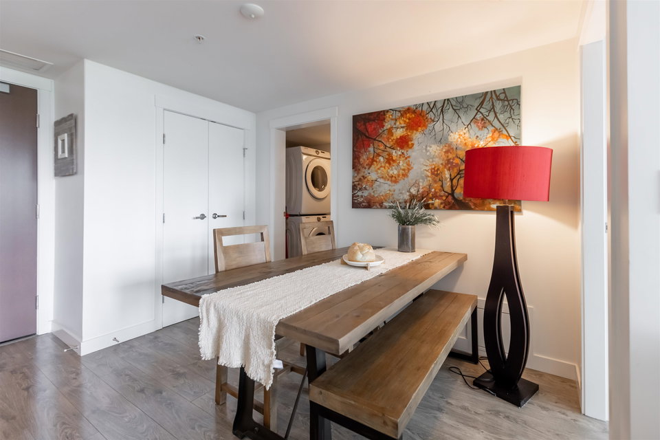 LIDO built by Bosa Properties! Known for its quality finishes and craftsmanship, this property sets the standard for ideal city living. The unit offers a 2 bed, 1 bath floorplan, top of the line MIELE appliances, a designated parking space, a storage unit and a massive, nearly 200sq ft patio! The views of the courtyard and neighbouring government buildings create a serene atmosphere, while the prime location guarantees effortless access to a plethora of amenities and nearby attractions. Moreover, Lido boasts an impressive range of facilities, including a rooftop patio and pool, a fitness facility, and a dedicated concierge service, ensuring an unparalleled living experience. Come visit one of the most desired neighbourhoods in Vancouver and understand why people fall in love with this city