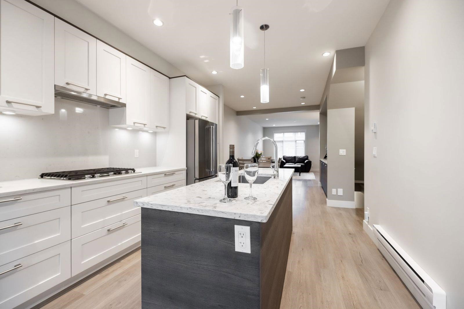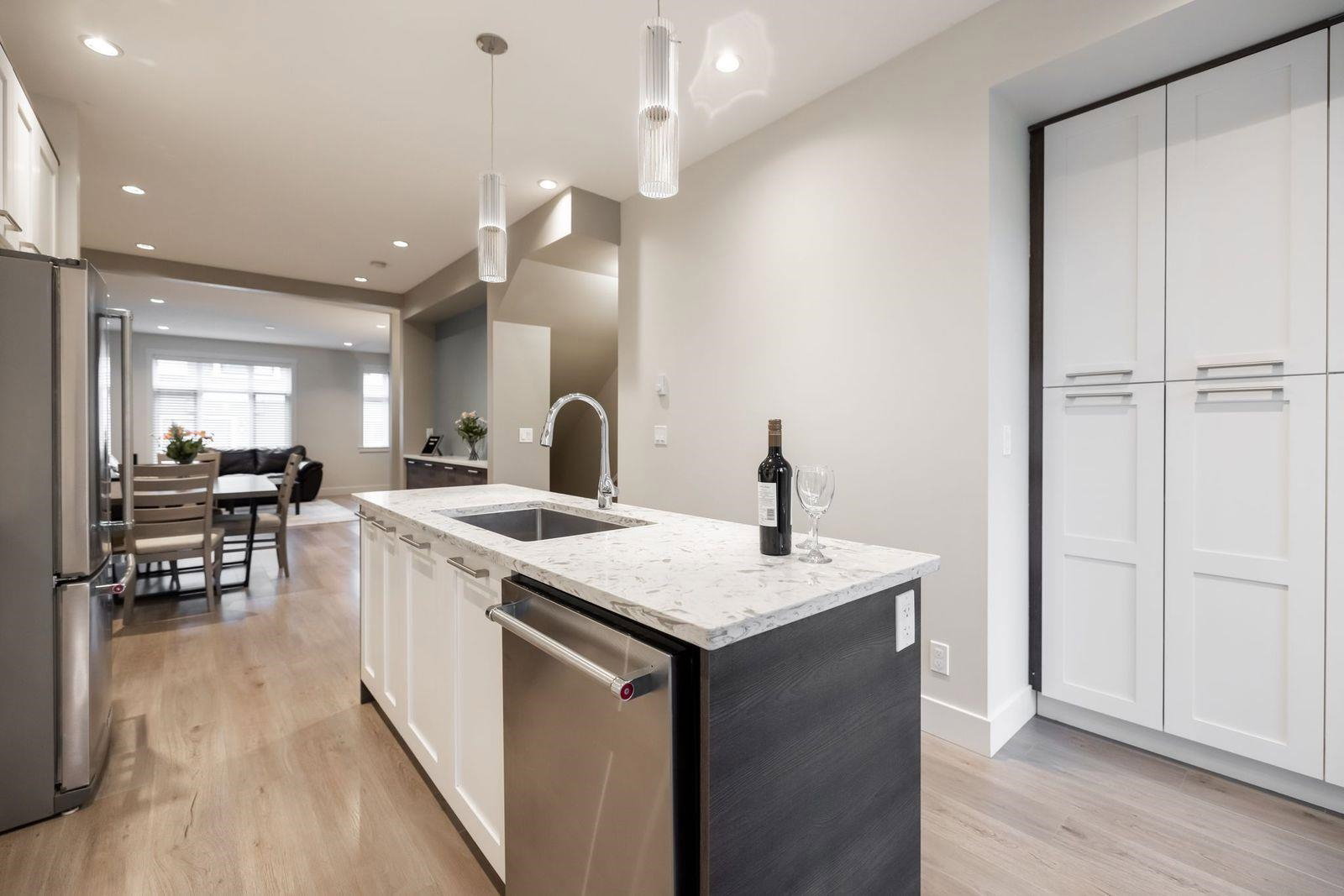 Prestigious HYDE PARK in Grandview! This spotless 3 bedroom bath townhouse is located in the best park of the complex overlooking the private park! Beautiful open concept w huge island to entertain. Quartz countertops, gas range, stainless steel appliances, white cabinetry, stunning floors & sliding door leading to your incredible yard overlooking the complex greenspace! Warm paint tones throughout & powder washroom on main floor. Electric fireplace w built ins & additional built ins from developer. 3 bedrooms upstairs w spacious master, walk through closets & stunning shower in ensuite. 2 car tandem garage & extra room for storage. BBQ on your back patio in your fenced yard. Footsteps to Morgan Shops & restaurants & both levels of schools. This one is a must see!