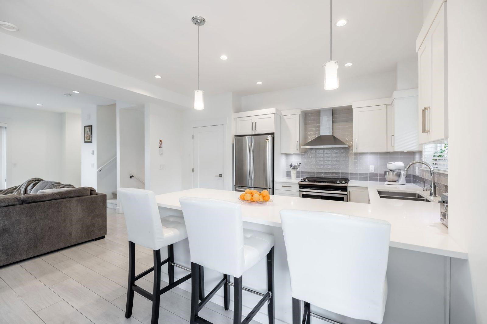 VANTAGE in SULLIVAN STATION! This 4 bedroom 4 bath END UNIT townhouse is incredible! Located in one of the BEST LOCATIONS in the complex backing on the complex greenspace with visitor parking beside unit. Step inside to this open bright layout with 2 DECKS on main floor for entertaining. Large white kitchen w stainless steel appliainces, quartz countertops, tons of storage space & room for your bar stools! Spacious living area w fireplace & sliding doors of rear deck to enjoy your morning coffee. 3 bedrooms upstairs. Master bdrm has walk in closet & beautiful ensuite bathroom. Downstairs features a WALK OUT basement with bonus bedroom & full washroom which can also be a great rec room. Views of mountains from bedrooms. Footsteps to both levels of schools, parks, bus stop & more!
