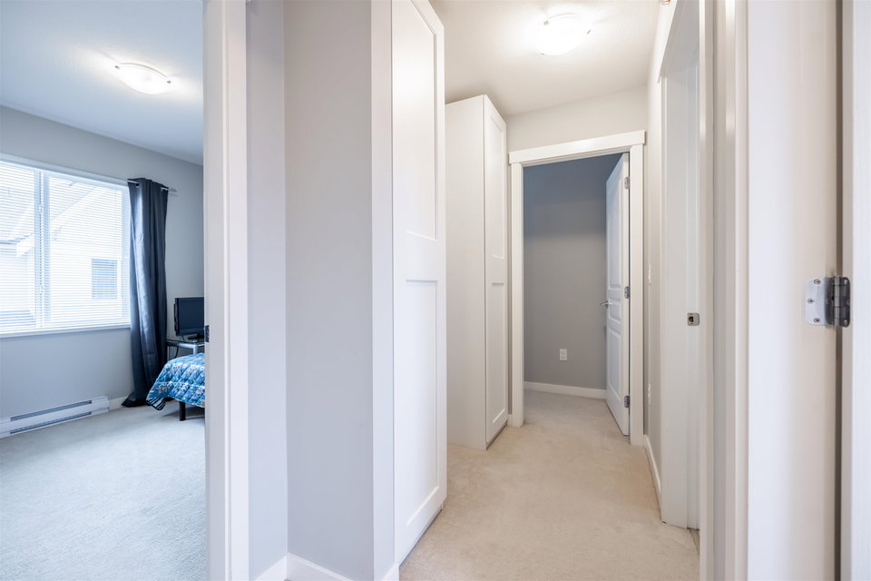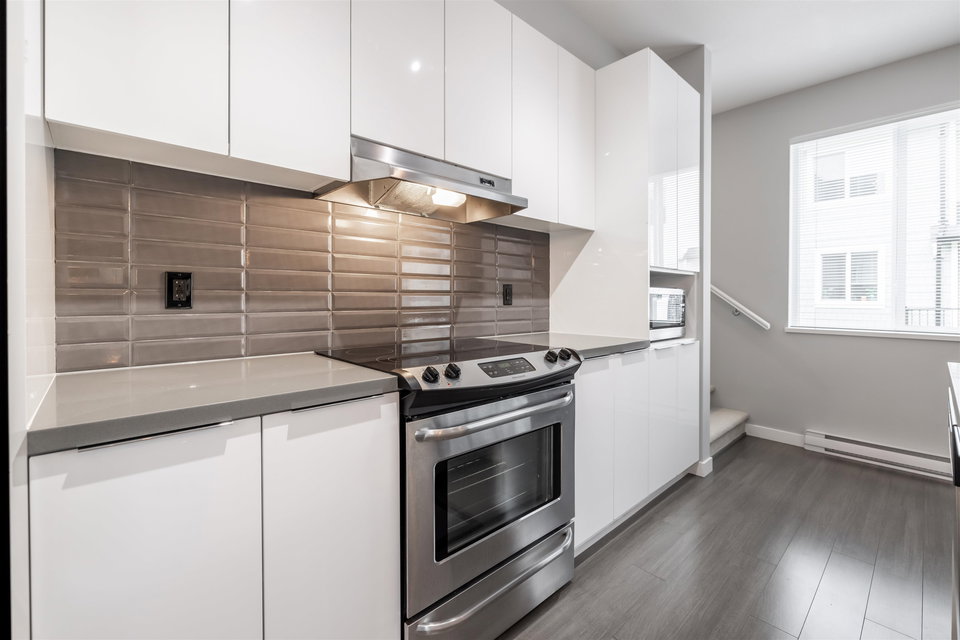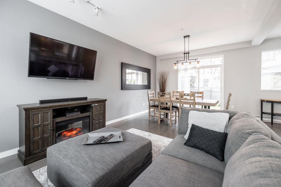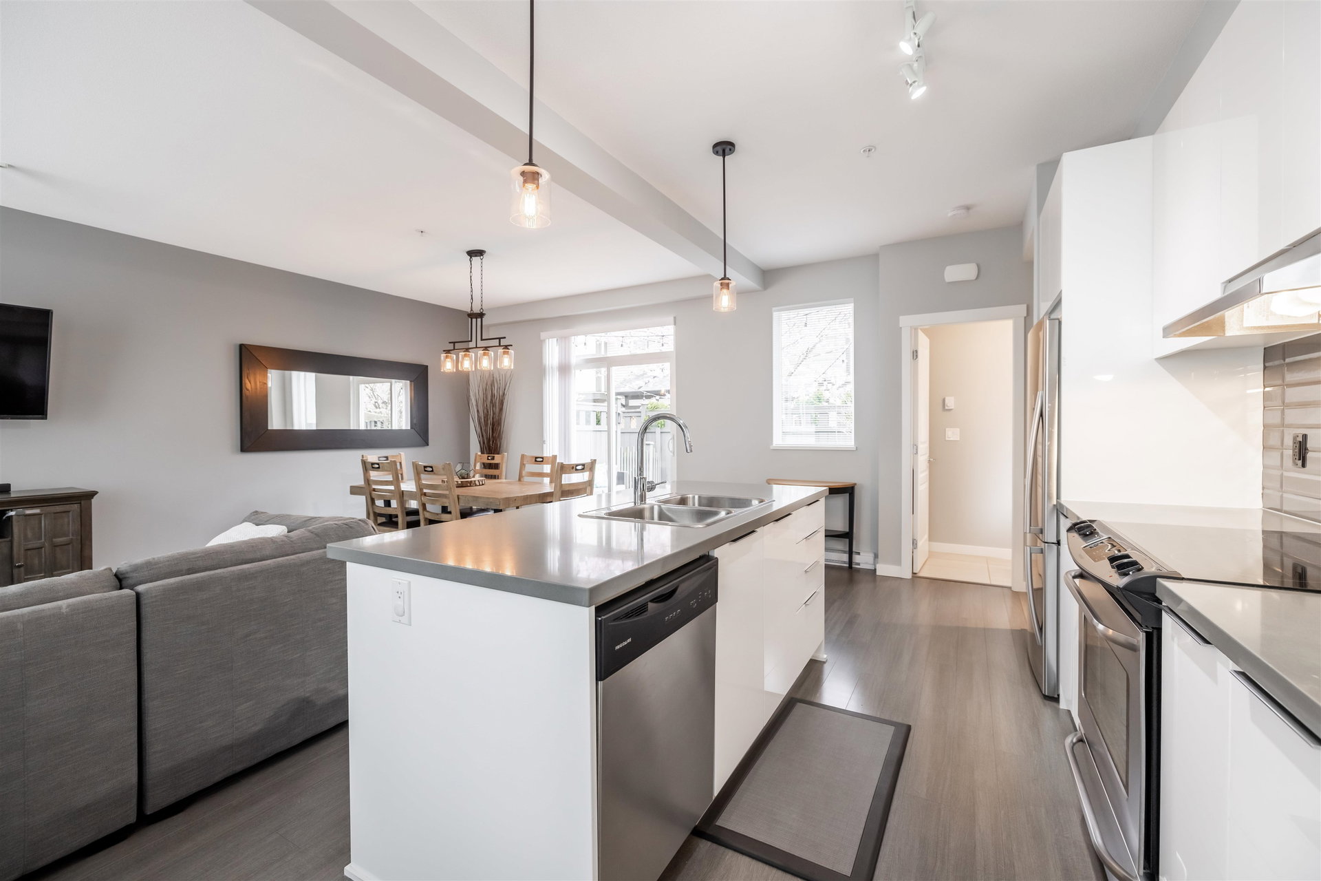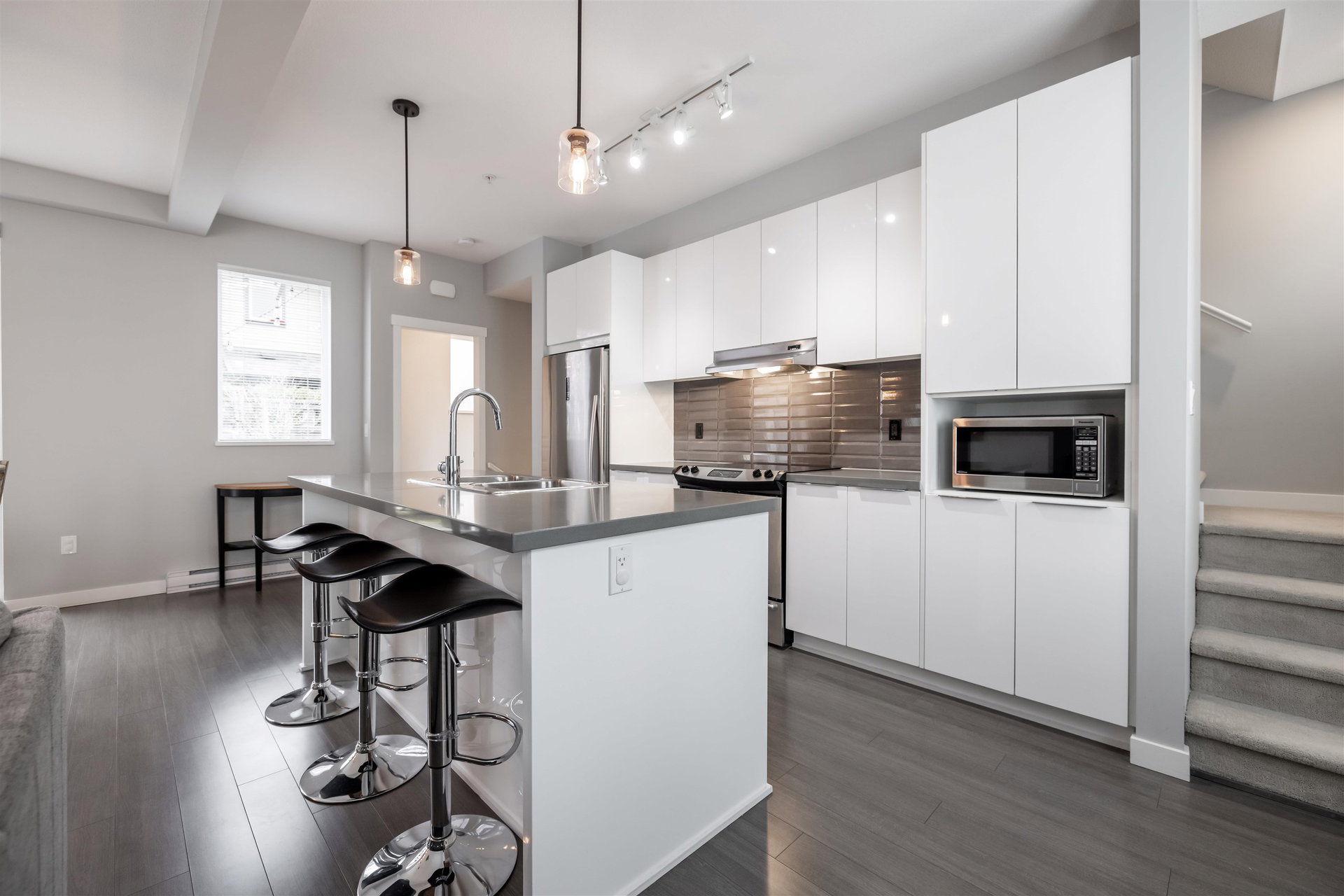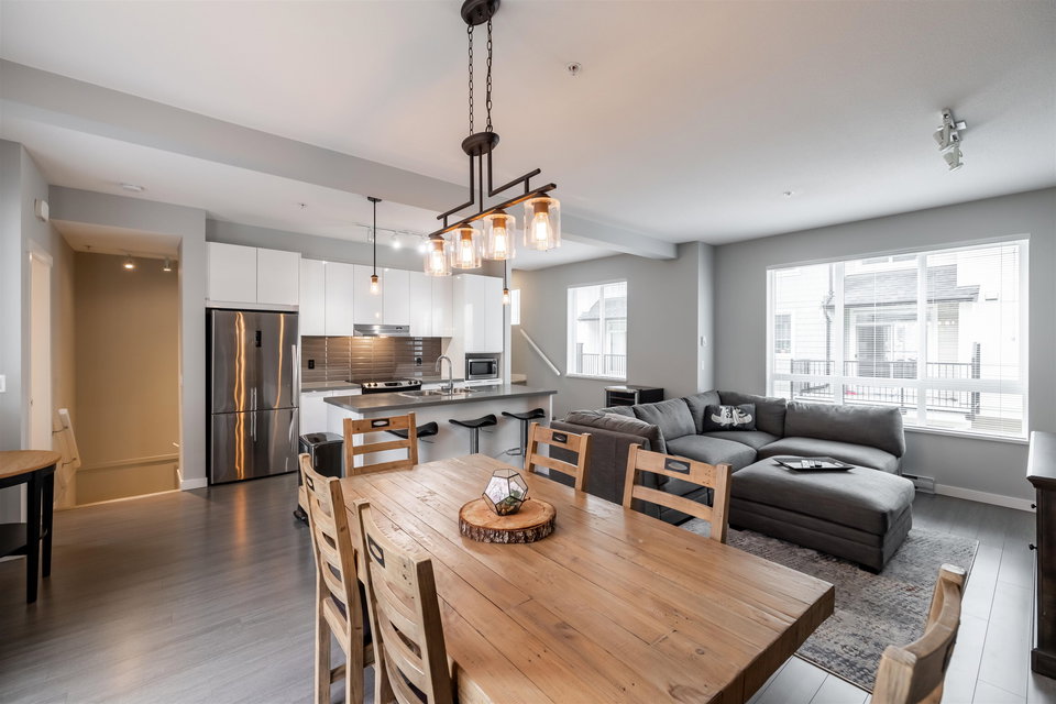 ASHBURY & OAK by Polygon! Your chance to own a fantastic 2 bedroom, 2.5 bath townhouse w side by side garage! This owner has kept this unit in great condition. Bright, open floor plan loaded with windows. Warm paint tones throughout. Gorgeous main floor with stunning white kitchen, stainless steel appliances, quartz countertops, beautiful island for entertaining. Sliding door lead to your private, fenced backyard is a great spot to BBQ & for your pet. 2 bedrooms upstairs. Separate laundry room w extra storage for added convenience. Master has walk in closet & stunning ensuite w 6′ marble shower. Fantastic amenities w Pool, hot tub, Gym, Lounge & more. This incredible complex in the heart of Willoughby is walking distance to Schools, Parks & Willoughby Shopping center! 10 out of 10!