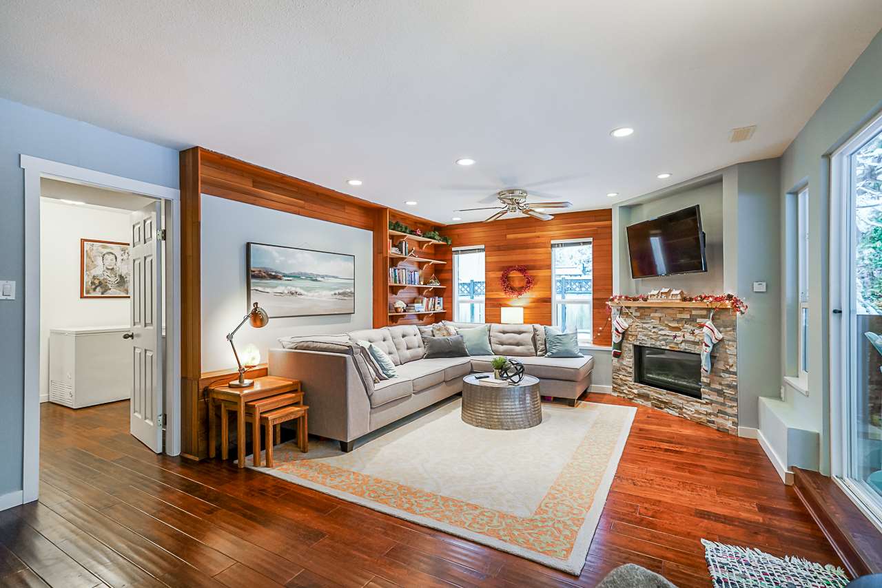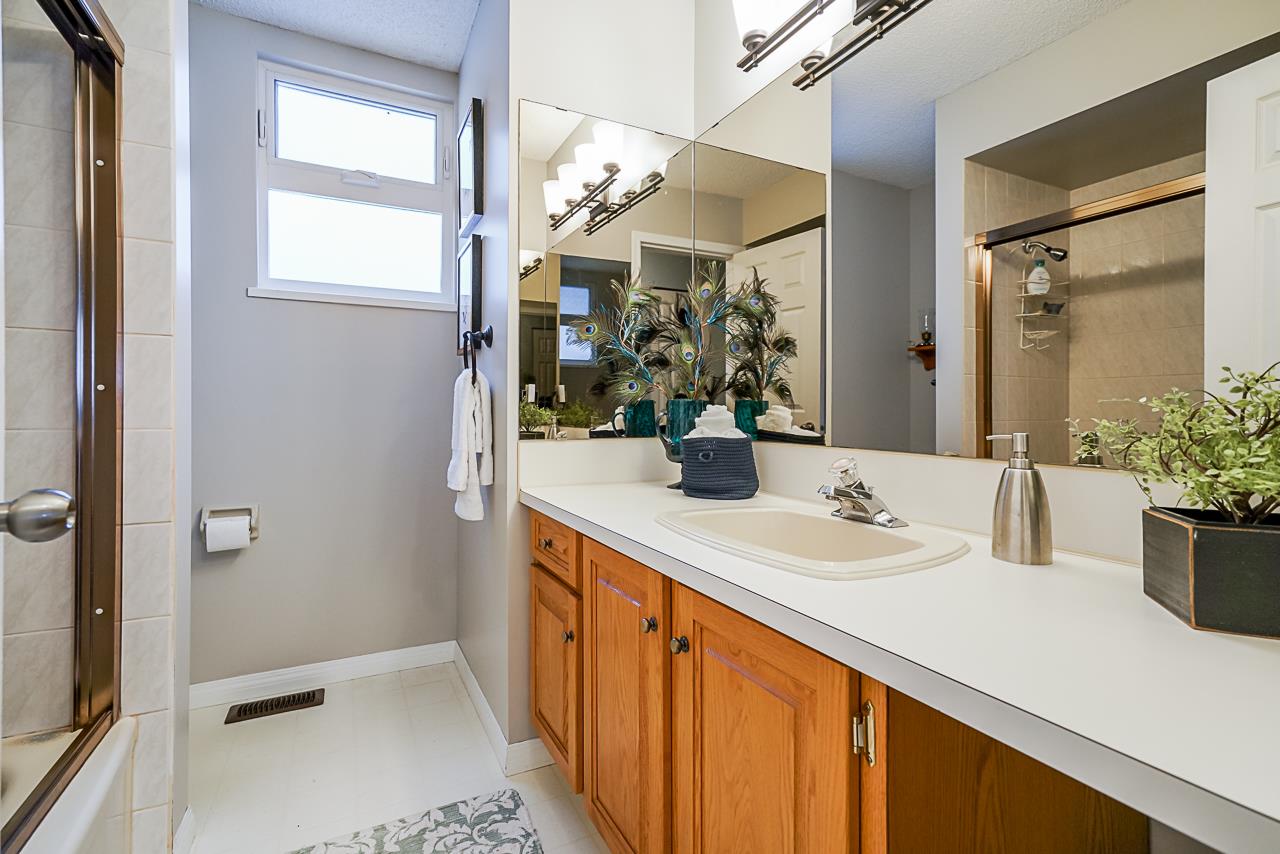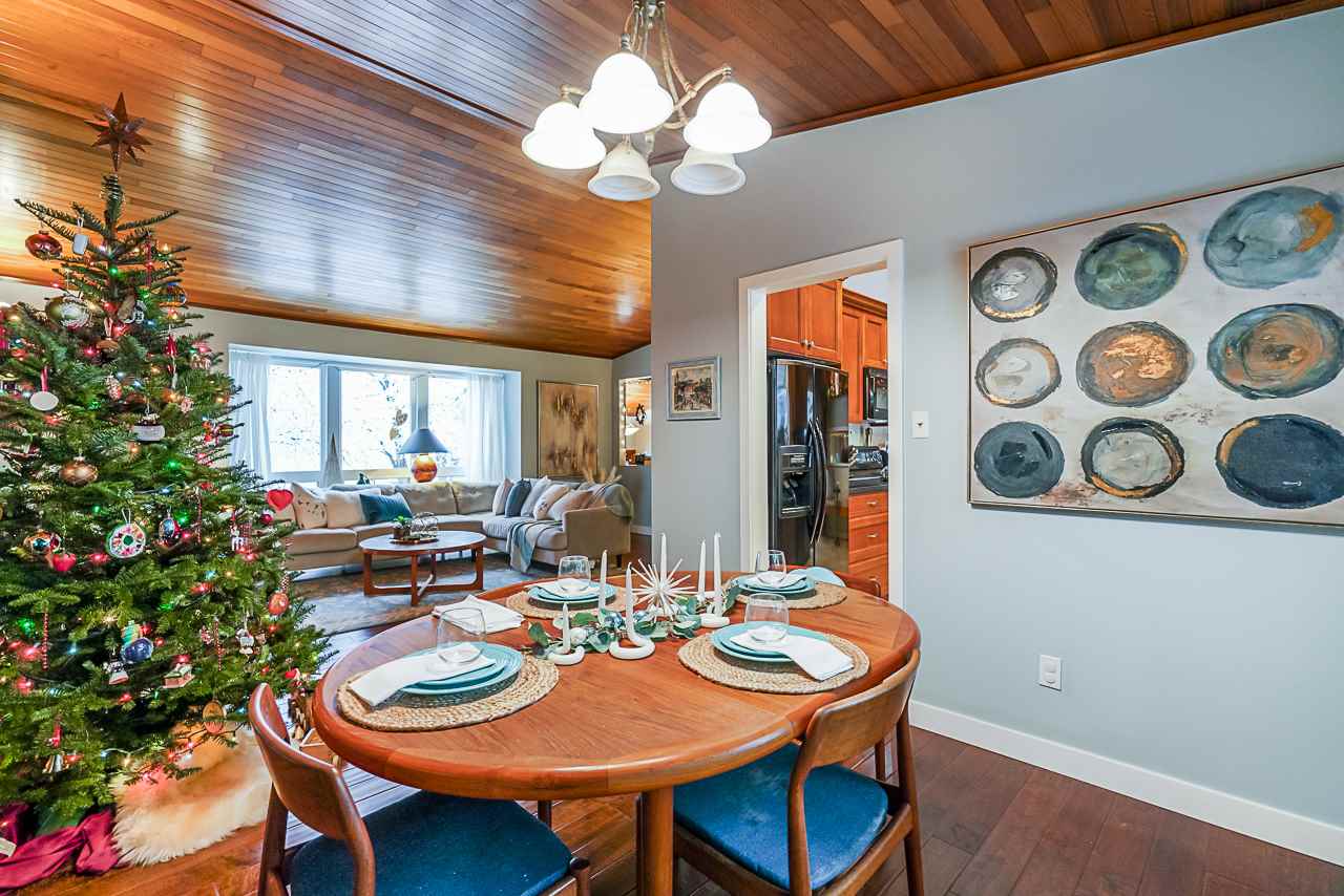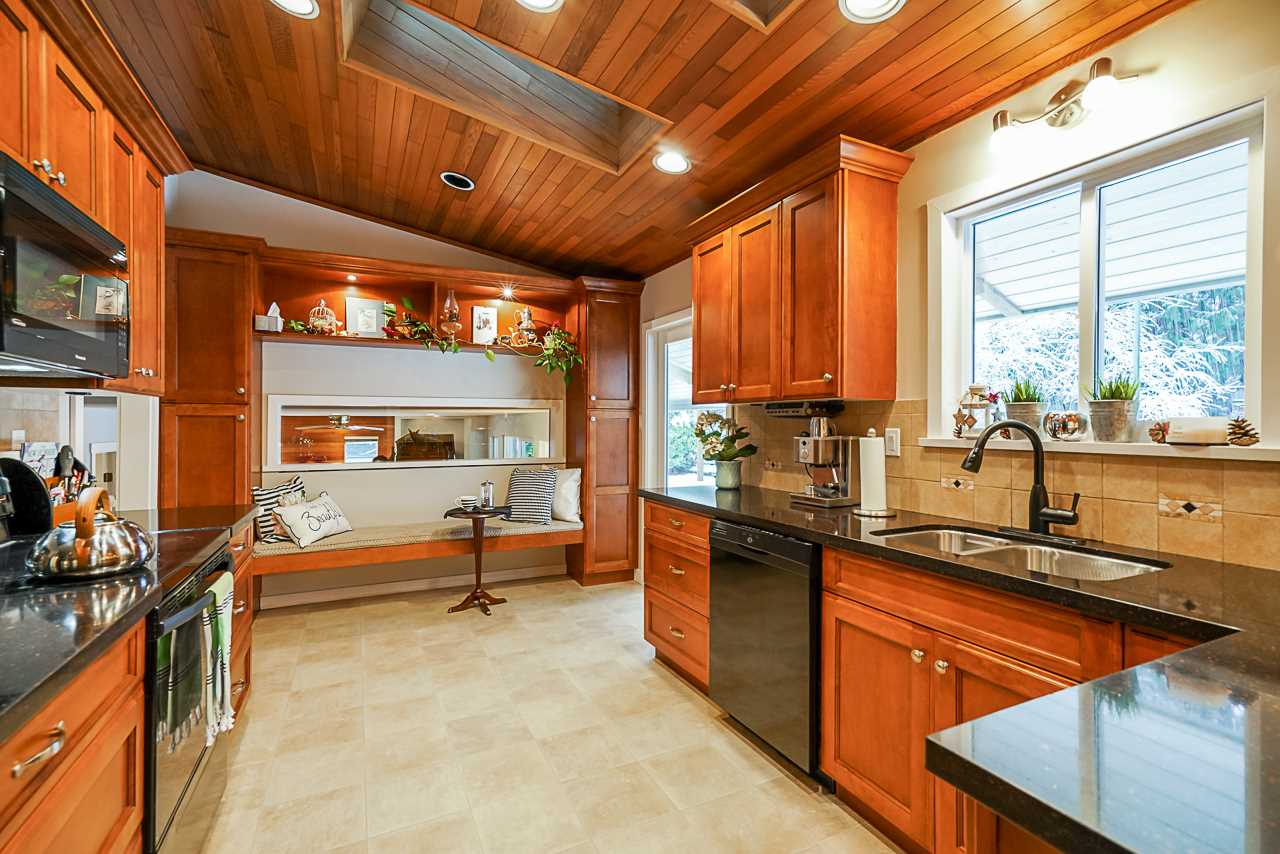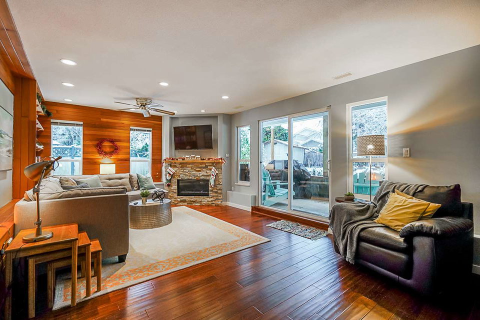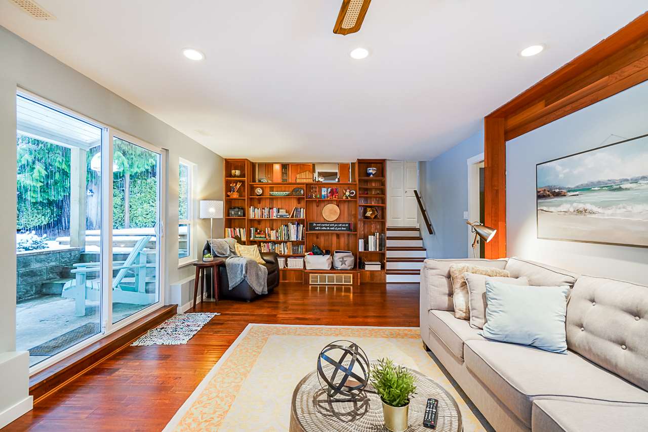 Built for entertaining! Located on a quiet cul de sac in desirable Sunshine Woods, this private, 10,000+ sq ft lot offers plenty of room for an active family with 4 bedrooms plus den, 3 full baths and a main floor office! Engineered hardwood flooring on the main plus vaulted, wood ceilings, and plenty of light via the gorgeous inset skylights provides warmth and brightness throughout. The kitchen features maple cabinets and Caesarstone countertops, and leads out to a fenced backyard with multi court (incl. regulation pickle ball), gazebo and play area. The lower level is party central with a games room and rec room with a wet bar. A perfect family home close to Pinewood Elementary and steps to Watershed Park. Don’t miss this one!