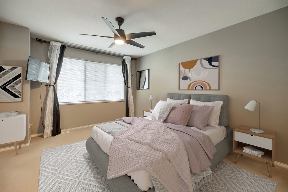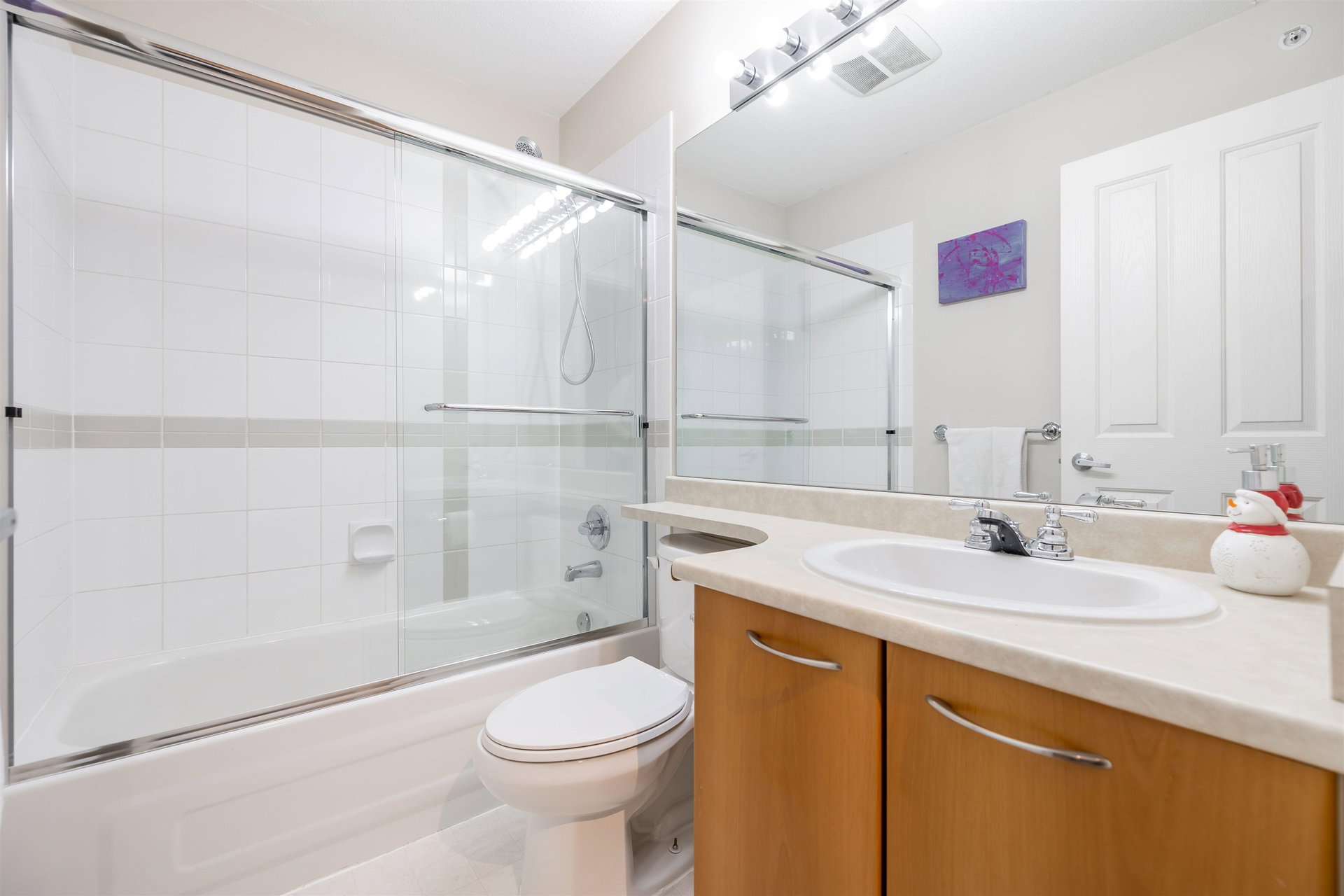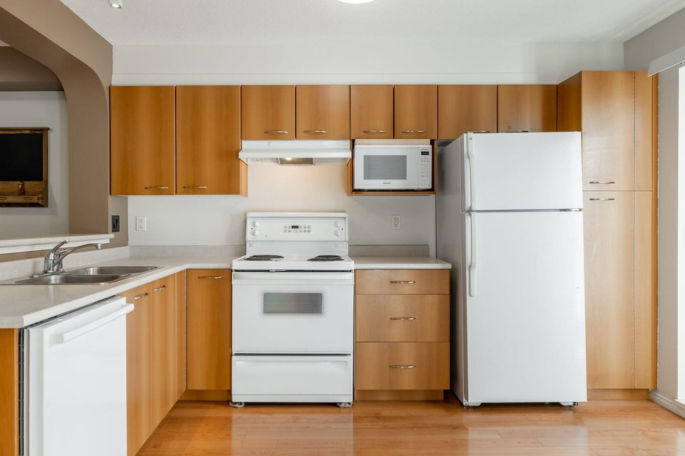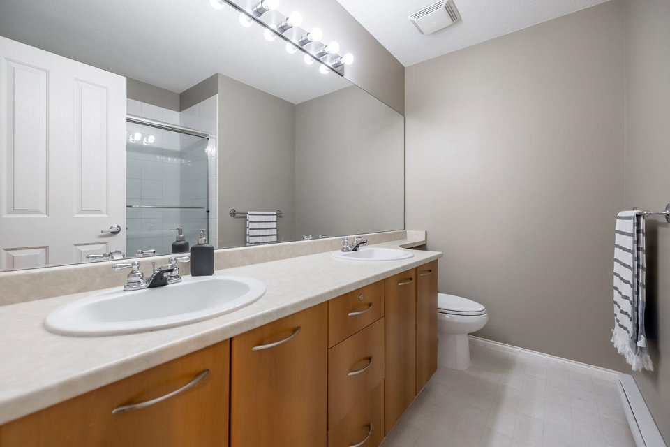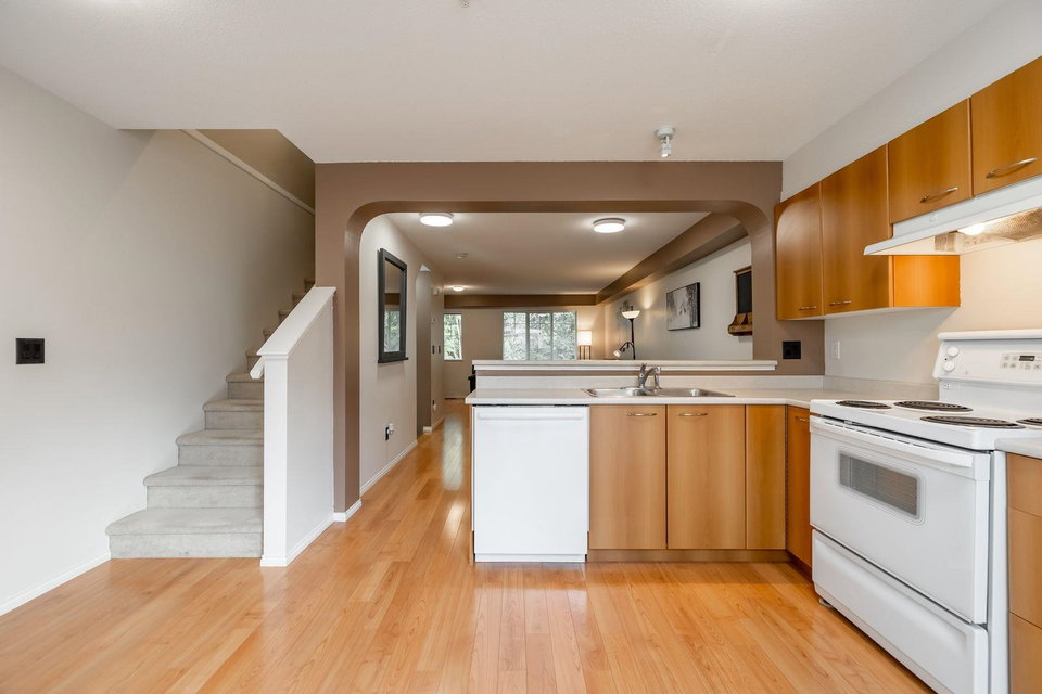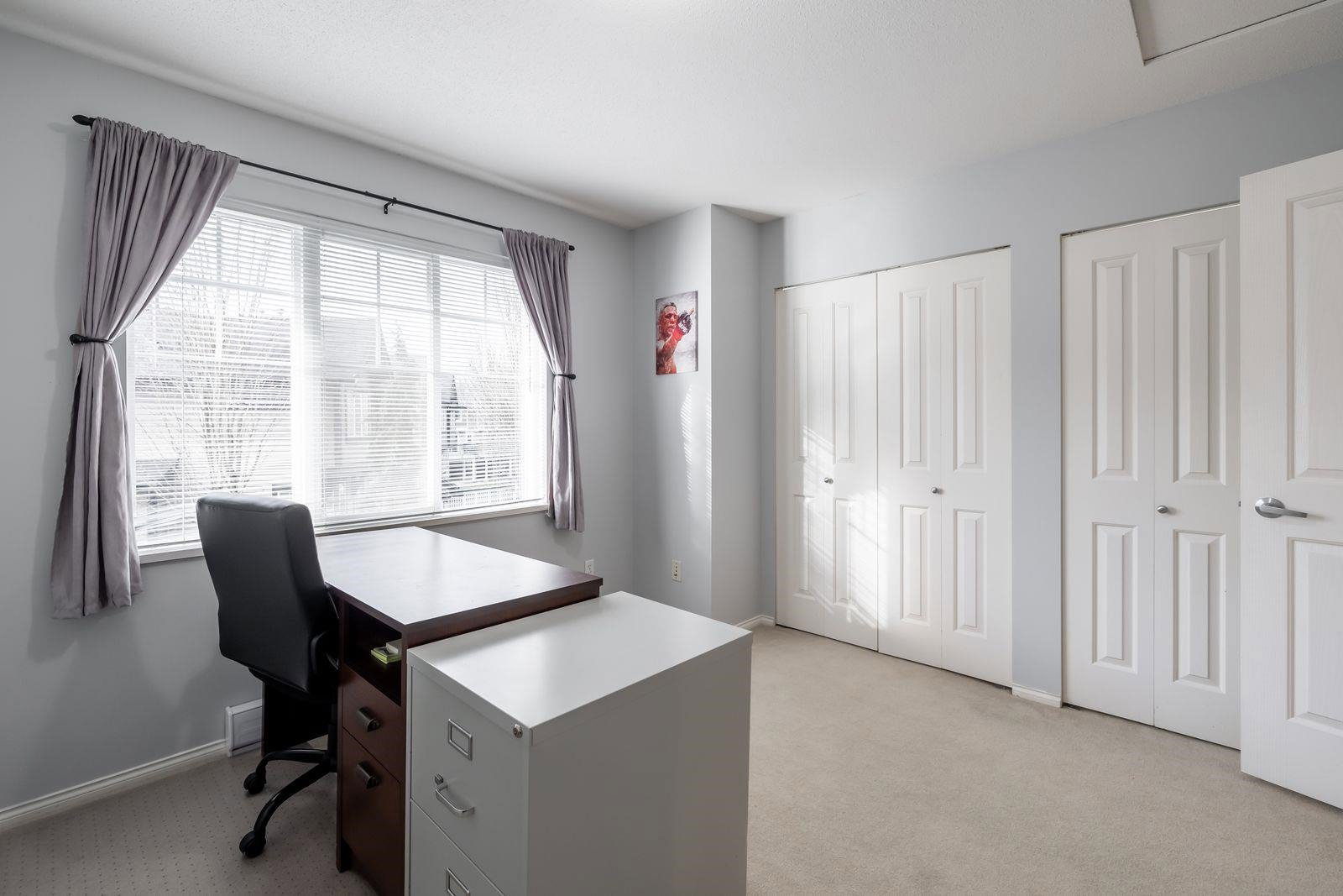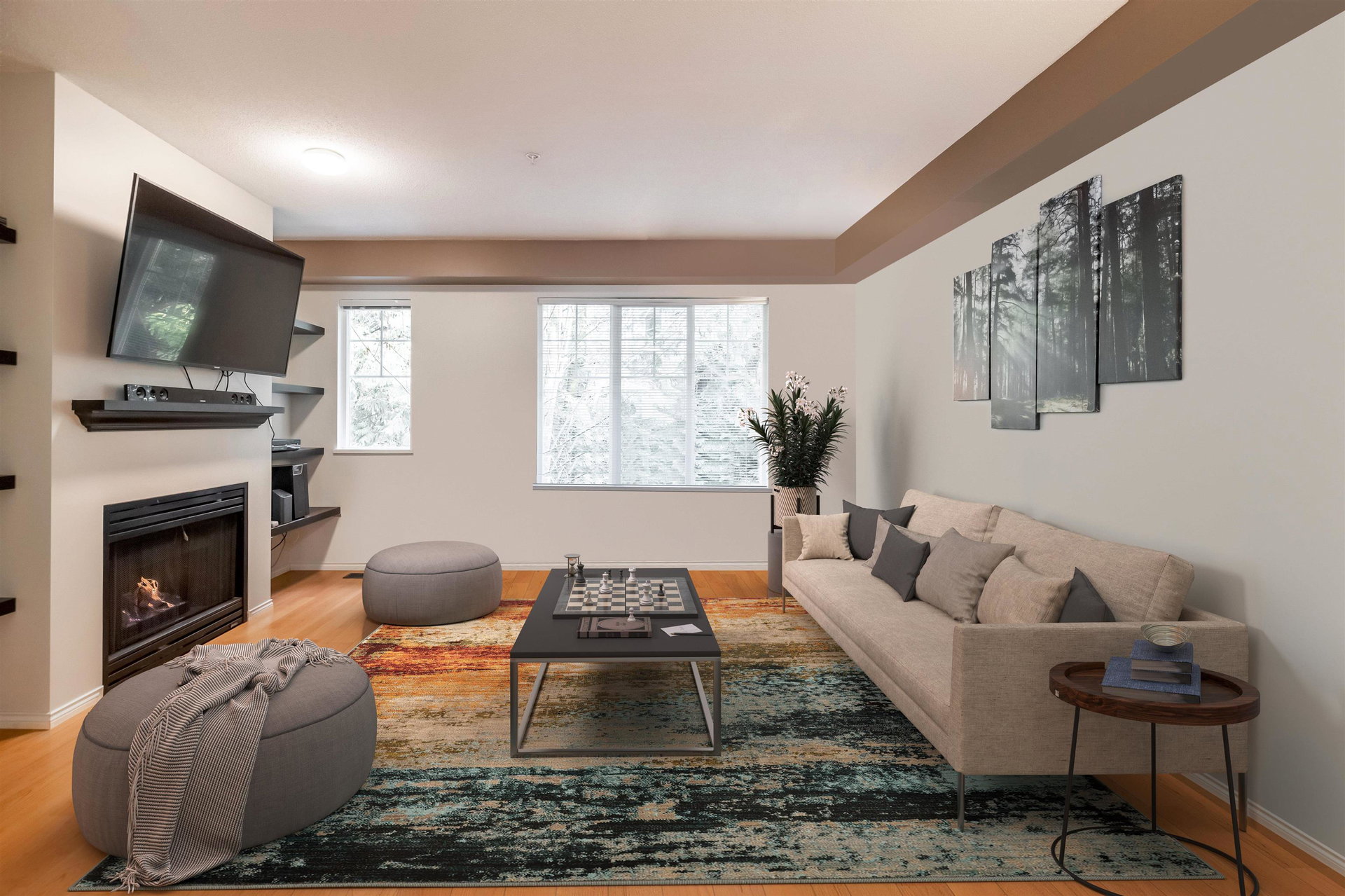 Welcome to STEEPLECHASE in Willoughby heights! Incredible value for this 2 bedroom 2 bath 1265 sq ft townhouse backing onto GREENSPACE! Open layout with gas fireplace in living area overlooking the private backyard. Laminate floors on main floor. Room for large dining table & bar stools at kitchen. White appliances w maple color wrapped cabinets. Sliding door off kitchen leads to WEST facing deck. Perfect spot for bbqing & entertaining. 2 spacious bedrooms upstairs. Master suite has ensuite bathroom w double sinks. 2 car covered garage w extra space for storage. Door off garage leads to fenced backyard overlooking the quiet parkland. Unit has lots of visit parking around. 2 year old furnace & 1 yr old hot water tank. Footsteps to shopping, restaurants, Costco, Save on and more!