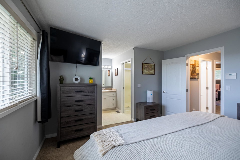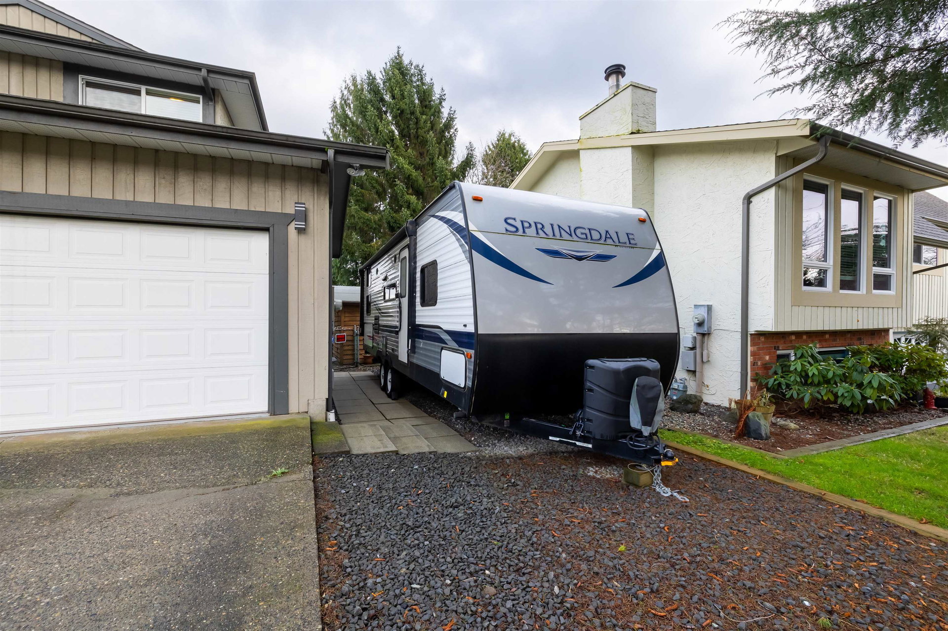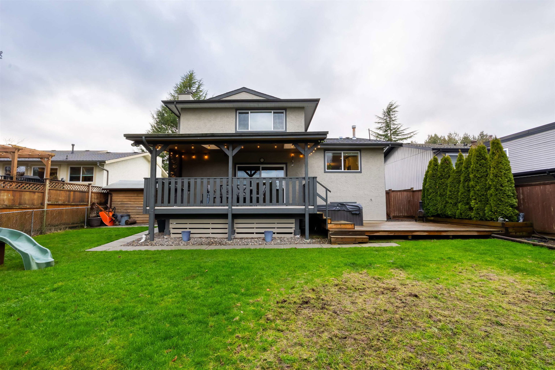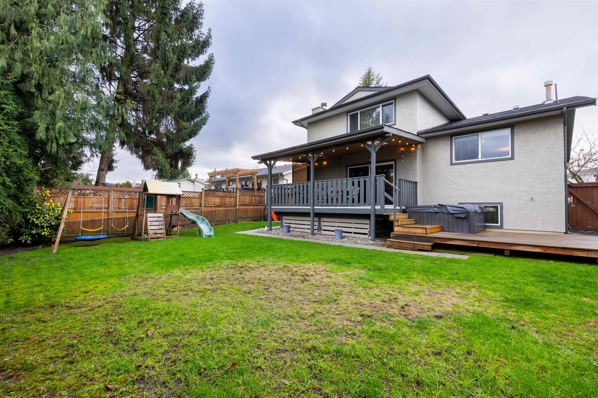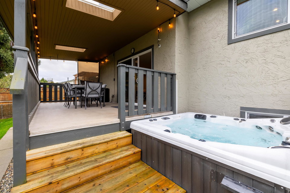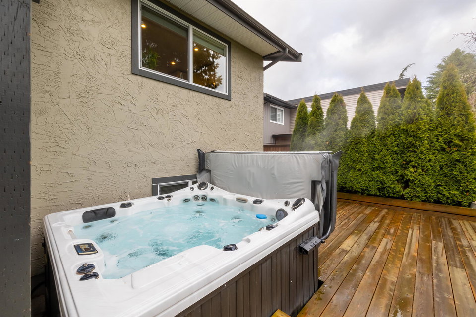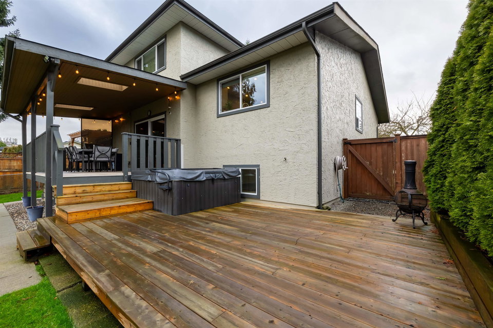 Beautiful family home on the Clayton/Langley Border where comfort meets style at this well maintained residence on a quiet street. 4 level split with great layout & loaded w updates. Enjoy cooking in the sleek modern kitchen with stainless steel appliances, updated countertops, white cabinets & huge island to entertain! Large living area w upgraded floors. Warm paint tones throughout . Family room has gas fireplace & Sliding door leading to back covered deck to enjoy your morning coffee! 7183 sq ft private fully fenced lot with hot tub. 3 bedrooms upstairs with large master suite. Lower basement area is a great rec room space for the kids! Ton of storage. RV parking & Air Conditioning. Footsteps to Willowbrook Mall and bus route! Shows pride of ownership and is a pleasure to show.