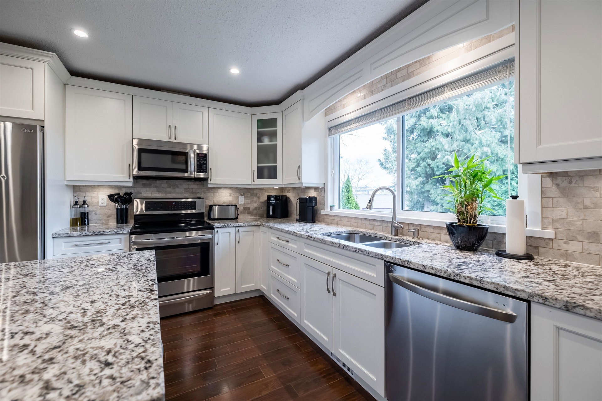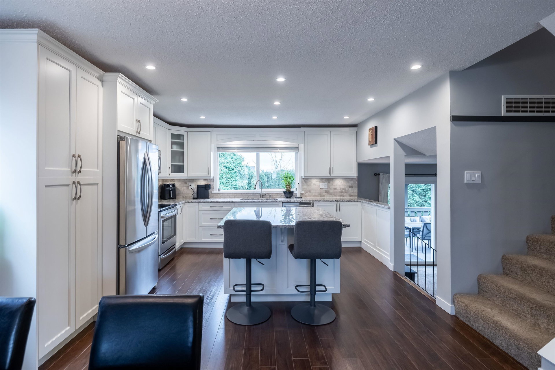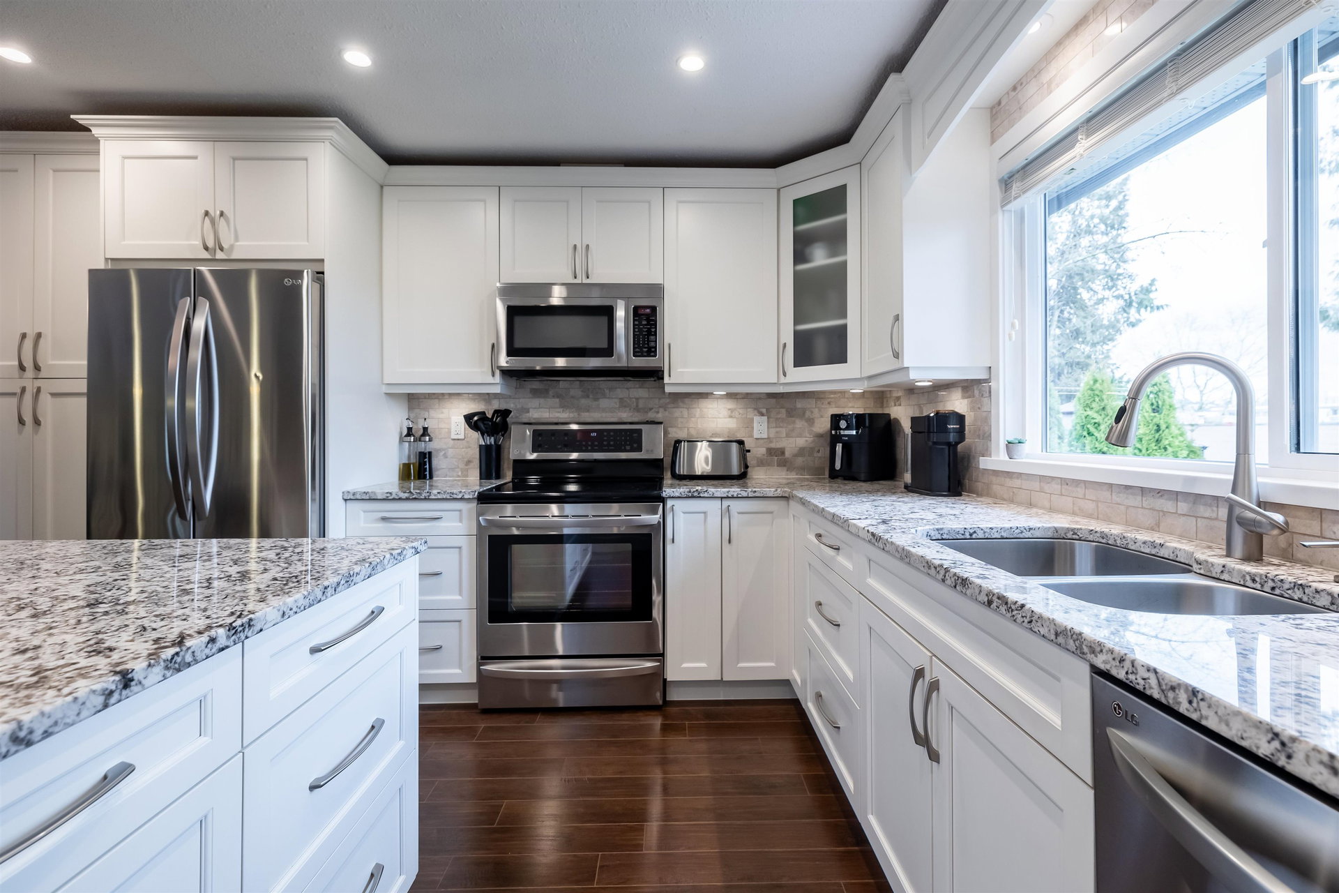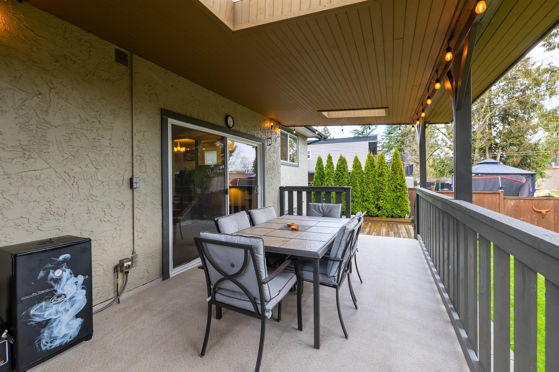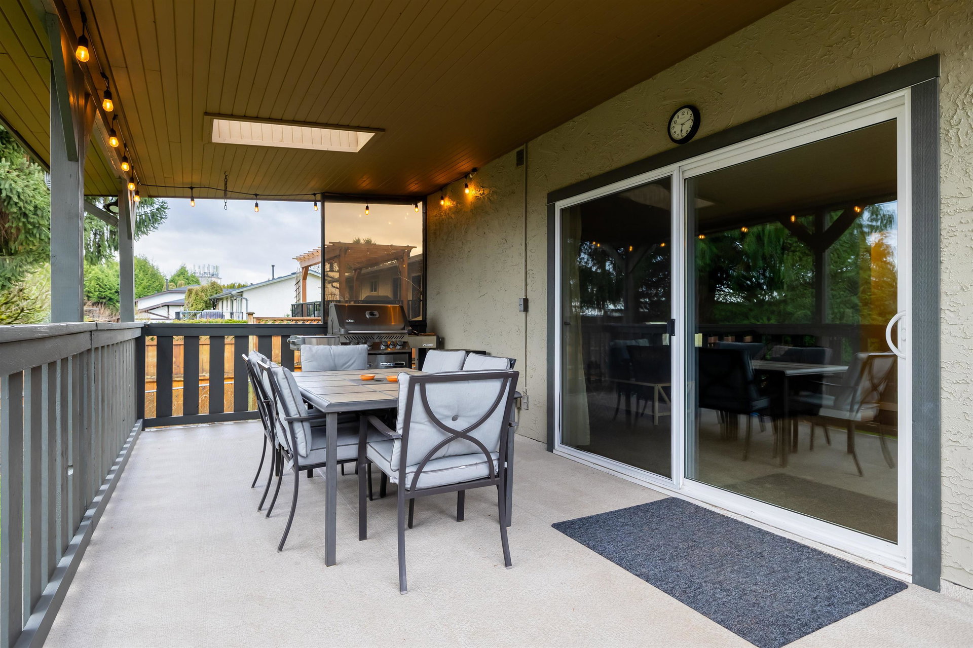 Beautiful family home on the Clayton/Langley Border where comfort meets style at this well maintained residence on a quiet street. 4 level split with great layout & loaded w updates. Enjoy cooking in the sleek modern kitchen with stainless steel appliances, updated countertops, white cabinets & huge island to entertain! Large living area w upgraded floors. Warm paint tones throughout . Family room has gas fireplace & Sliding door leading to back covered deck to enjoy your morning coffee! 7183 sq ft private fully fenced lot with hot tub. 3 bedrooms upstairs with large master suite. Lower basement area is a great rec room space for the kids! Ton of storage. RV parking & Air Conditioning. Footsteps to Willowbrook Mall and bus route! Shows pride of ownership and is a pleasure to show.