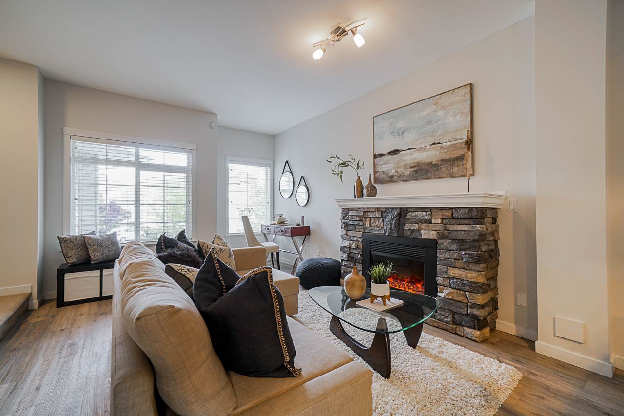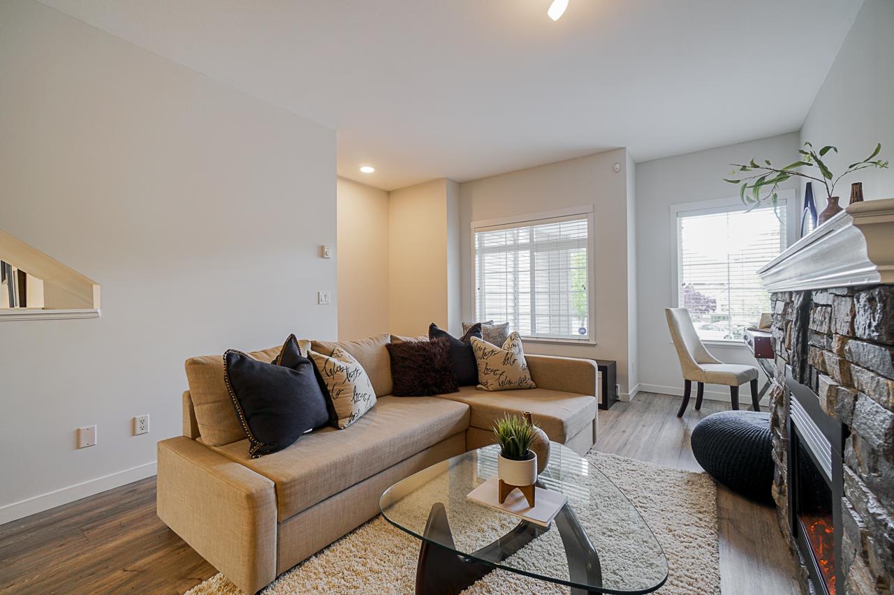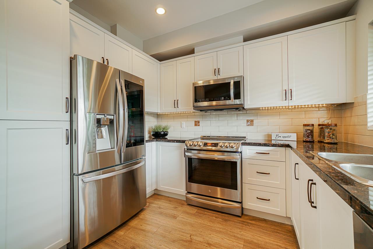 Welcome to the INDIGO in Clayton Heights. This beautiful & bright 3 bedroom, 3 bathroom townhouse has so much to offer. On the main floor, the kitchen has been redone with gorgeous white soft close cabinets, pull-outs, and updated LG/Bosch appliances. Other updates include, Vinyl plank flooring, paint and LED lighting. Not your average cookie-cutter layout, offering ample space for the whole family. All three bedrooms located upstairs with the main bathroom and master with a walk-in closet! Tandem style garage with extra storage room & media room (Could be used as a home gym). Corner unit means fabulous wrap-around veranda and extra yard space. Steps from Katzie Elementary School, Parks, transit & all that Clayton has to offer. This townhome is sure to check off all your boxes!