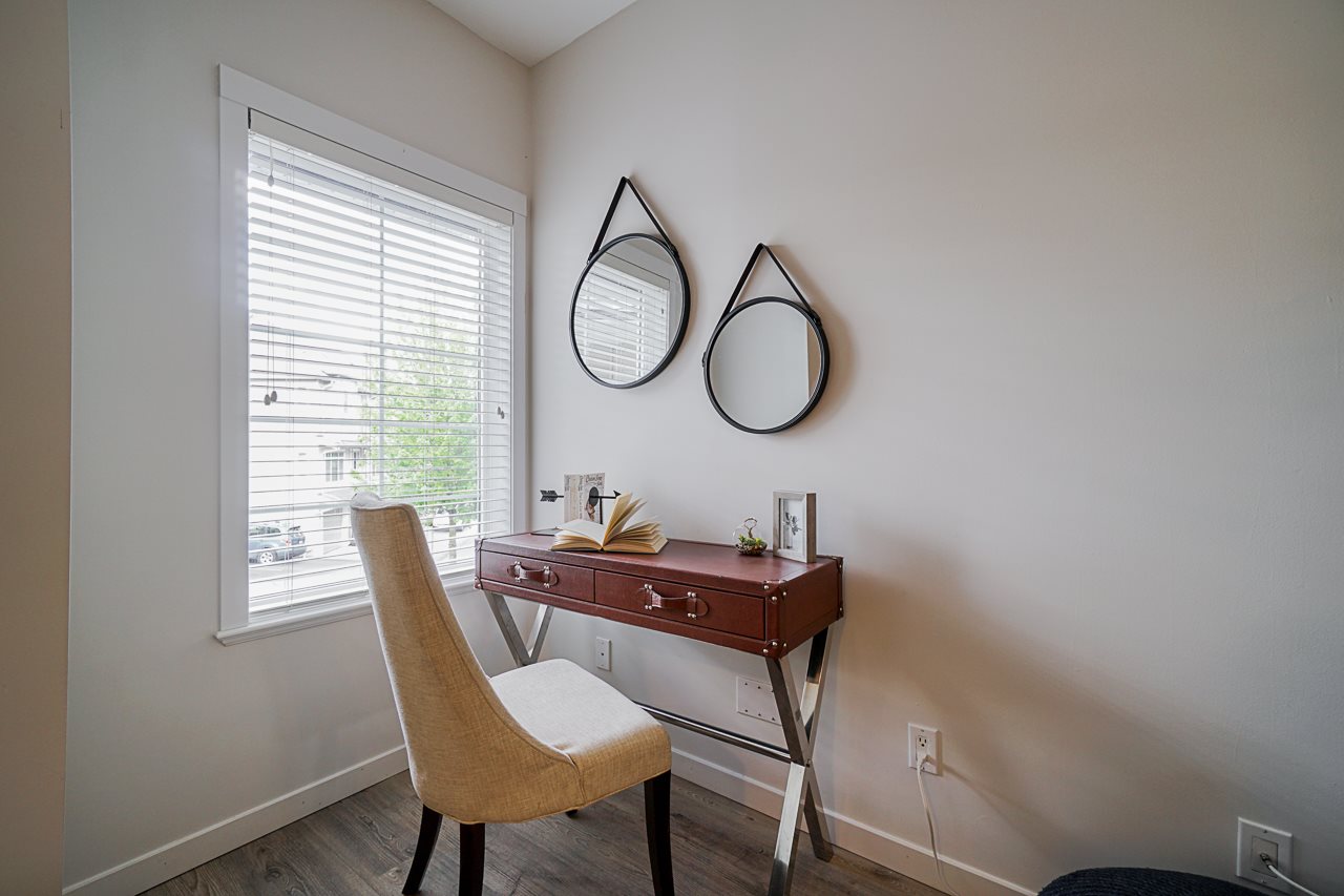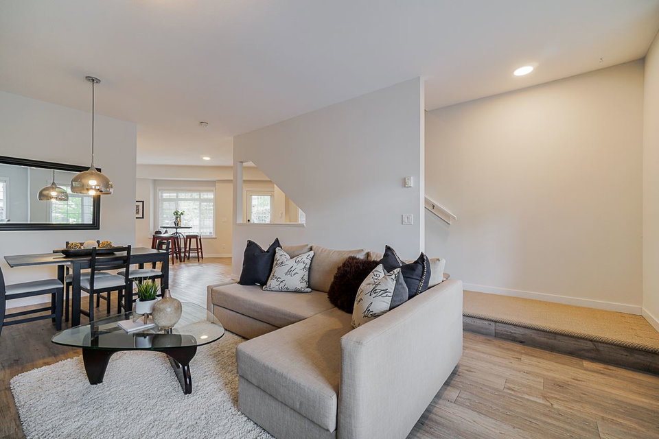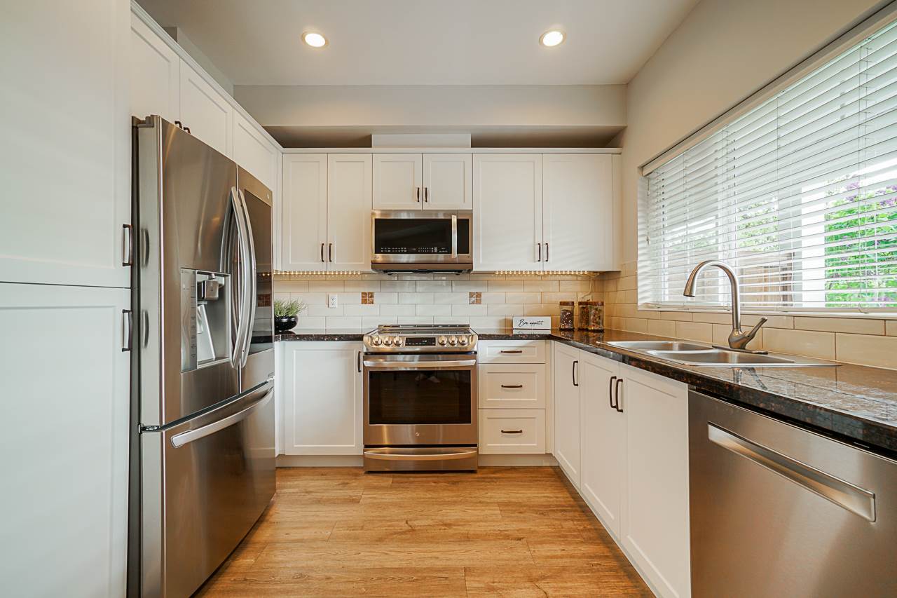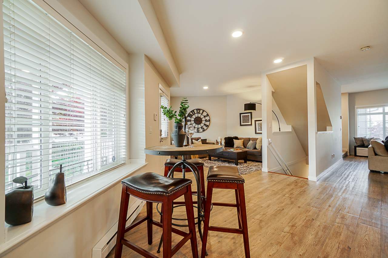 Welcome to the INDIGO in Clayton Heights. This beautiful & bright 3 bedroom, 3 bathroom townhouse has so much to offer. On the main floor, the kitchen has been redone with gorgeous white soft close cabinets, pull-outs, and updated LG/Bosch appliances. Other updates include, Vinyl plank flooring, paint and LED lighting. Not your average cookie-cutter layout, offering ample space for the whole family. All three bedrooms located upstairs with the main bathroom and master with a walk-in closet! Tandem style garage with extra storage room & media room (Could be used as a home gym). Corner unit means fabulous wrap-around veranda and extra yard space. Steps from Katzie Elementary School, Parks, transit & all that Clayton has to offer. This townhome is sure to check off all your boxes!