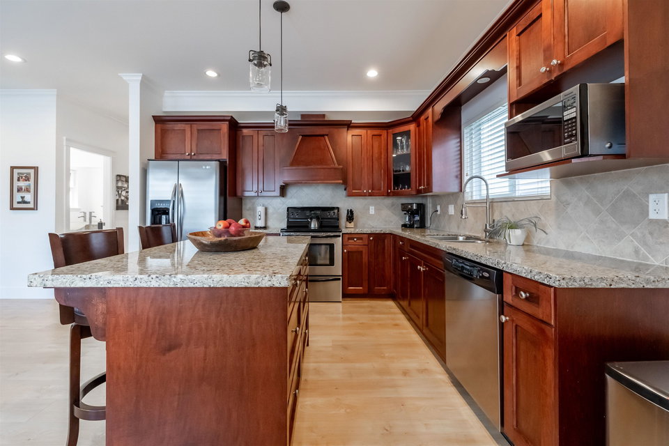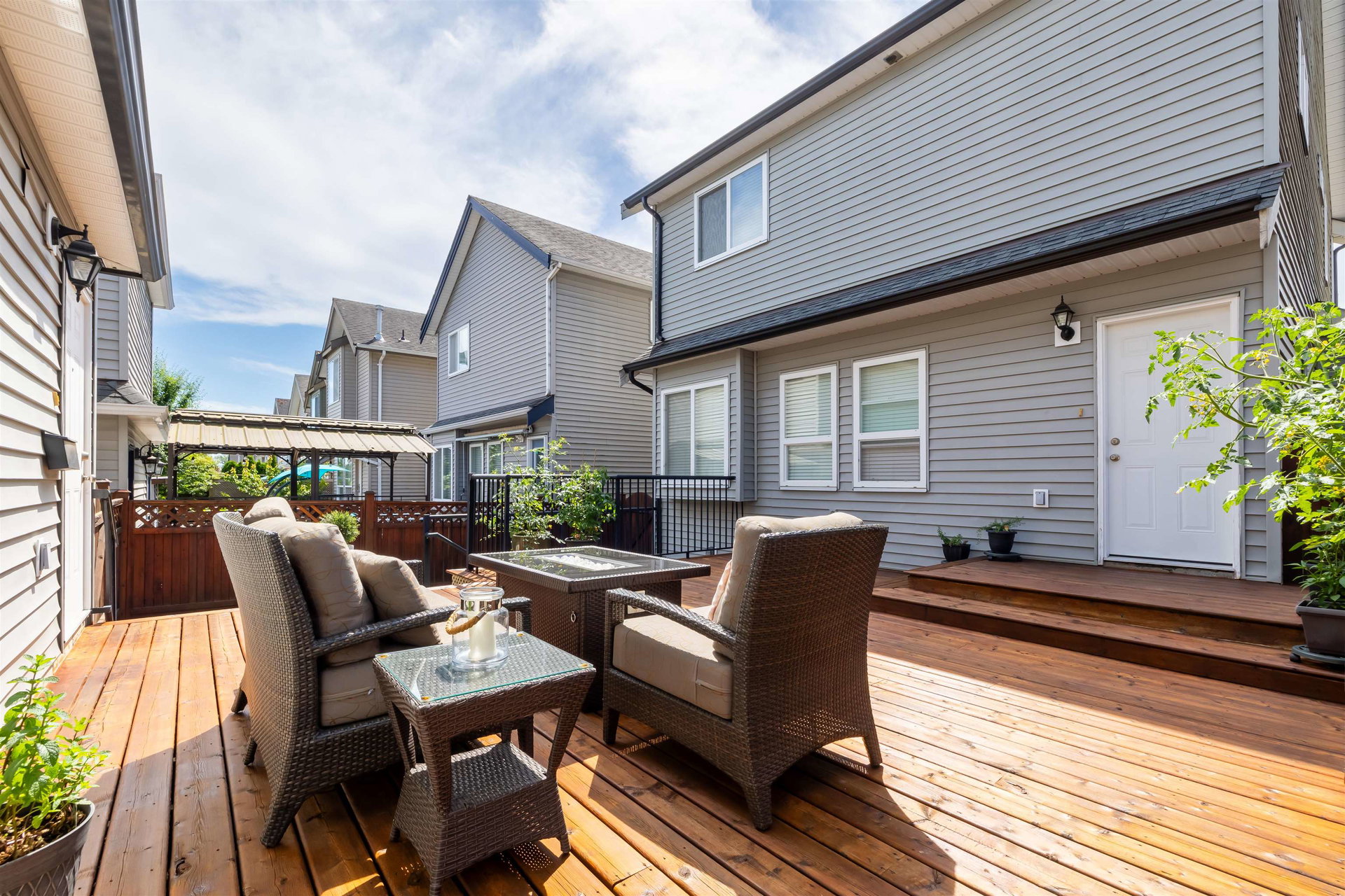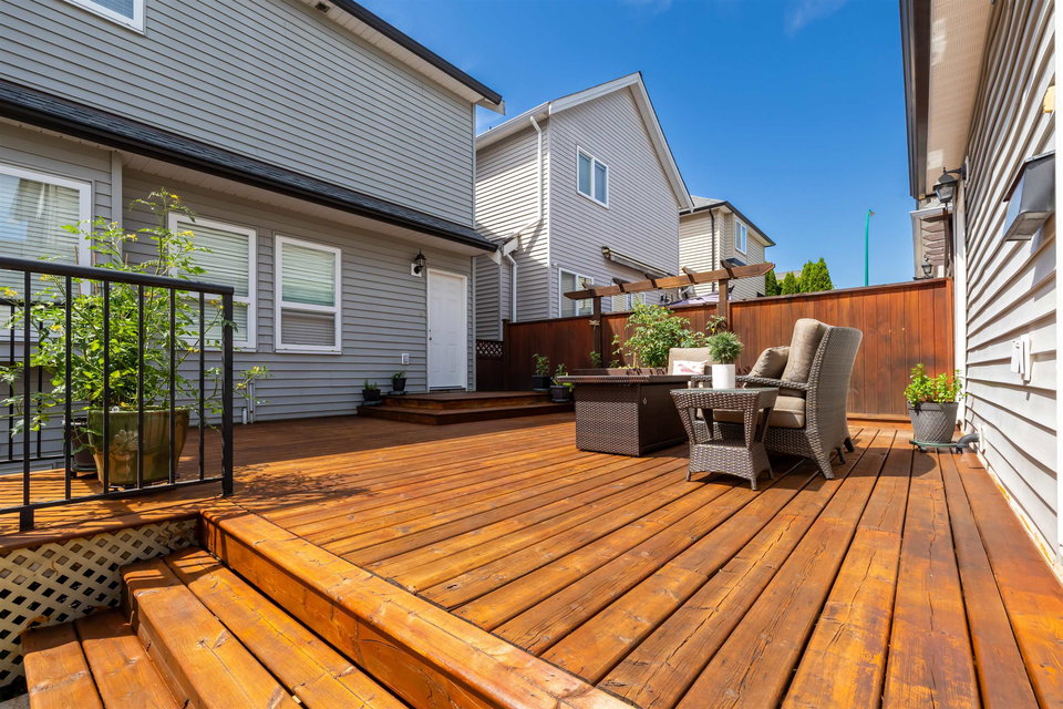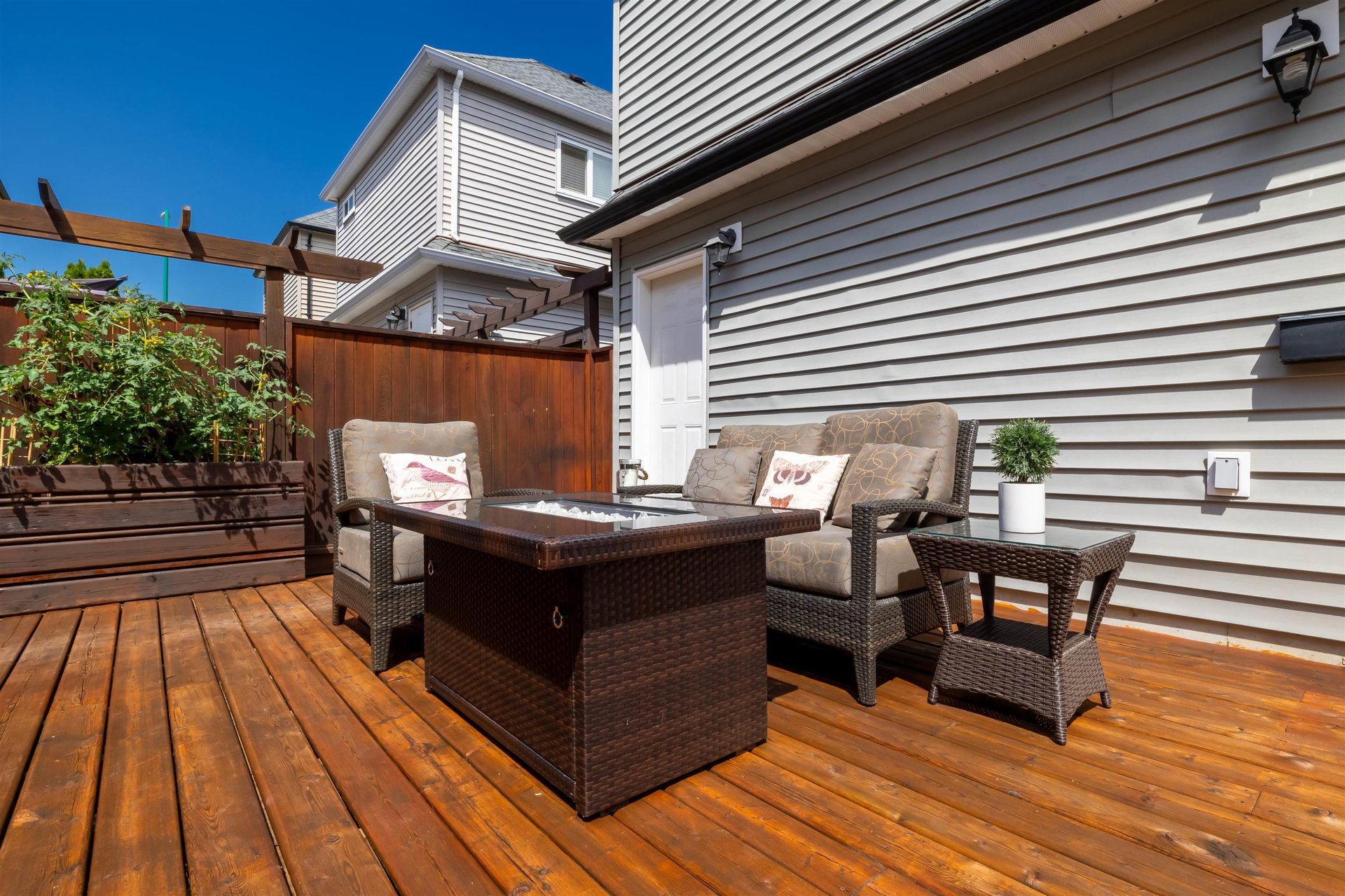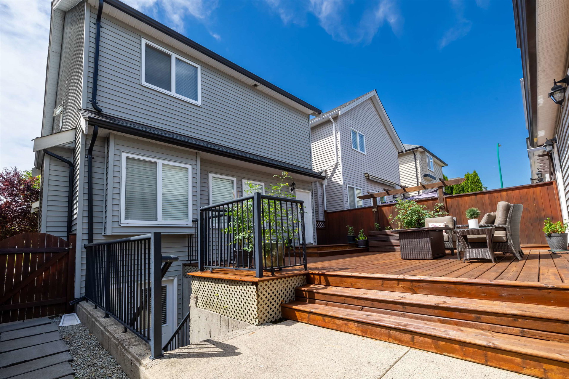 Fantastic 5 bedroom home in Clayton with a separate coach house! Great street appeal w extra parking out front and across from a beautiful PARK w playground! 2 bdrm basement suite mortgage help w separate laundry. Great main floor layout w large living room, gas fireplace & spacious dining area. Loads of cabinets in kitchen w island, granite countertops & stainless steel appliances. Door leads to fenced backyard w massive deck for entertaining! 3 generous sized rooms upstairs. Warm paint tones throughout. Master suite has walk in closet w shower & tub combo. Great basement suite for inlaws. 1 bdrm coach house w separate parking spot & laundry. Double car garage for extra storage & side 3rd stall. Fantastic family home & footsteps to Schools, Willowbrook Mall & more! Pride of ownership!