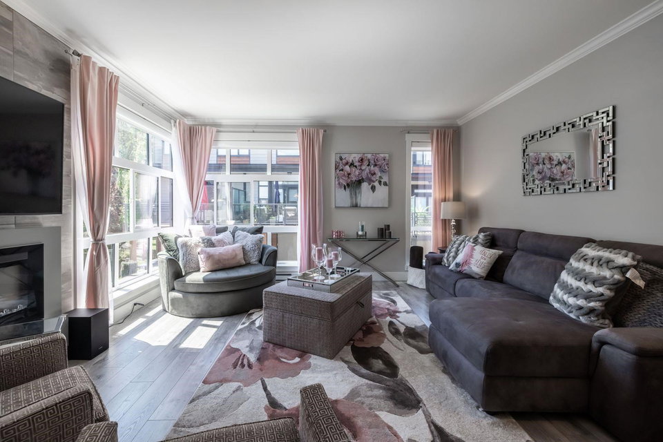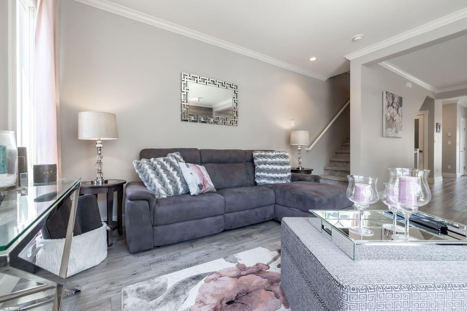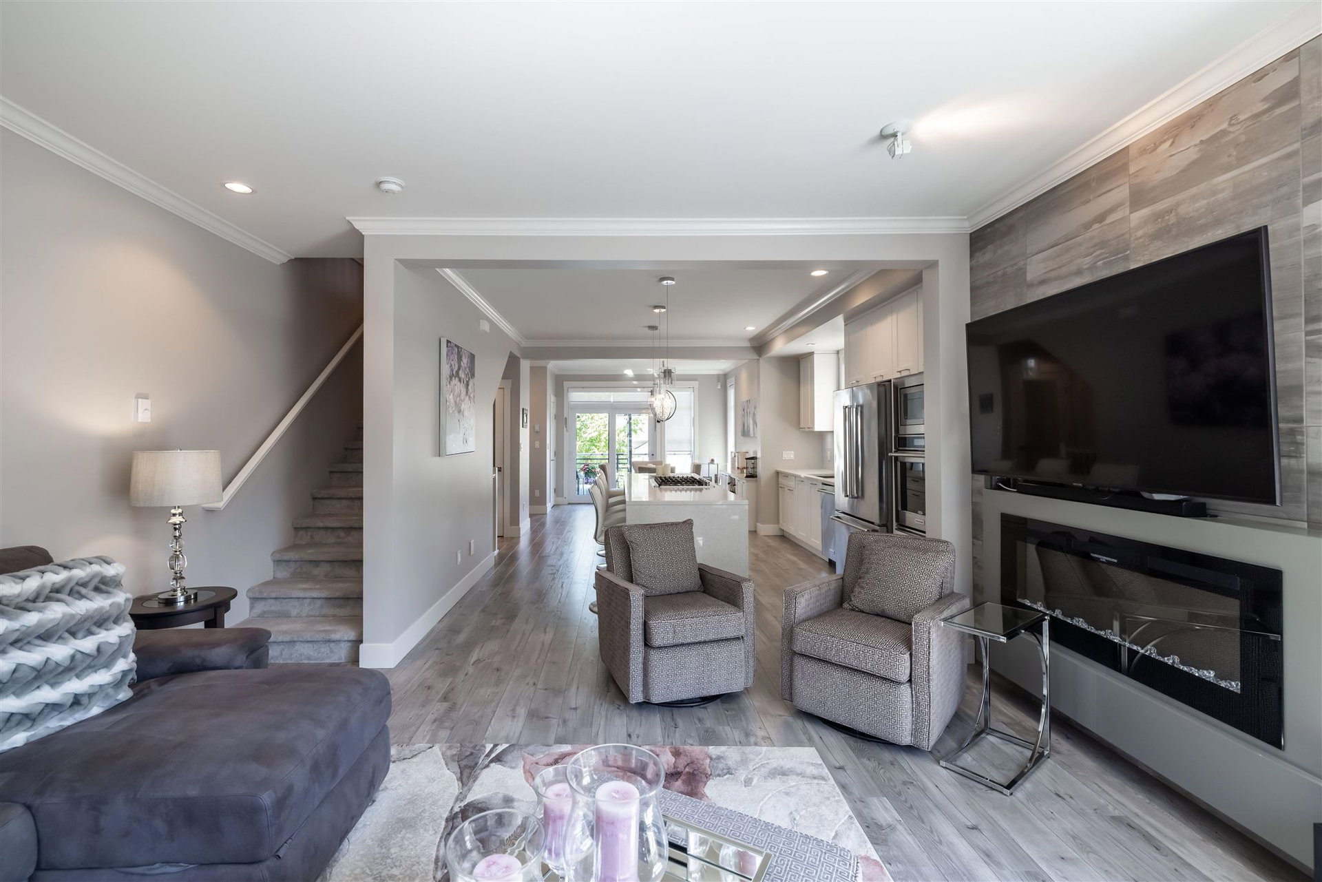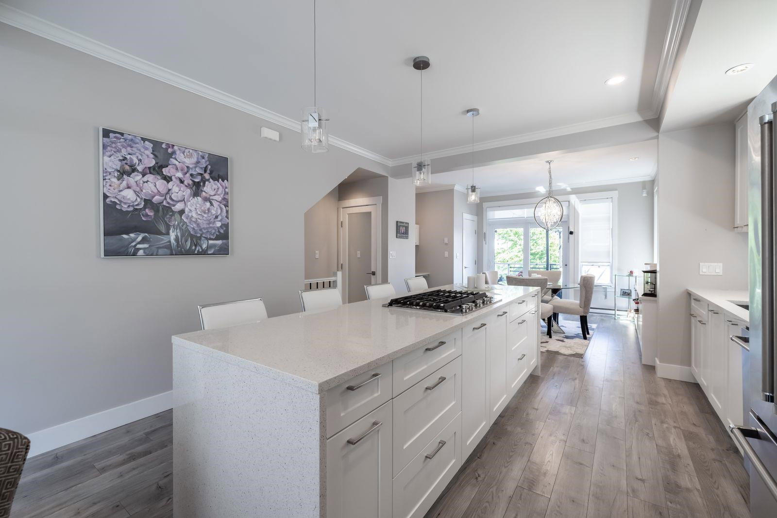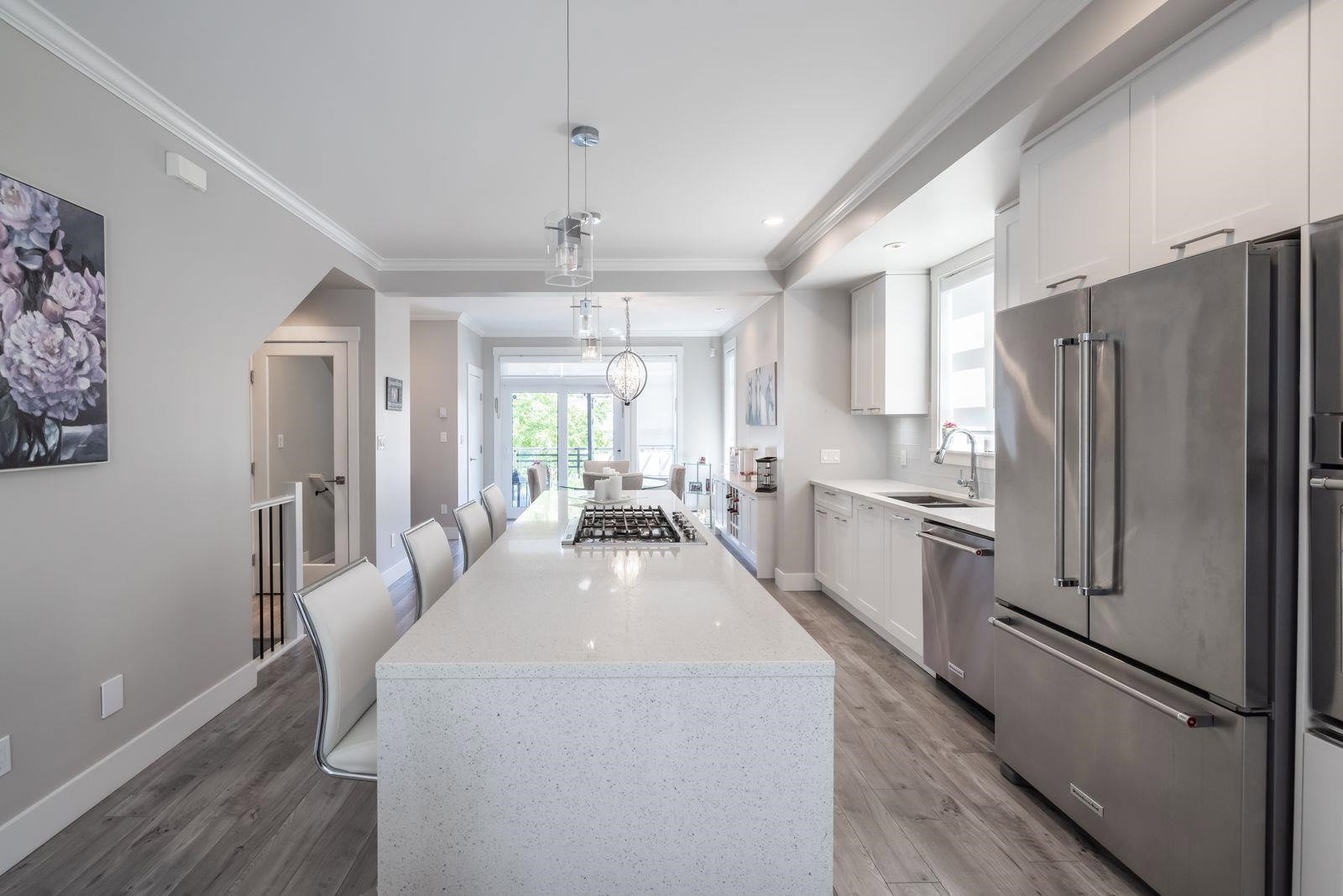 HARVEST AT BOSE FARMS! END UNIT. One of the best locations in complex! Highly sought after development in the heart of CLOVERDALE! This modern designed 3 bdrm, 3 bath townhouse is only 5 years old & features a bright, open floor plan w 9′ ceilings, crown moldings, beautiful oversized island for entertaining & powder 2 piece on main floor! Gourmet kitchen w stainless steel appliances, gas range, under mount sink & room for bar stools. Stunning tiled living room feature wall with fireplace. Sliding door off dining area leads to your private back deck w built in gas bbq hookup! Spacious master bedroom w double sinks in ensuite & shower. Tankless hot water system. Fenced rear WRAP AROUND yard & patio area is perfect for your pet! Footsteps to Everything! 10 out of 10!