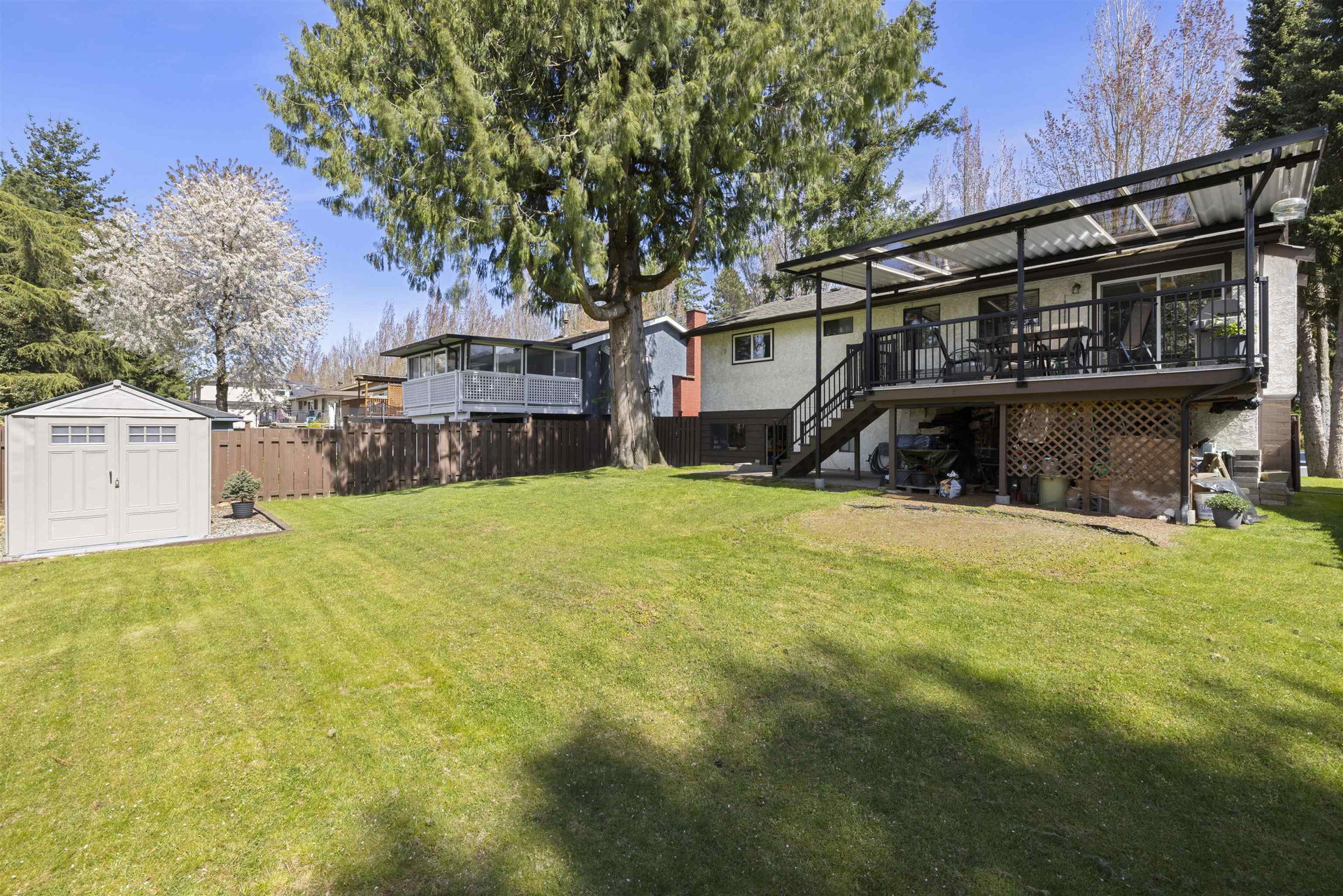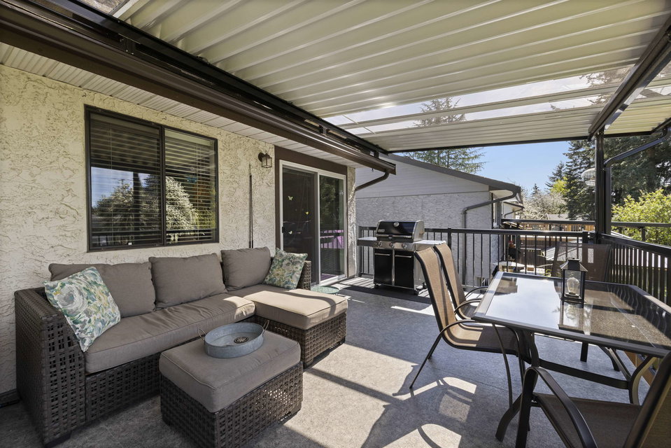 Same owners for 39 years on this meticulous basement home in a quiet family oriented neighbourhood! Pride of ownership in this 4 bedroom home situated on a beautiful 6326 sq ft WEST FACING lot. Step inside to loads of upgrades with a beautiful home plan with upgraded flooring, vaulted ceiling in living room, dining room with sliding doors leading to large deck for entertaining. Fully covered with upgraded metal roof making all year around outdoor living enjoyable. Beautiful New kitchen with granite countertops, floors, stainless steel appliances, upgraded fixtures & cabinets. 3 spacious bedrooms upstairs & bonus 4th room in basement with large rec room. Upgraded furnace and full size laundry room. Backyard has shed for bonus storage. A great place to call home!