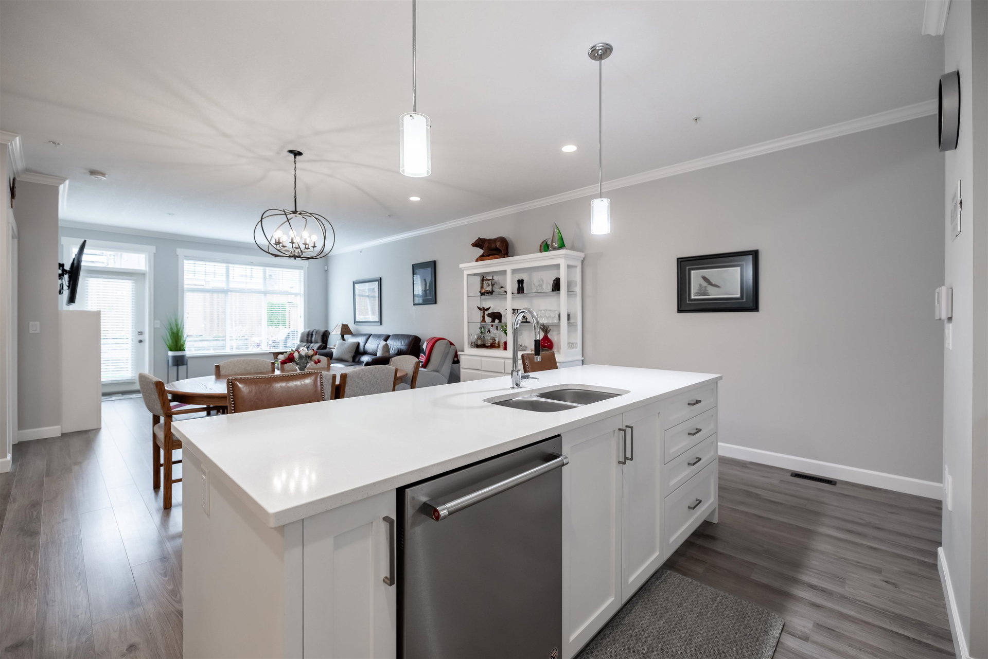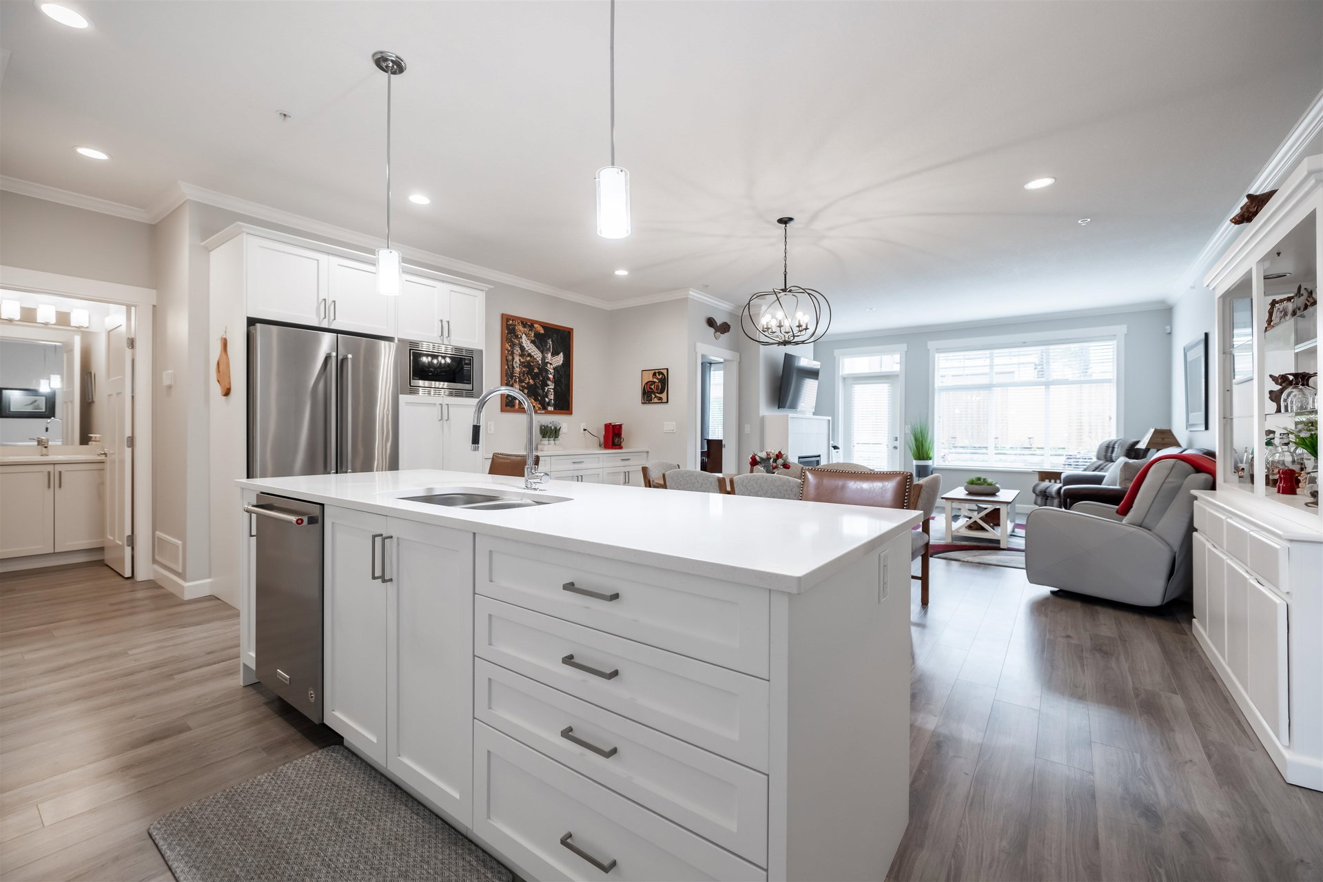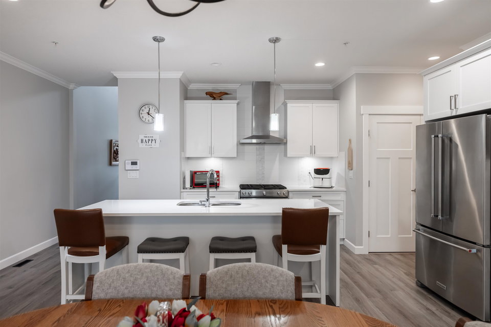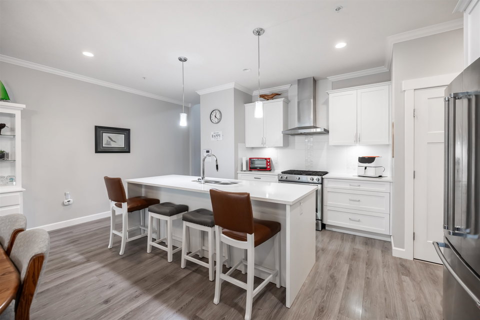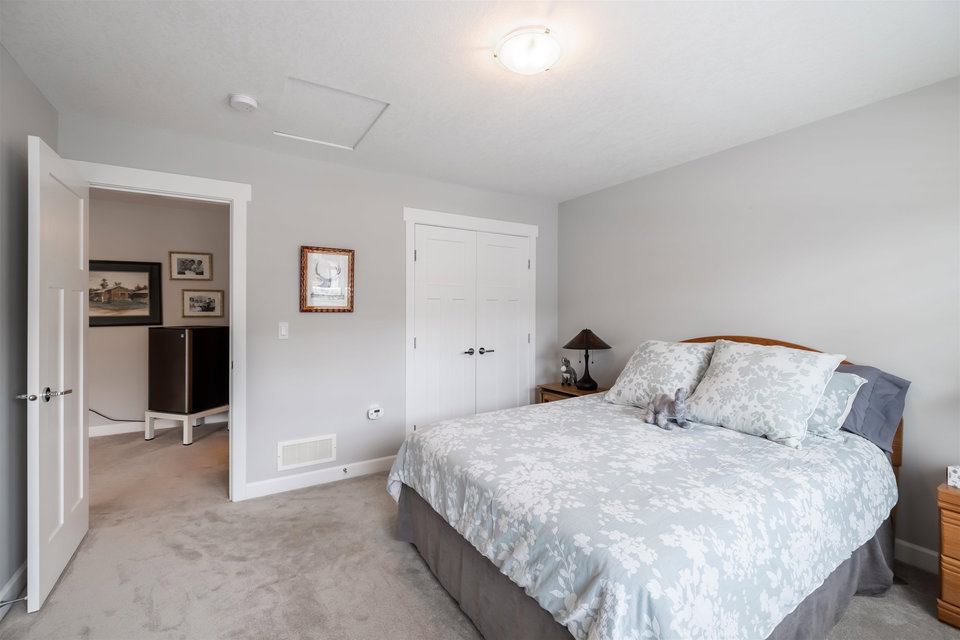 Welcome to Luxury Living in The Prestwick! This nearly 3000 SQFT townhome features master bdrm & laundry on main w/gorgeous finishings, laminate flooring, 9′ ceilings w/crown moldings, spacious open bright plan, A/C. Main level boasts entertainment sized great rm with cozy fireplace & door to fenced rear yard & patio, 2 pce powder rm, spacious dining room, gorgeous kitchen with stainless appliances, gas stove, quartz counters and large island, pull out cupboards, spacious master with walk-through closet & 4 pce ensuite. Upper level boasts a spacious family rm, bdrm and 4 pce bath. Lower level with spacious rec rm, bdrm, 4 pce bath & flex rm Double side by side garage & parking for 2 cars on the apron. Close to shops, restaurants, schools and recreation.