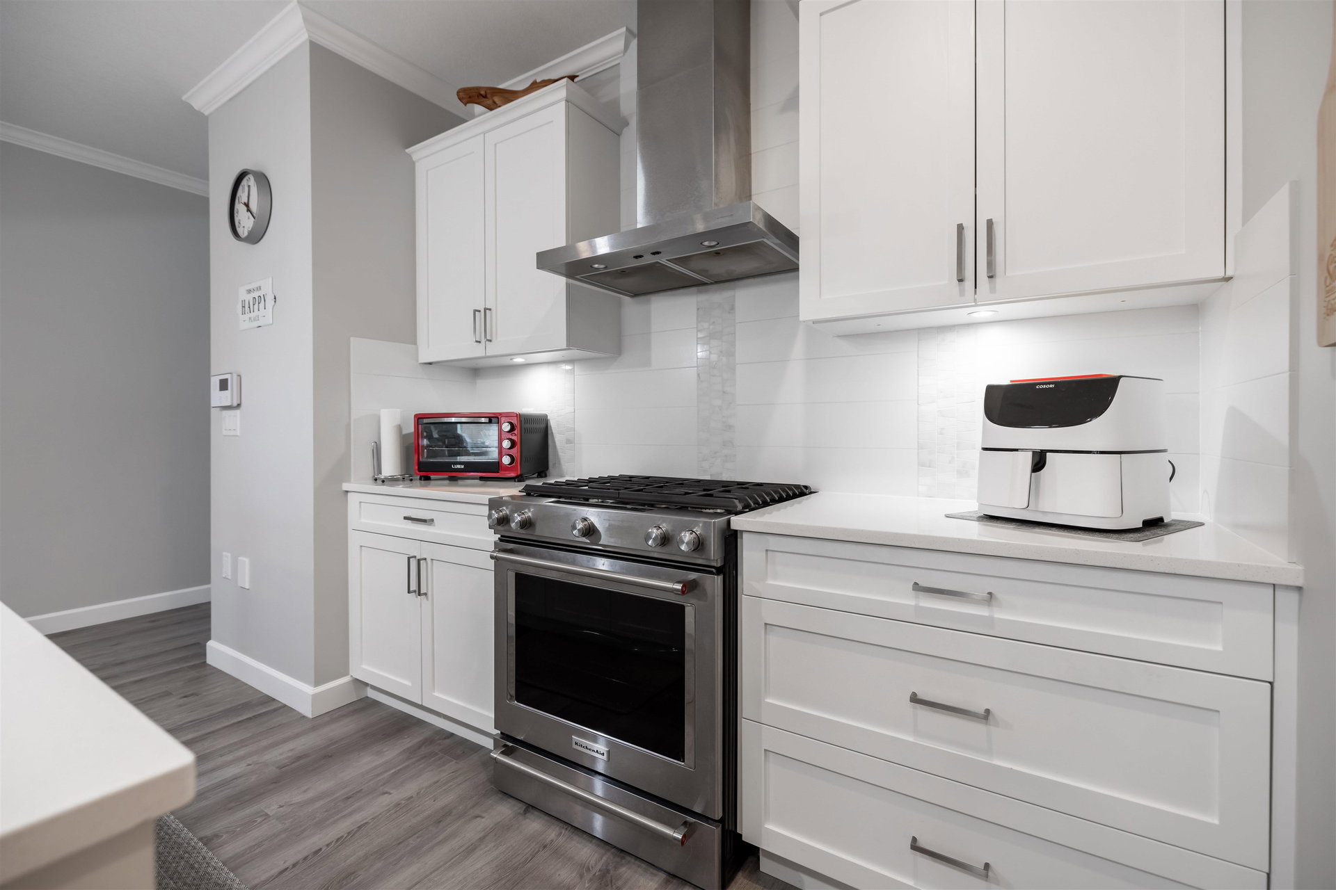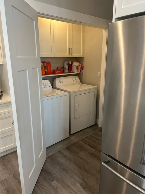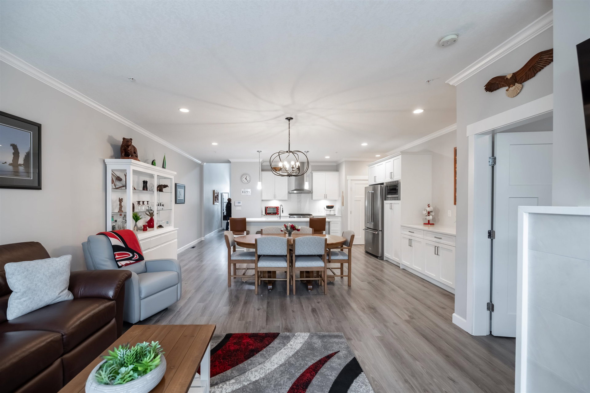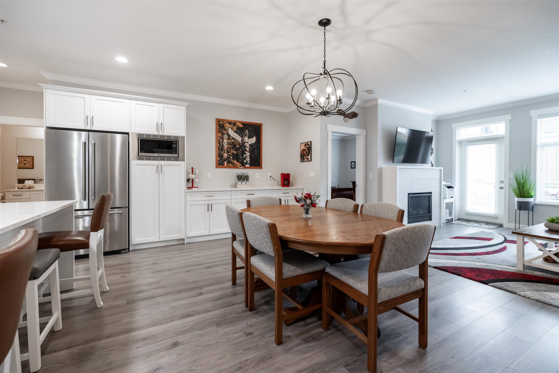 Welcome to Luxury Living in The Prestwick! This nearly 3000 SQFT townhome features master bdrm & laundry on main w/gorgeous finishings, laminate flooring, 9′ ceilings w/crown moldings, spacious open bright plan, A/C. Main level boasts entertainment sized great rm with cozy fireplace & door to fenced rear yard & patio, 2 pce powder rm, spacious dining room, gorgeous kitchen with stainless appliances, gas stove, quartz counters and large island, pull out cupboards, spacious master with walk-through closet & 4 pce ensuite. Upper level boasts a spacious family rm, bdrm and 4 pce bath. Lower level with spacious rec rm, bdrm, 4 pce bath & flex rm Double side by side garage & parking for 2 cars on the apron. Close to shops, restaurants, schools and recreation.