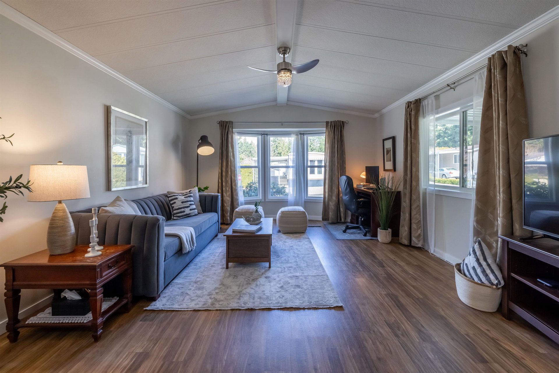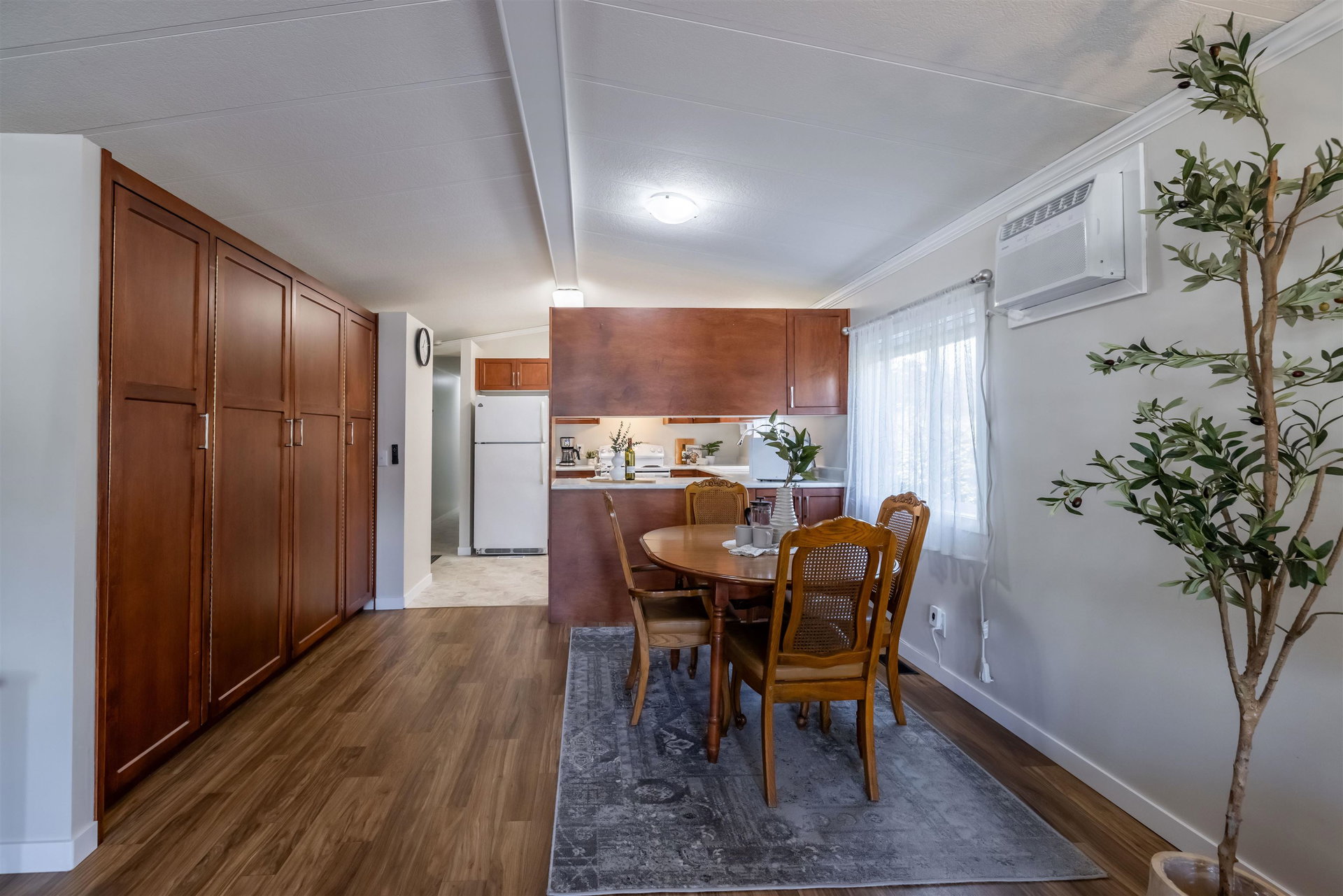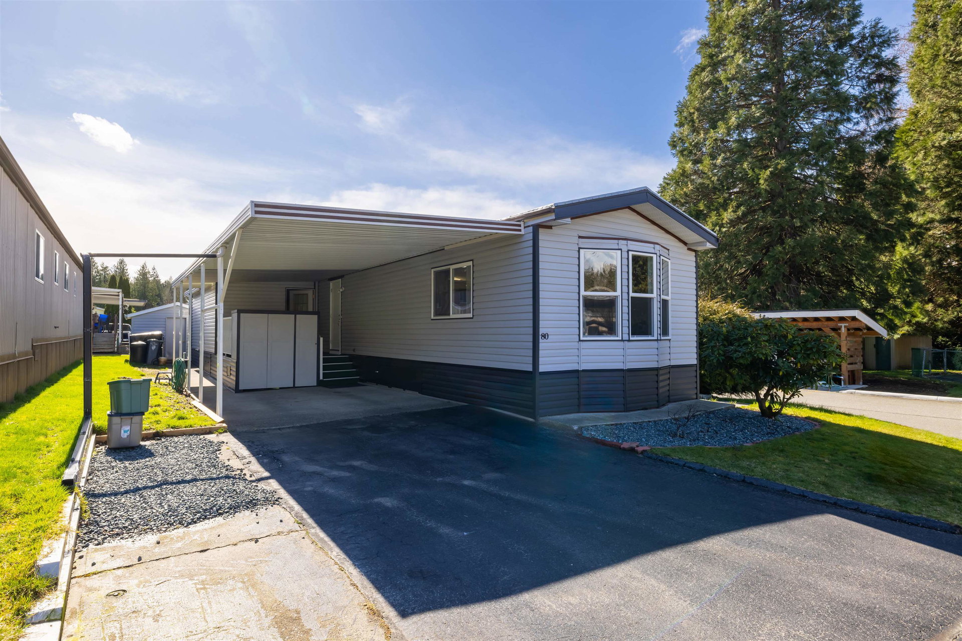 Welcome to DEER CREEK ESTATES, a desirable adult-oriented community surrounded by nature. This completely renovated 2 bed, 2 bath offers 936sqft of bright living space with vaulted ceilings & large windows that bring in natural light. Updates from top to bottom include NEW gyprock walls & exterior siding with new vinyl floors throughout, along with all new bathroom fixtures & equipped w/ AC. The renovated kitchen includes custom built-ins for storage, ample counter space, and a separate dining area perfect for entertaining. The spacious primary suite includes a large closet and a private en-suite. There’s convenience of a parking pad plus covered parking, a connected WORKSHOP, private patio, and an additional shed for extra storage options. Move-in ready & ideal for downsizers!