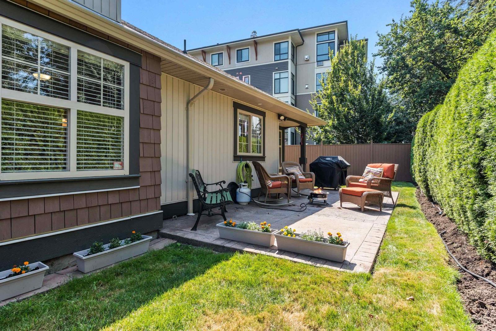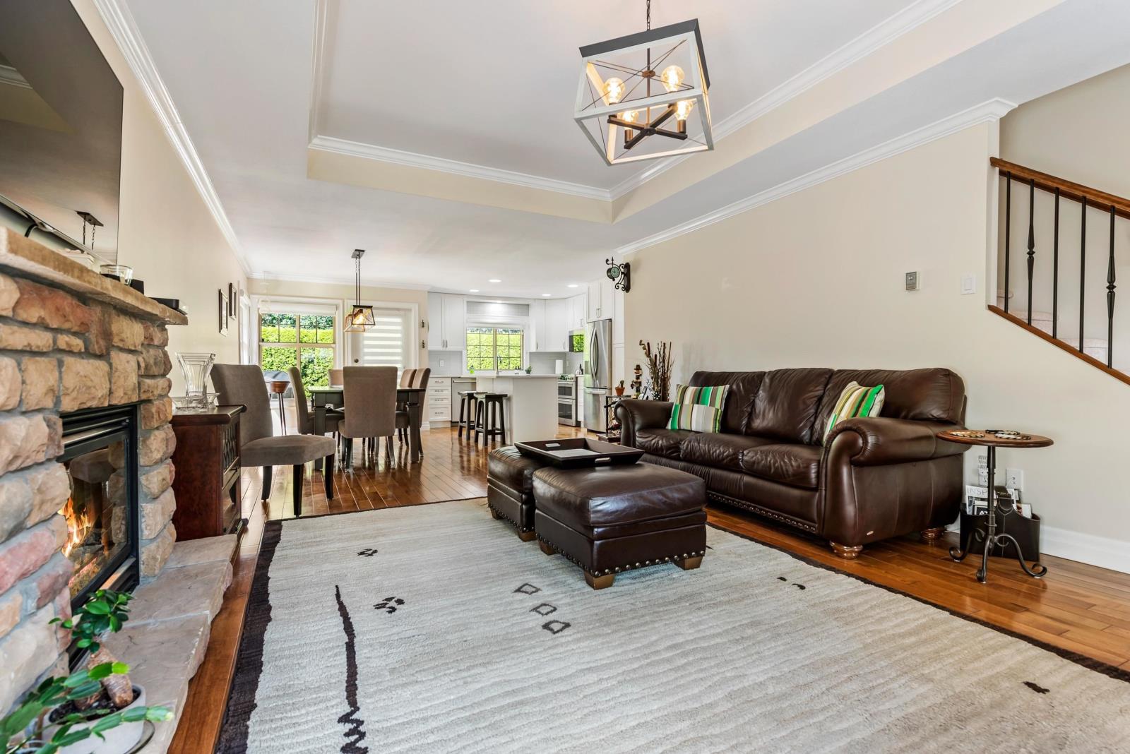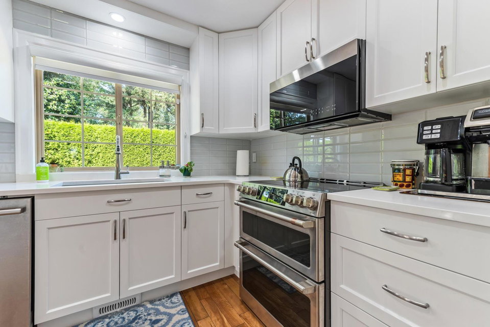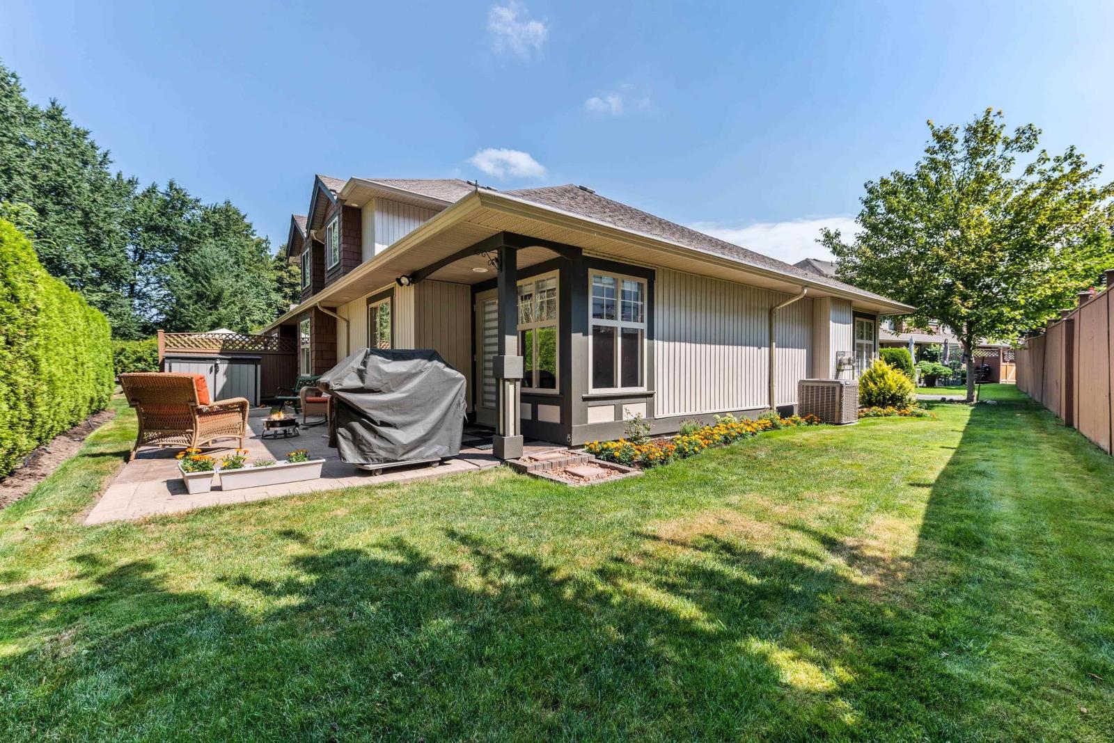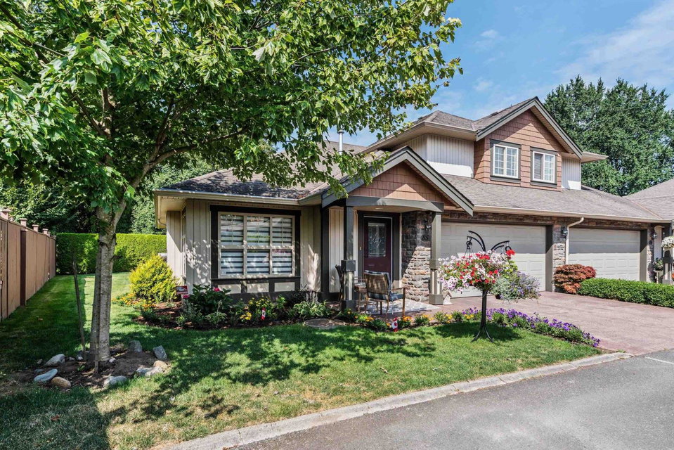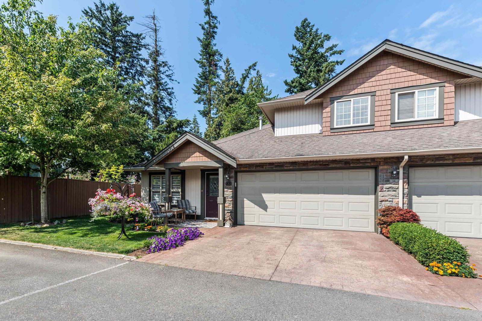 Immaculate updated bright end unit w/wrap around yard at Parksfield in coveted Sardis Park! Double car garage, full driveway, master on main w/en-suite plus walk in closet, hardwood floor in main living area, new stunning white kitchen w/induction stove, stainless steel appliances, quartz, pantry, over the hood microwave, beveled glass backsplash, large kitchen sink plus bright window to enjoy the views of the treelined backyard. Other updates include bathroom vanities, toilets, light fixtures, paint, furnace, hot water tank, a/c, flooring & blinds! With an amazing location close to schools, parks, golf, short walk to restaurants & shops, extended patio & private yard this home has it all. Rentals & pets allowed (1 dog or cat, no size restriction for dogs); call today!