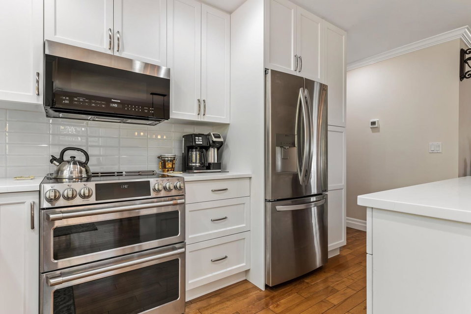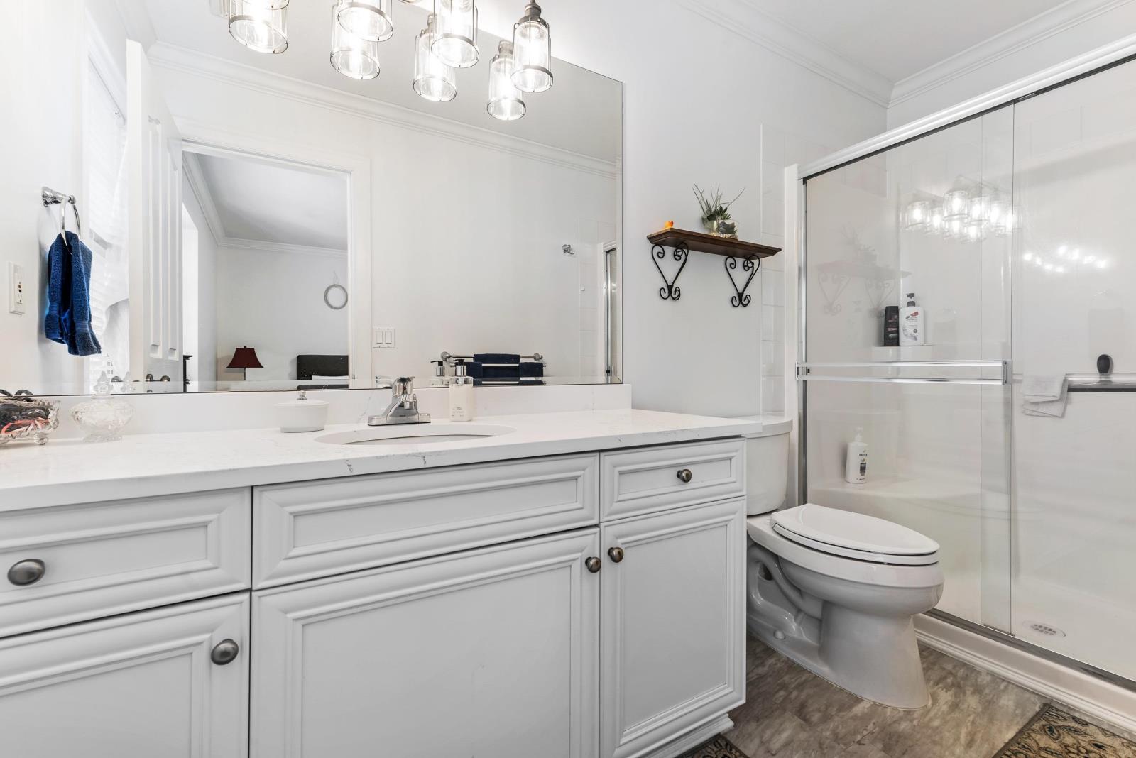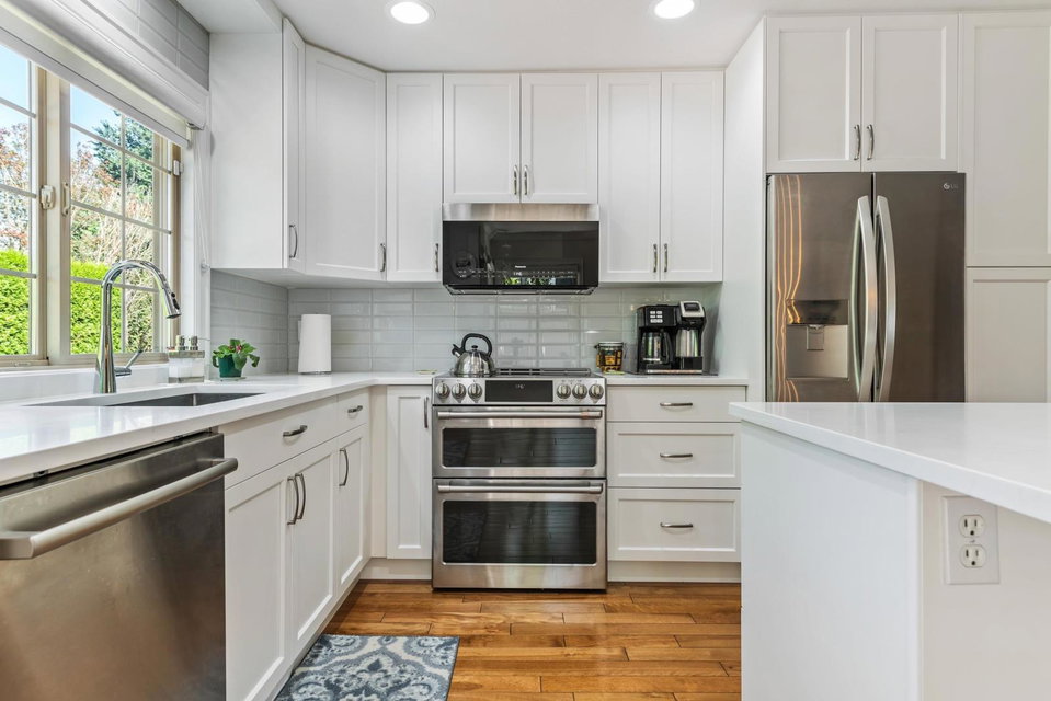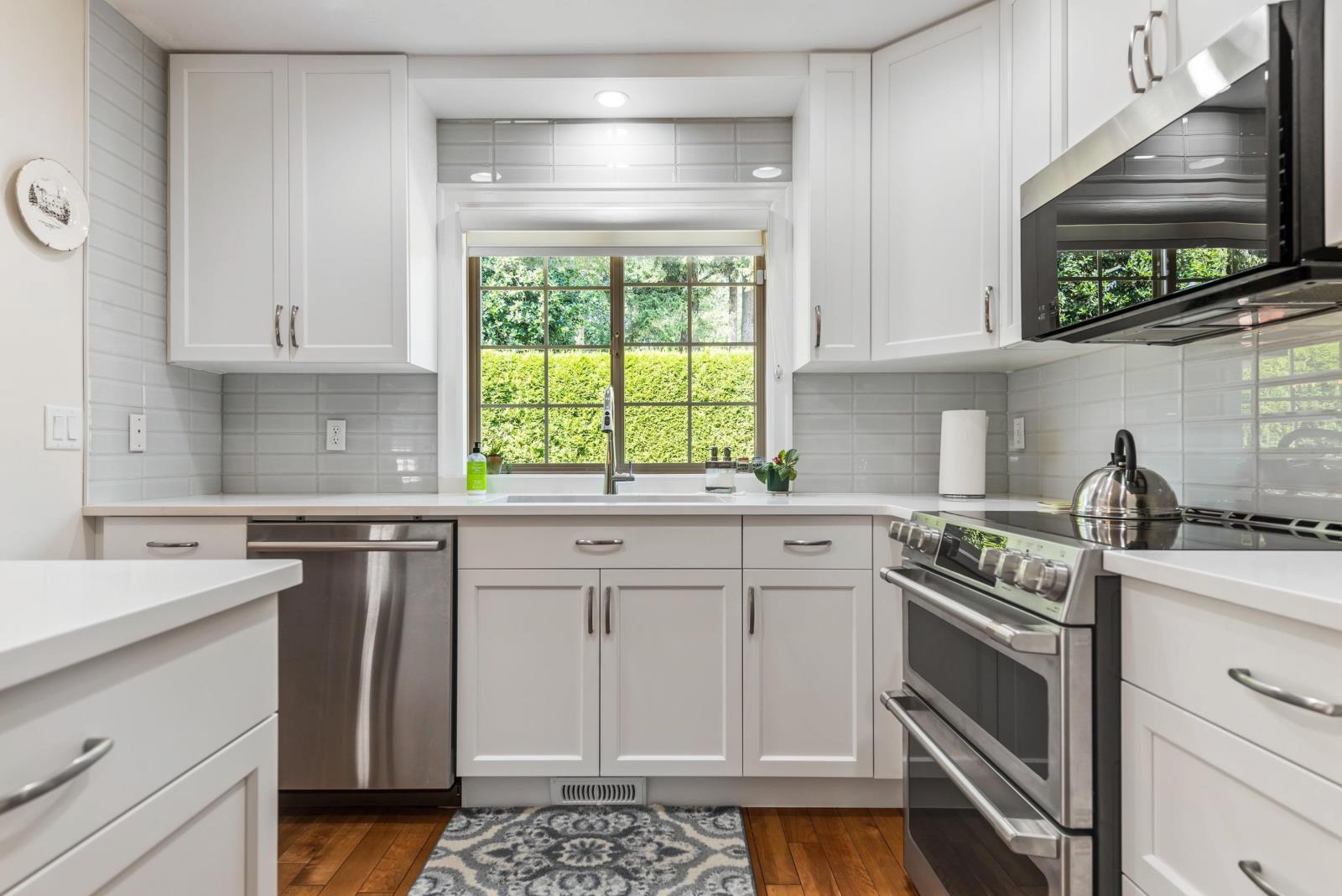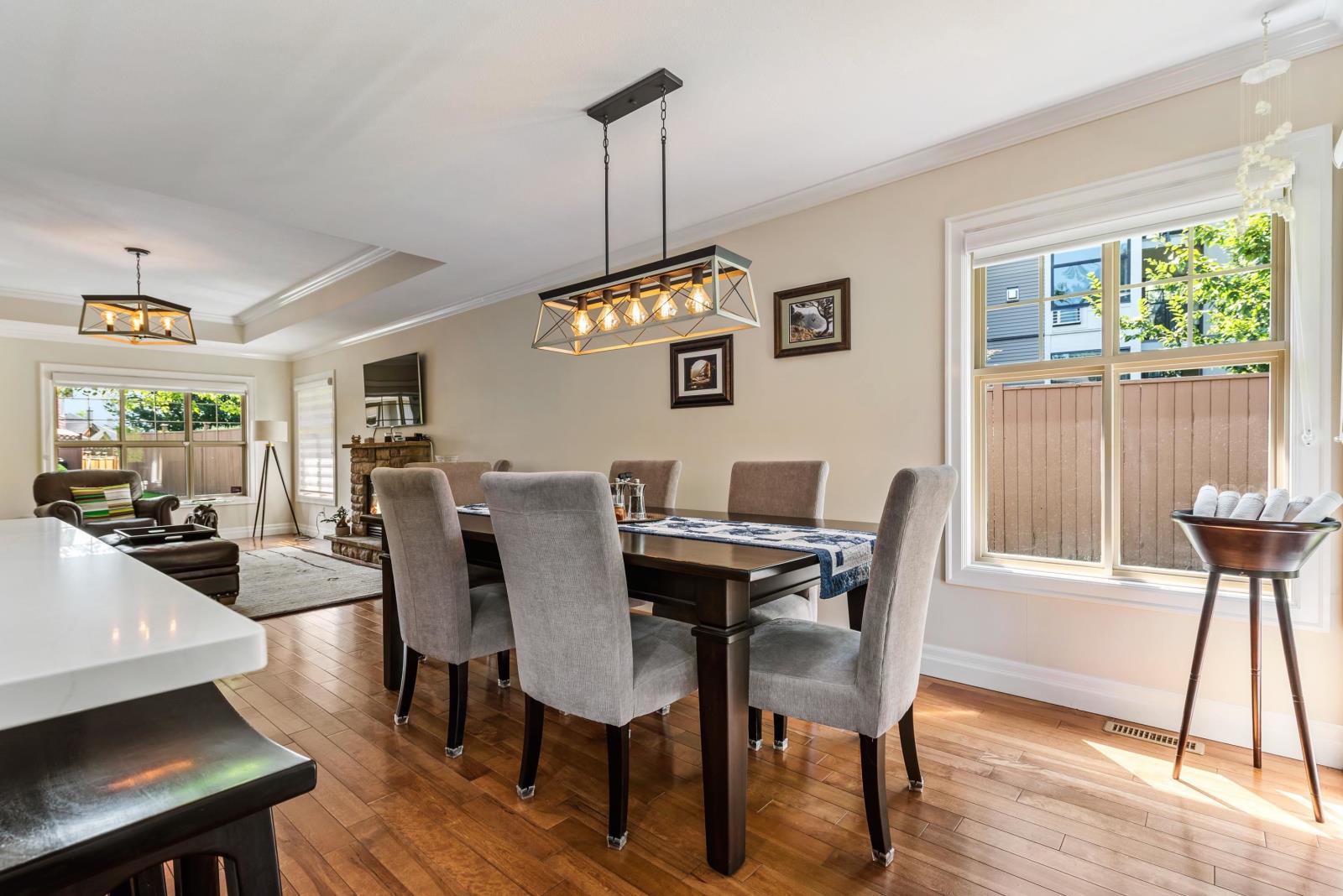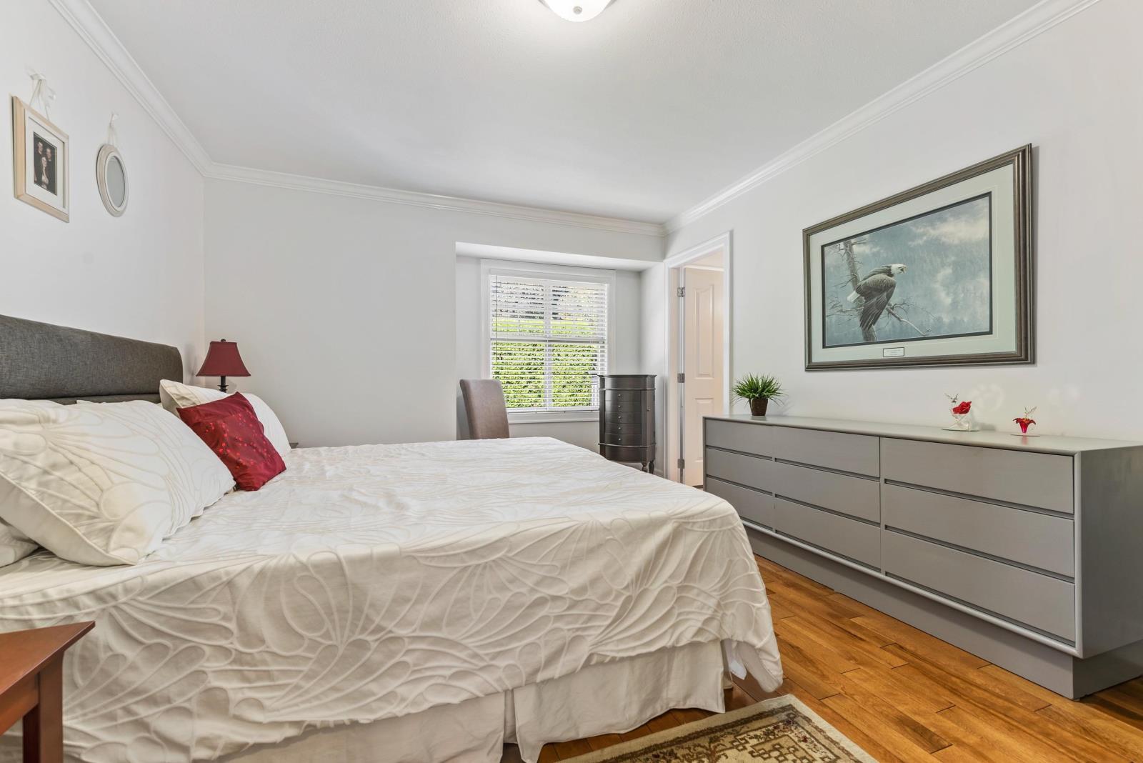 Immaculate updated bright end unit w/wrap around yard at Parksfield in coveted Sardis Park! Double car garage, full driveway, master on main w/en-suite plus walk in closet, hardwood floor in main living area, new stunning white kitchen w/induction stove, stainless steel appliances, quartz, pantry, over the hood microwave, beveled glass backsplash, large kitchen sink plus bright window to enjoy the views of the treelined backyard. Other updates include bathroom vanities, toilets, light fixtures, paint, furnace, hot water tank, a/c, flooring & blinds! With an amazing location close to schools, parks, golf, short walk to restaurants & shops, extended patio & private yard this home has it all. Rentals & pets allowed (1 dog or cat, no size restriction for dogs); call today!