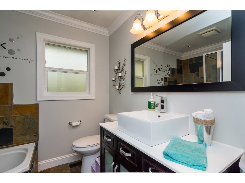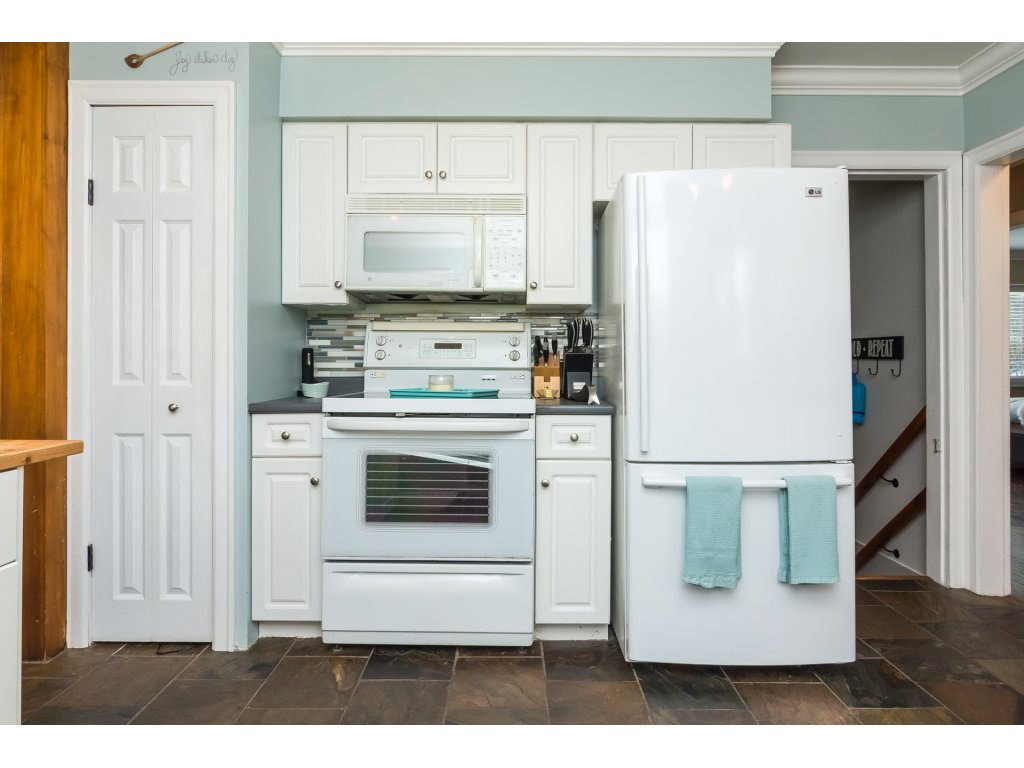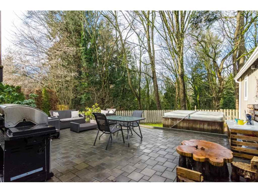 Fantastic Annieville STARTER home in NORTH DELTA w mortgage helper! This 2000+ sq ft home has been totally UPDATED top to bottom! Situated on a ultra PRIVATE & quiet 7560 sq ft lot backing onto RAVINE! Upgrades include brand new roof, carpets, baseboards, casings, mouldings, double vinyl windows & High efficient furnace w heat pump & A/C! Hot water on demand & all new pex plumbing. GORGEOUS street appeal with new entry, concrete board siding & fully fenced yard for the kids to play! Warm and cozy living area with new gas fireplace & rock mantle w built ins! Renovated main bath w glass shower. Downstairs features SPOTLESS 1 bdrm suite (could be 2 bdrm) w private entry and insuite laundry! Detached garage & massive brick patio!