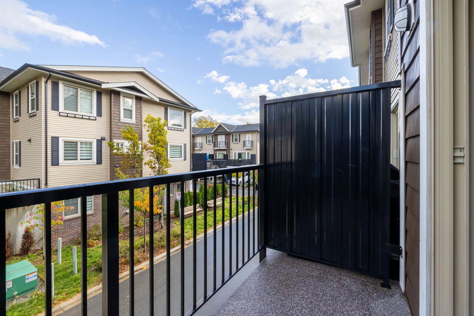 Beautiful 3 bedroom, 4 bath plus Flex END unit townhouse in Lotus 2! Great location in Central Abbotsford. Open bright layout w loads of windows, white kitchen w stainless steel countertops, room for your bar stools, laminate floors & extra den area for your work station or eating table. 2 piece powder washroom on main floor. Deck of back perfect to enjoy your morning coffee. 3 bedrooms upstairs & laundry. Downstairs features a bonus flex area w washroom. Great space for home office or teenager room. Park right out front on street for added convienance. Unit comes w single car garage & covered parking pad which can fit your truck. Footsteps to McCallum Junction Center w restaurants, University of Fraser Valley & freeway. Close to High Street Mall & loads of amenties.Only 2 years old!