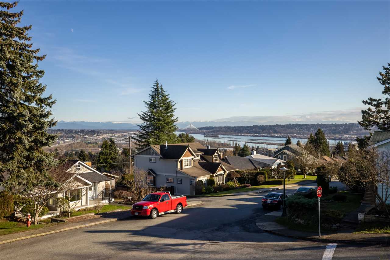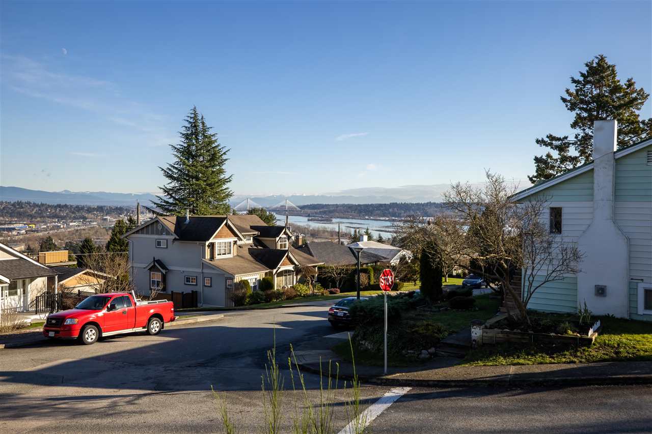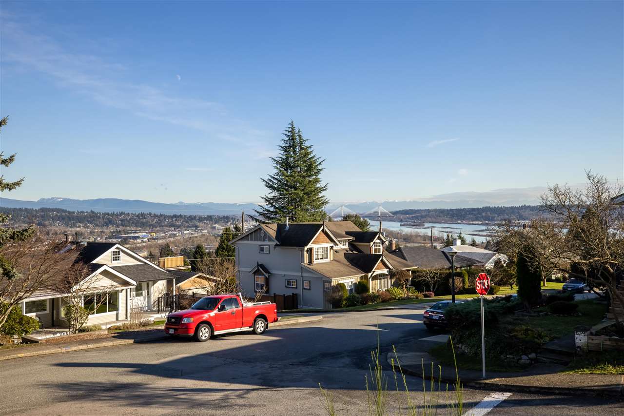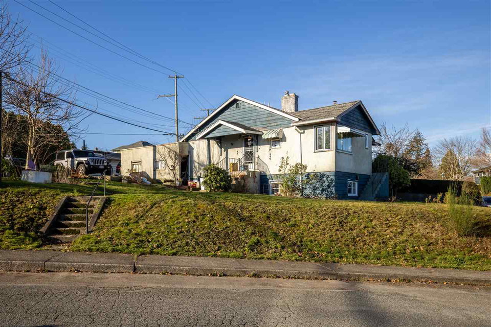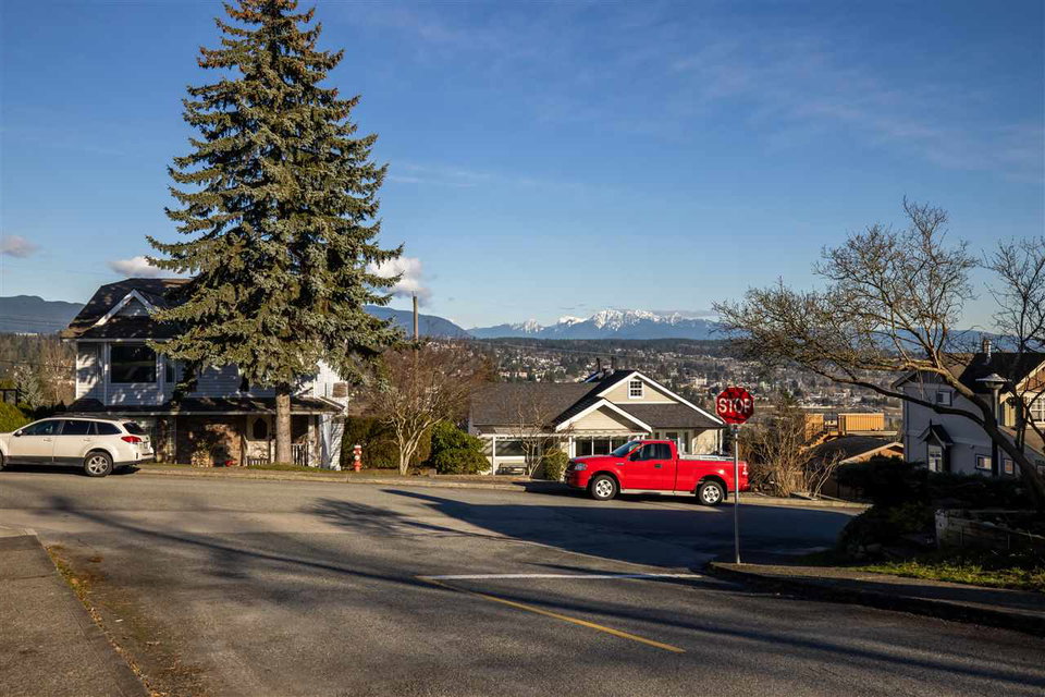 MILLION DOLLAR VIEWS in the HEIGHTS! Incredible unobstructed breathtaking South East views of the North Shore mountains, Fraser River & Valley! Get the house plans ready! Massive 7511 sqft corner lot on quiet street in the Heights. 52′ frontage x 109′ depth with back lane. Fantastic location perched high on the hill. Older 2 bedroom basement home with 2 bedrooms down. Zoning allows for potential lane home / basement suite.