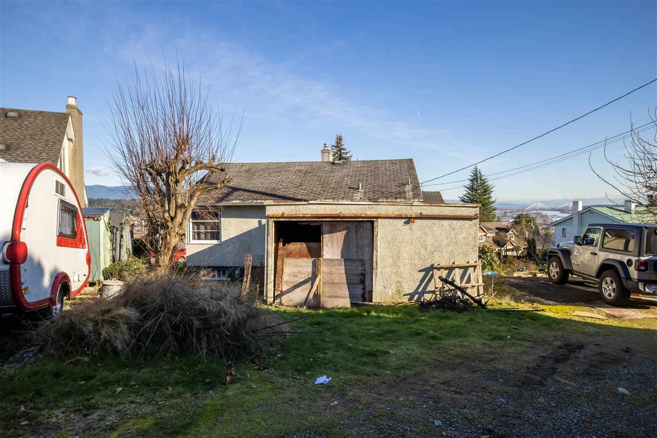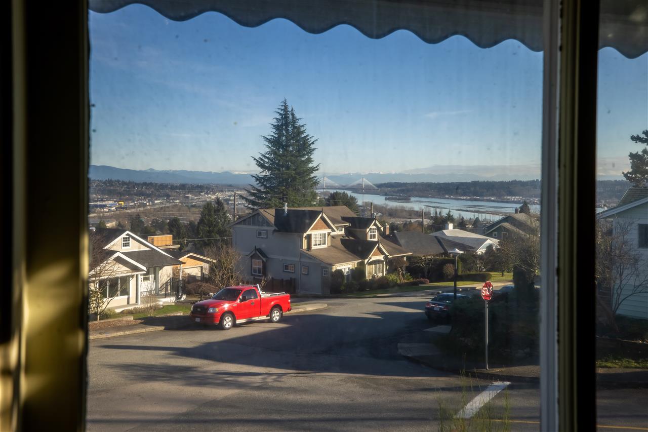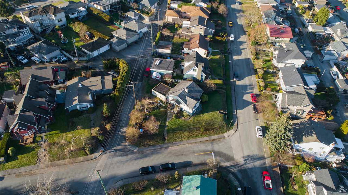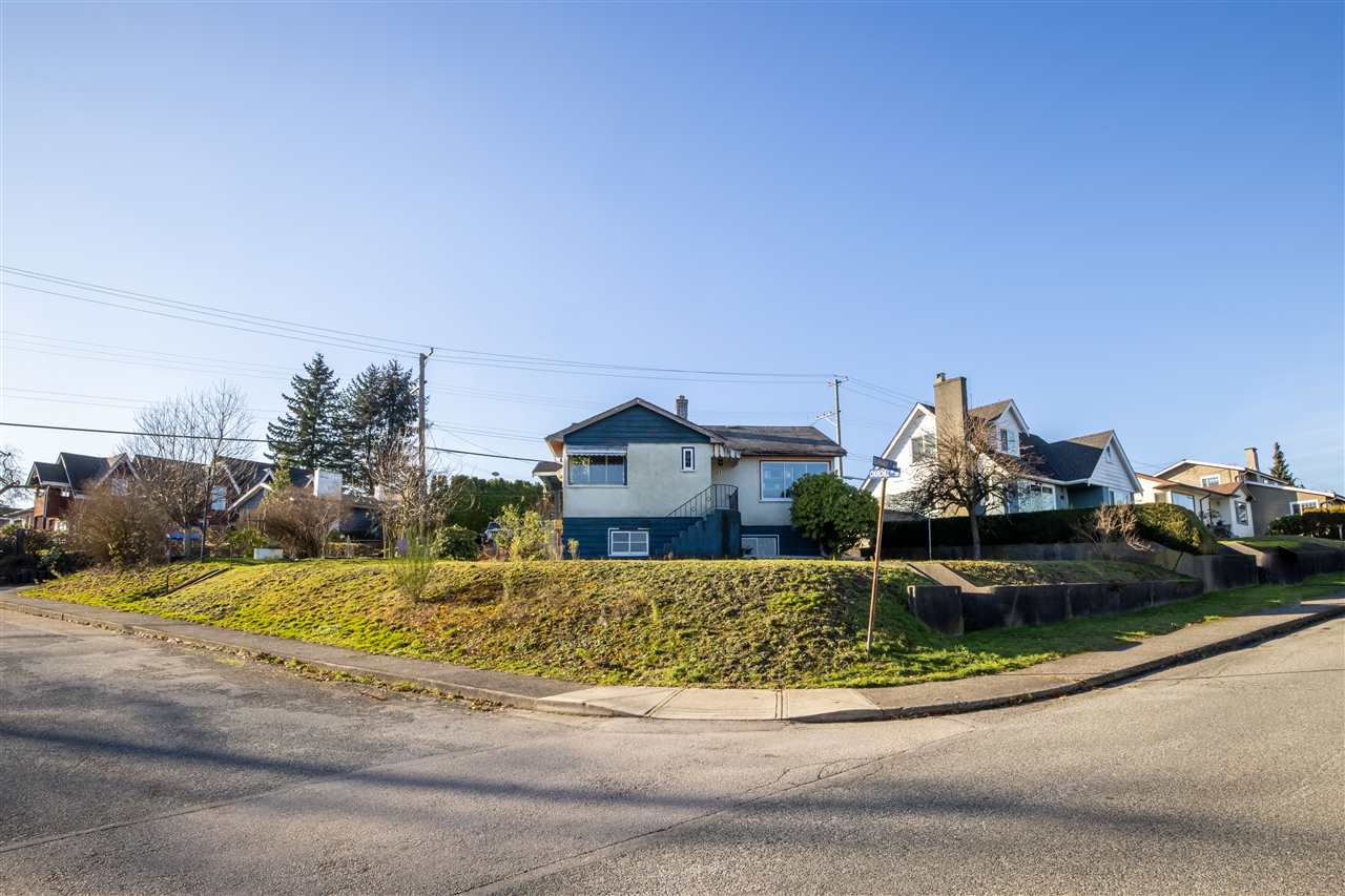 MILLION DOLLAR VIEWS in the HEIGHTS! Incredible unobstructed breathtaking South East views of the North Shore mountains, Fraser River & Valley! Get the house plans ready! Massive 7511 sqft corner lot on quiet street in the Heights. 52′ frontage x 109′ depth with back lane. Fantastic location perched high on the hill. Older 2 bedroom basement home with 2 bedrooms down. Zoning allows for potential lane home / basement suite.