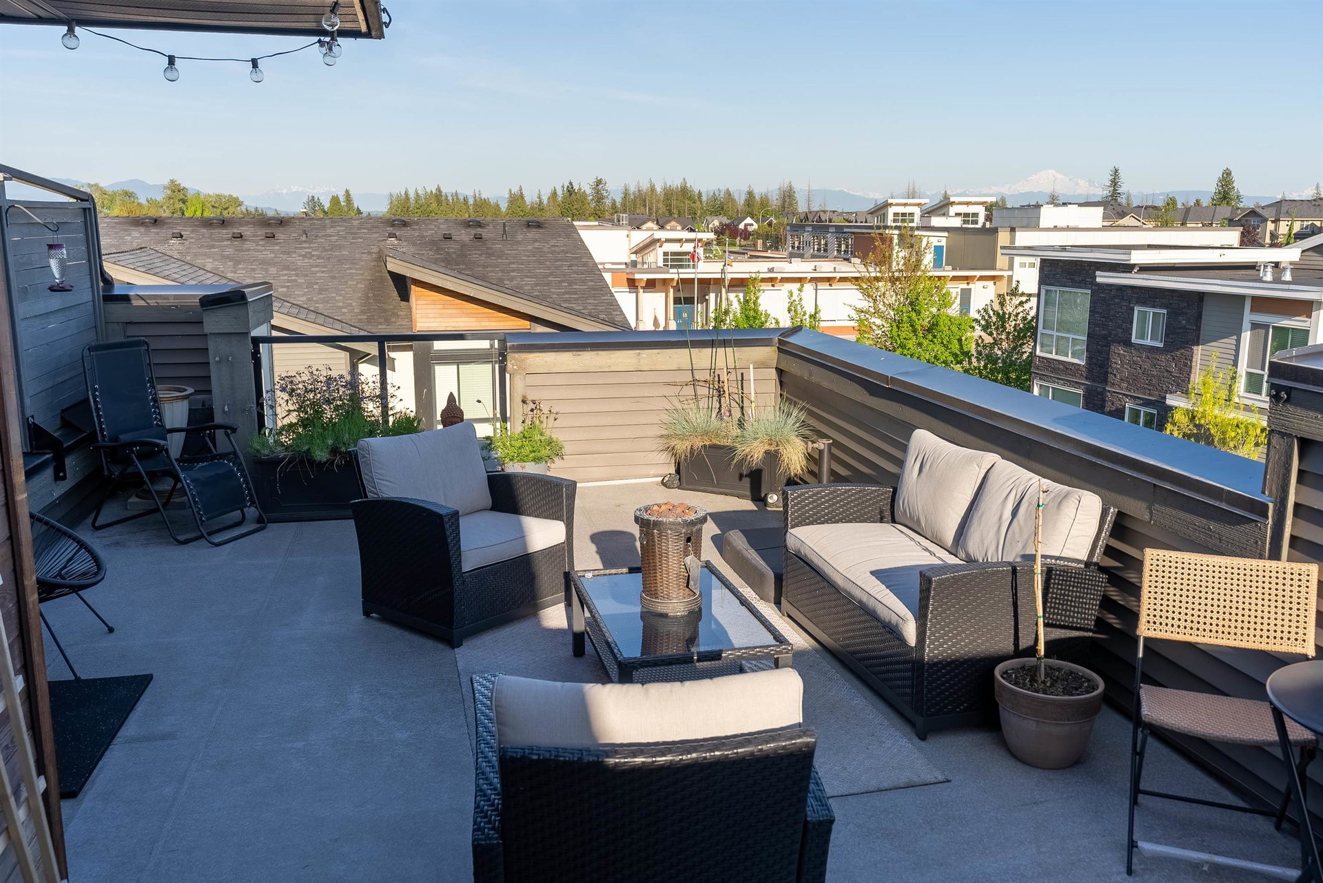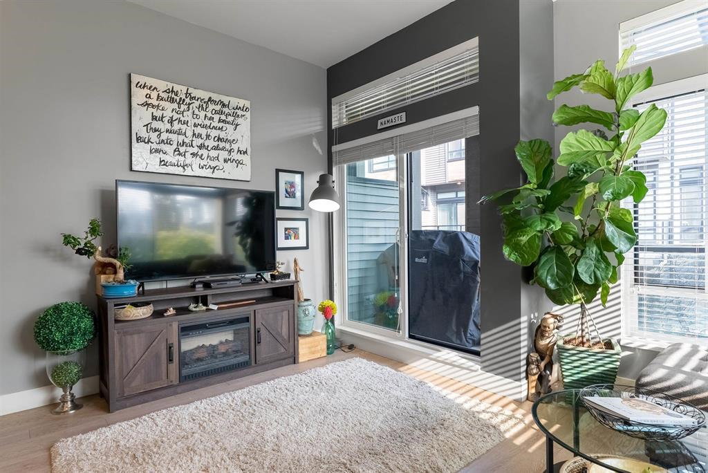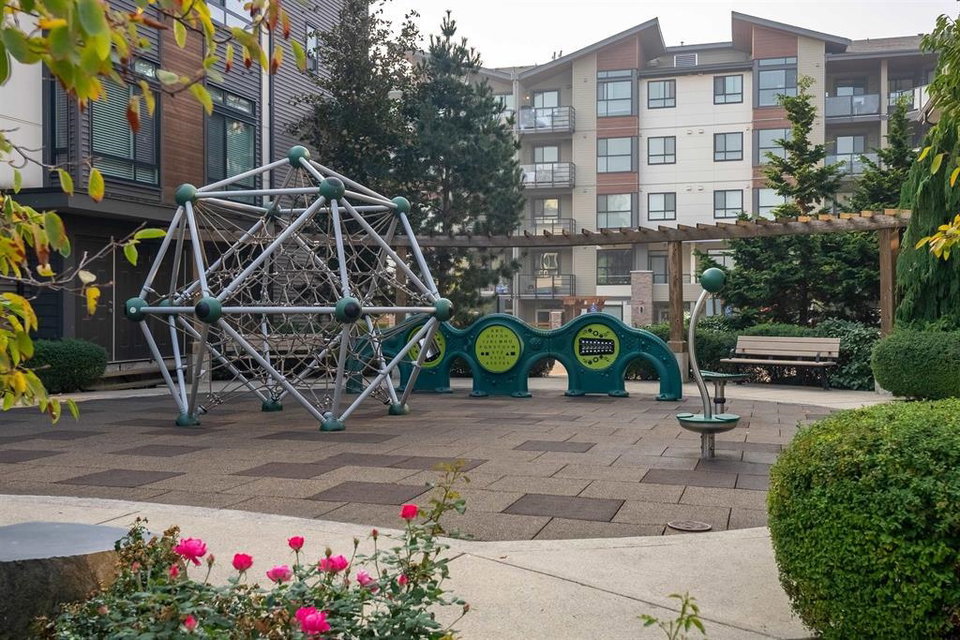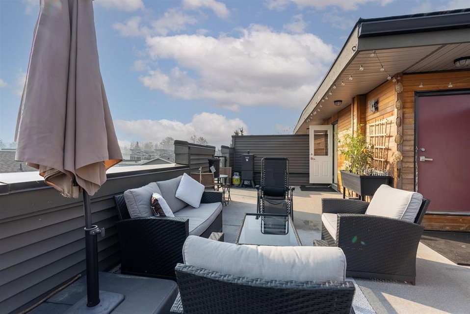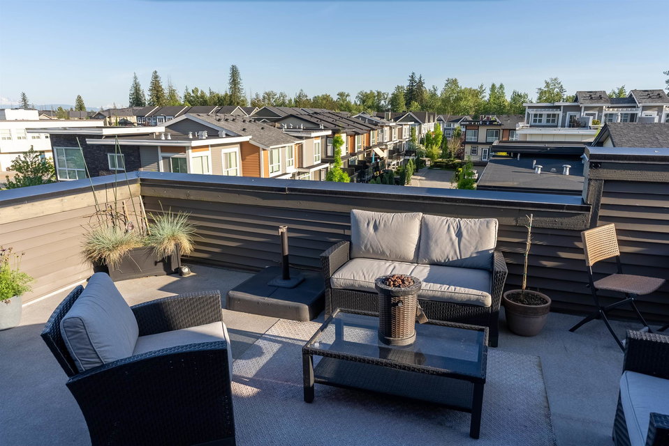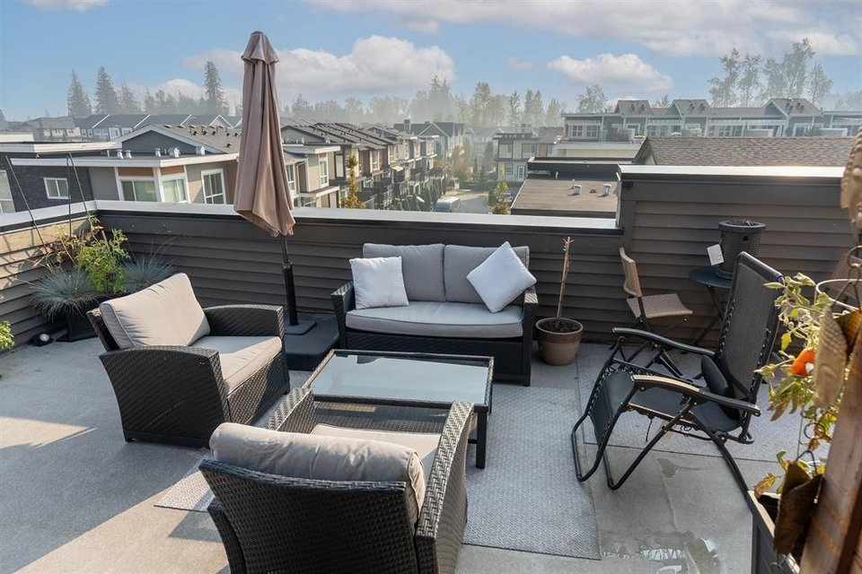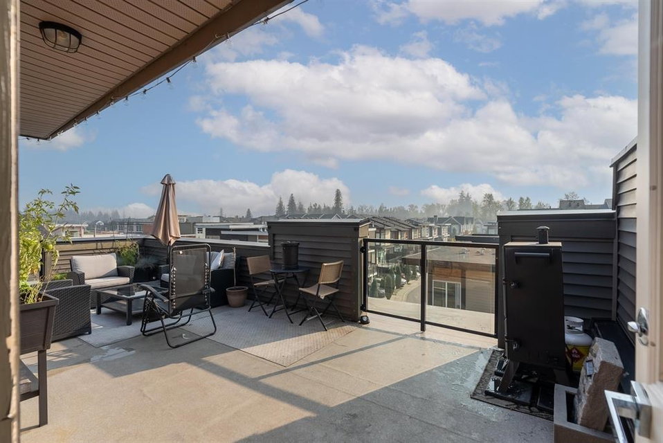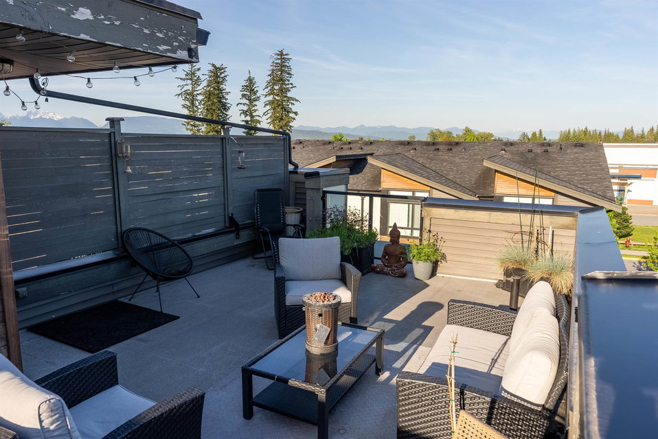 The convenience and comfort of living in the heart of Willoughby. This corner unit boasts many elegant features throughout the home. Bright South East facing living room and main floor patio, lots of natural light and many windows, complete with 10 ft ceilings and spacious open floor plan. Panoramic views of Mt Baker & Mountains from an enormous 435 sq ft Roof Top Patio, is an Entertainers delight. Neighbour to the south is none other than the community garden alley complete with planters, and Saskatoon bushes. Pet Lovers you’re in luck, bring your big Dog or two and even add a cat. Strata fee, ultra low and if you wish to rent one day, that is also allowed. Richard Bull Pitt elementary is at your front door, transit, hwy.NO SIZE DOG restrictions