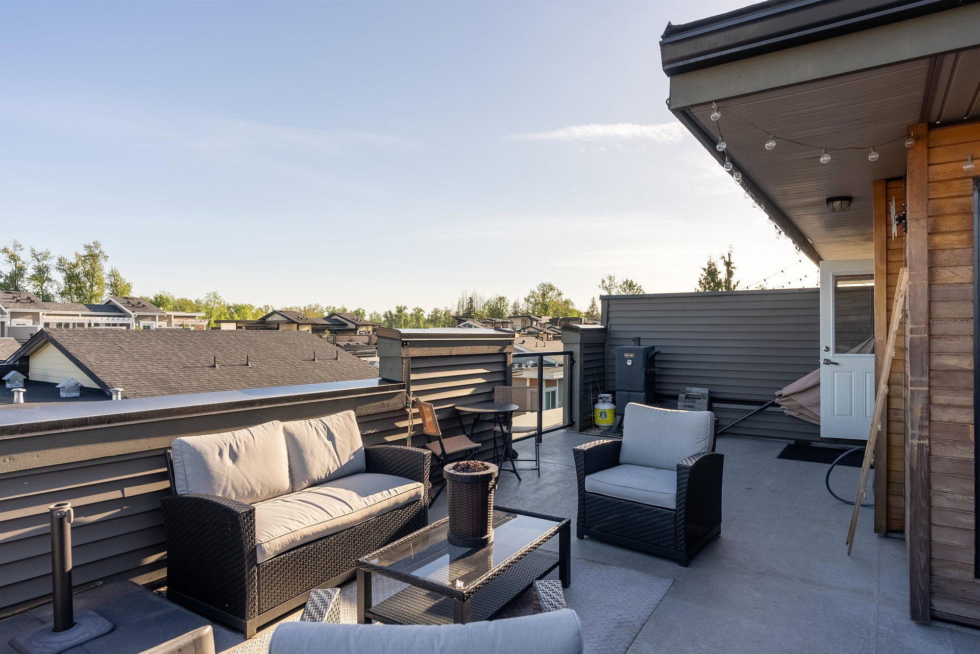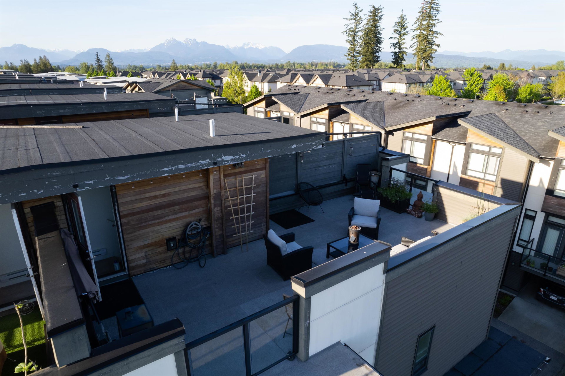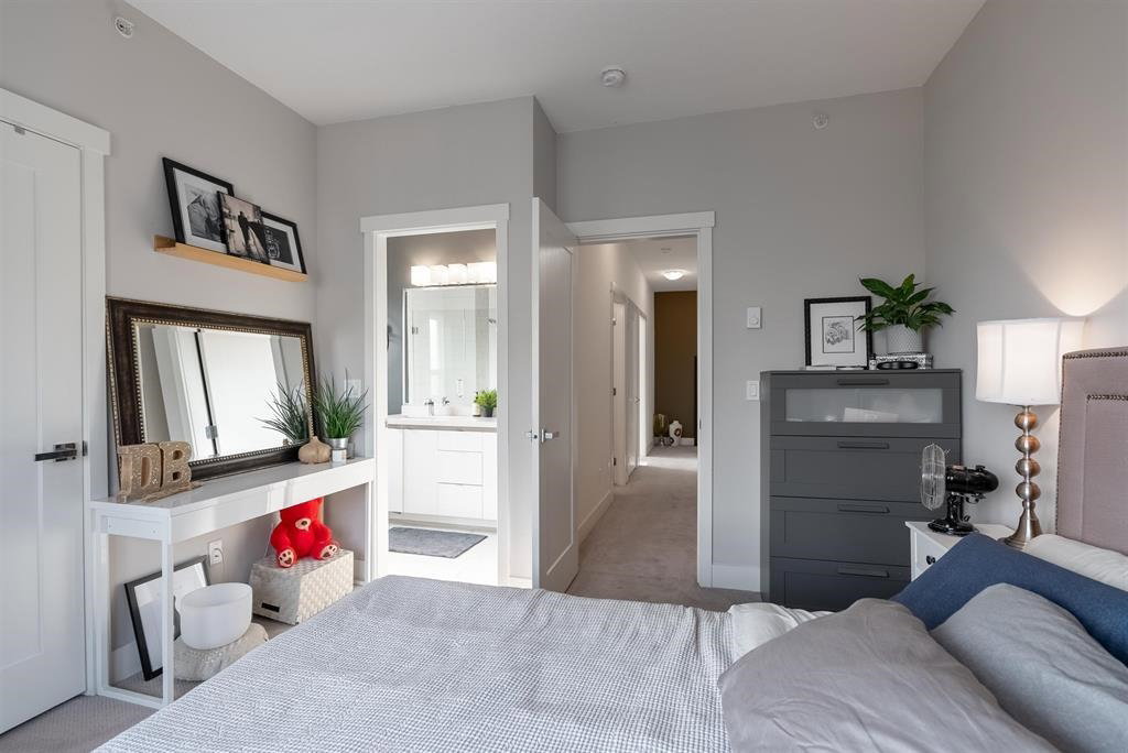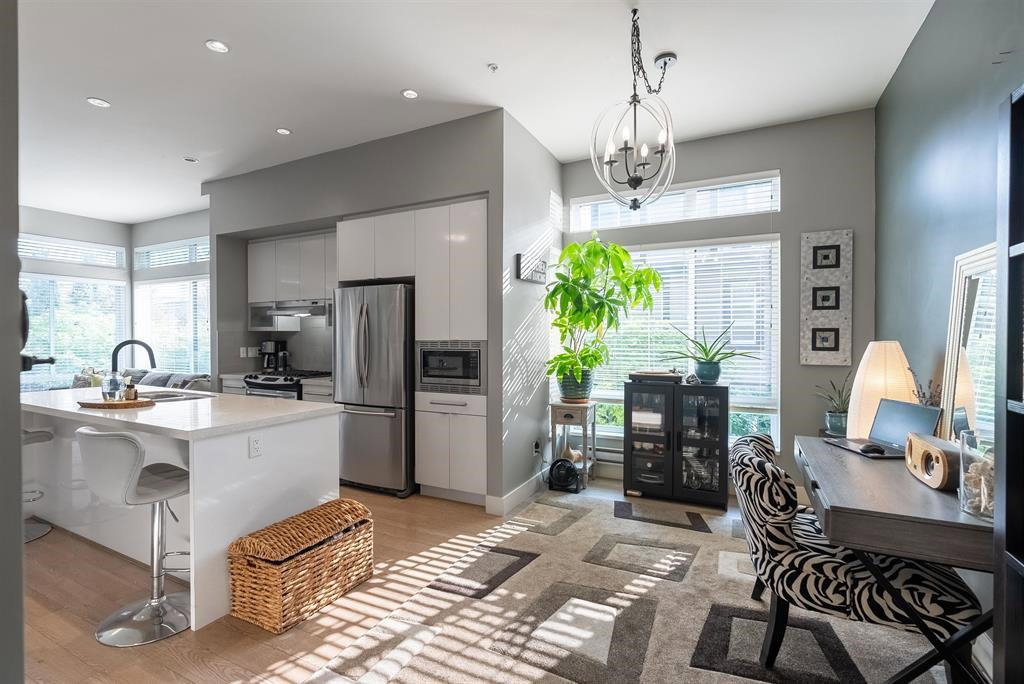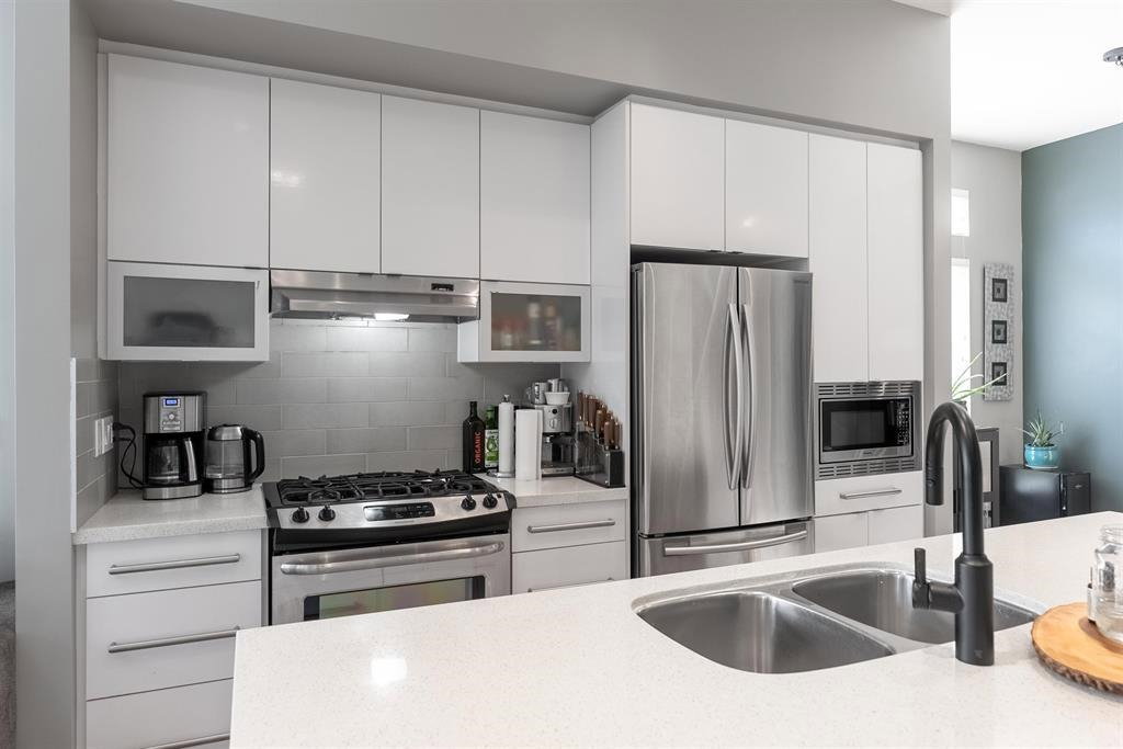 The convenience and comfort of living in the heart of Willoughby. This corner unit boasts many elegant features throughout the home. Bright South East facing living room and main floor patio, lots of natural light and many windows, complete with 10 ft ceilings and spacious open floor plan. Panoramic views of Mt Baker & Mountains from an enormous 435 sq ft Roof Top Patio, is an Entertainers delight. Neighbour to the south is none other than the community garden alley complete with planters, and Saskatoon bushes. Pet Lovers you’re in luck, bring your big Dog or two and even add a cat. Strata fee, ultra low and if you wish to rent one day, that is also allowed. Richard Bull Pitt elementary is at your front door, transit, hwy.NO SIZE DOG restrictions