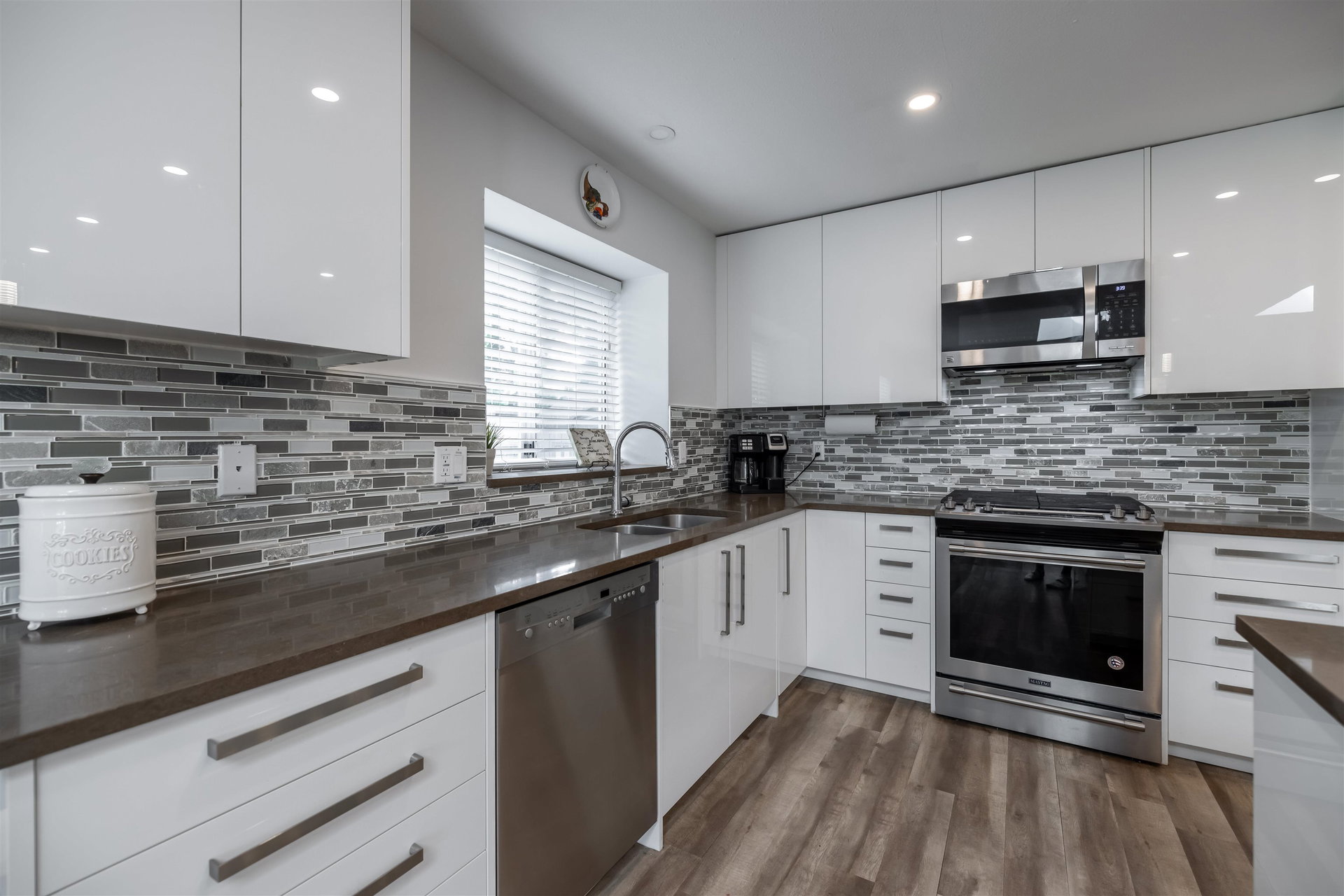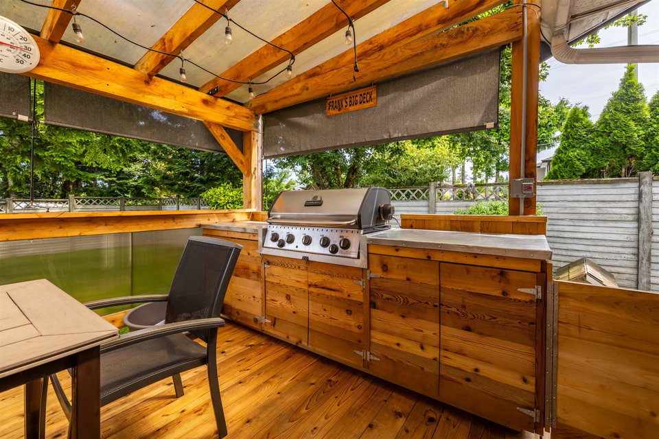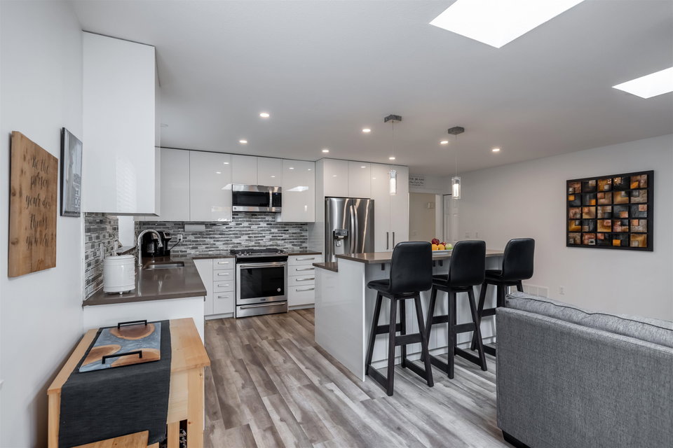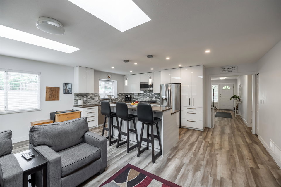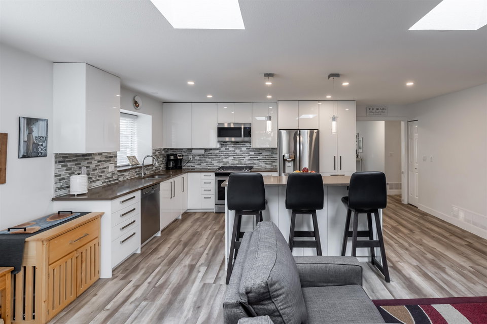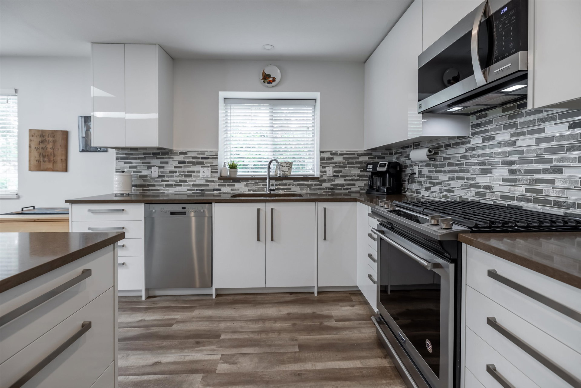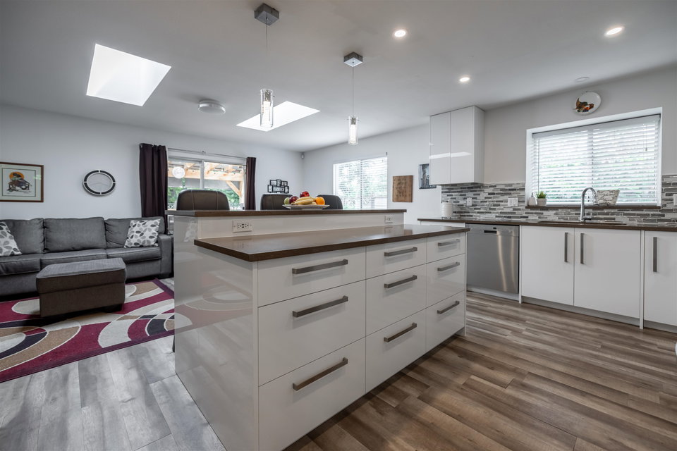 Incredible 1638 sq ft 3 bedroom RANCHER in Fleetwood with DETACHED shop on nearly a quarter acre lot (9561 sq ft!) This large corner property has power gate at rear and is dream for someone with a 30′ trailer and toys. 21’3 X 29’4 shop with 220 power & is great private spot for someone with a home business. Updated home with new flooring, lighting, bathrooms, moldings & warm paint tones throughout. Spacious living & dining area to entertain. Stunning kitchen w quartz countertops, gas range, stainless steel appliances & island for your stools & guests! Skylights bringing in loads of natural lights throughout home. Entertain your friends on your beautiful, covered deck w built in bbq station w natural gas. Private fenced yard & Newer furnace w AC! Pride of ownership here!
