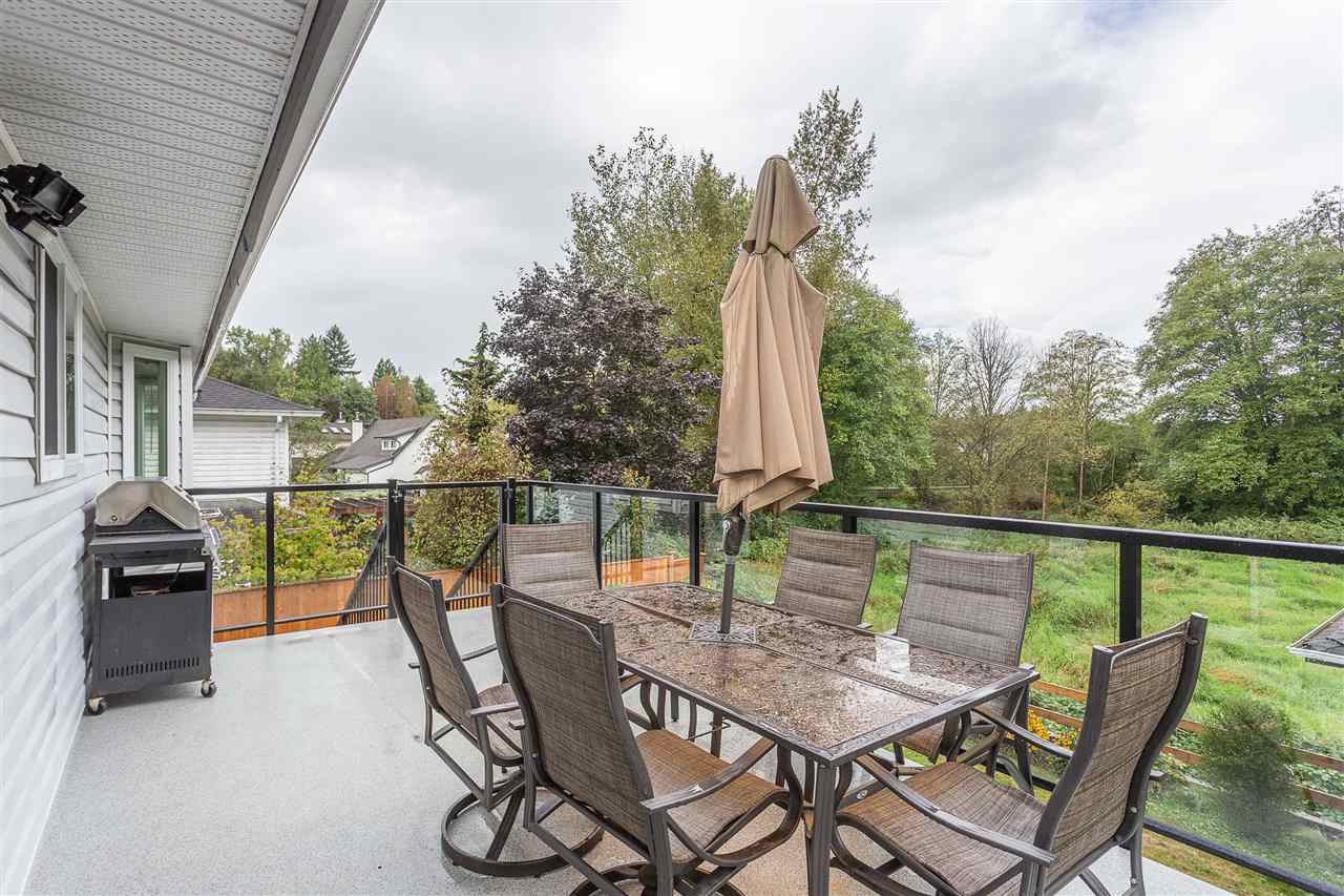 Immaculate updated basement entry home with 4 bdrms, 3 baths backing onto greenbelt. Newer hardwood flooring, kitchen with quartz counters, huge island, herringbone marble backsplash, SS appliances, wine fridge. Open concept. Living room with new gas F/P. 3 bdrms up including master bdrm with 4 pc ensuite. Bsmt with newer wet bar, family room & ready to be suited. New deck over looking beautiful green belt. All new windows, bathrooms re-done, light fixtures, flat ceilings, exterior paint, landscaping and fencing all done in 2017. A/C. Double garage. Quiet no through street close to walking trails, schools and transit. A must see!