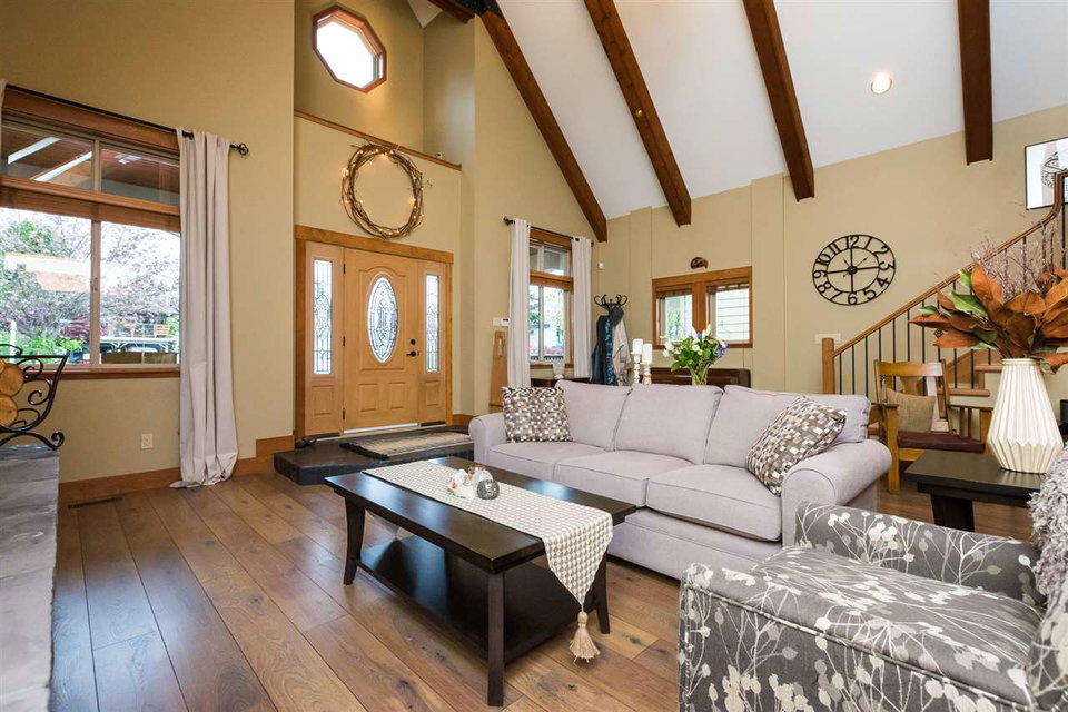 Showcasing this beachside GEM! A fantastic “open concept” layout with an abundance of living space on the main floor. The great open features a full size “one of a kind” fireplace reminiscent of Whistler, with vaulted ceilings and exposed beams throughout. Two large bedroom on the main floor, and a full size bathrooms are perfect for guests, teenagers or an elderly family member. Upstairs you are welcomed by a large mezzanine office/library prior to entering your master bedroom retreat complete with a fabulous ensuite, large walk in closet and an incredible private balcony overlooking a western exposed “jewel” of a backyard. Two blocks to a bus route, minutes to Hwy 99 and the Canada/US Border. This home is a 10!