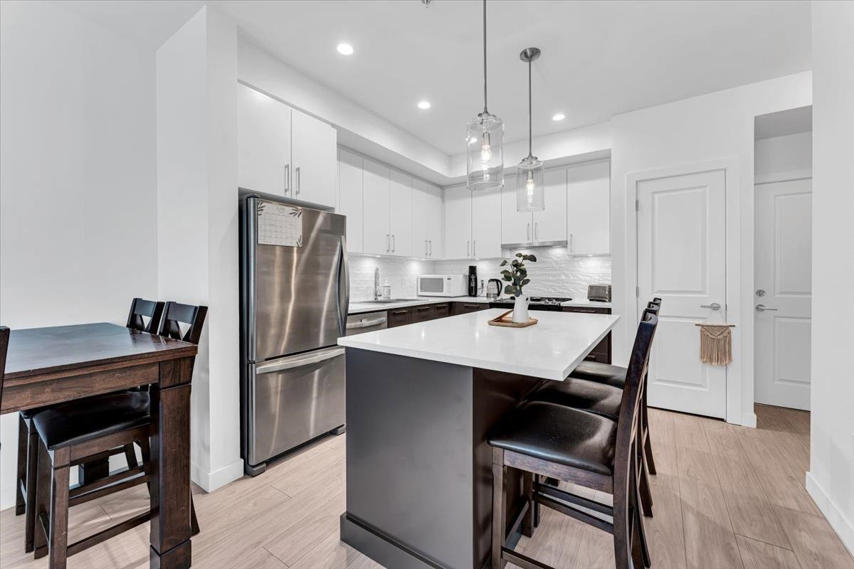 Welcome to Alexander Square, in the heart of Willoughby, walking distance from the vibrant Town Centre. Developed by RDG, this modern 1 Bedroom unit offers a sleek design with its stunning kitchen with floor-to-ceiling cabinets, quartz countertops, stainless steel appliances, & Whirlpool washer/dryer. Enjoy the convenience of 1 parking spot & 1 storage locker. From a fitness room & entertainment lounge to a rooftop deck with BBQ facilities & outdoor seating, community garden plots, a play area for kids with an inviting courtyard with fire pits, the amenities are plenty. Ideal for first-time buyers or investors, the location ensures easy access to Hwy 1, Fraser Hwy, & nearby schools. Alexander Square promises a modern lifestyle with urban convenience. Open House Nov 09,2024 2-4