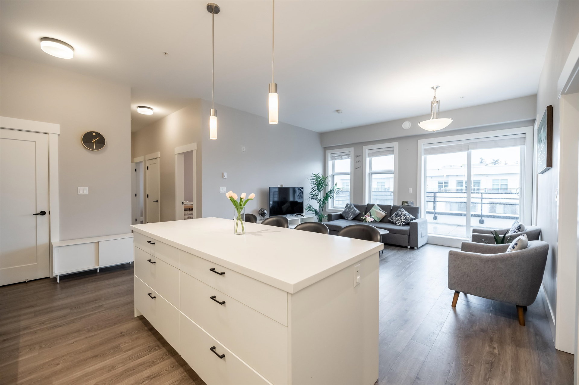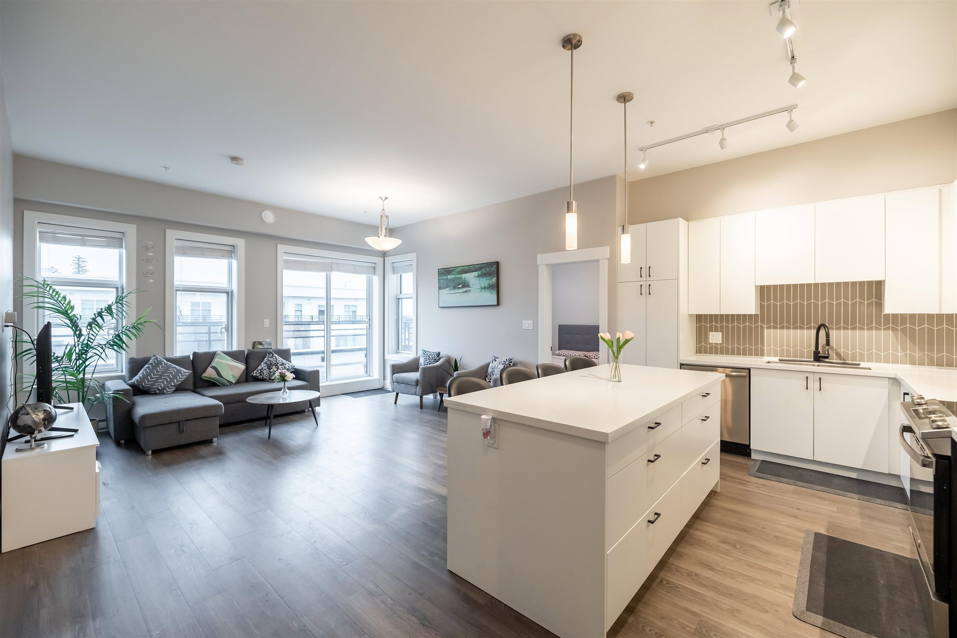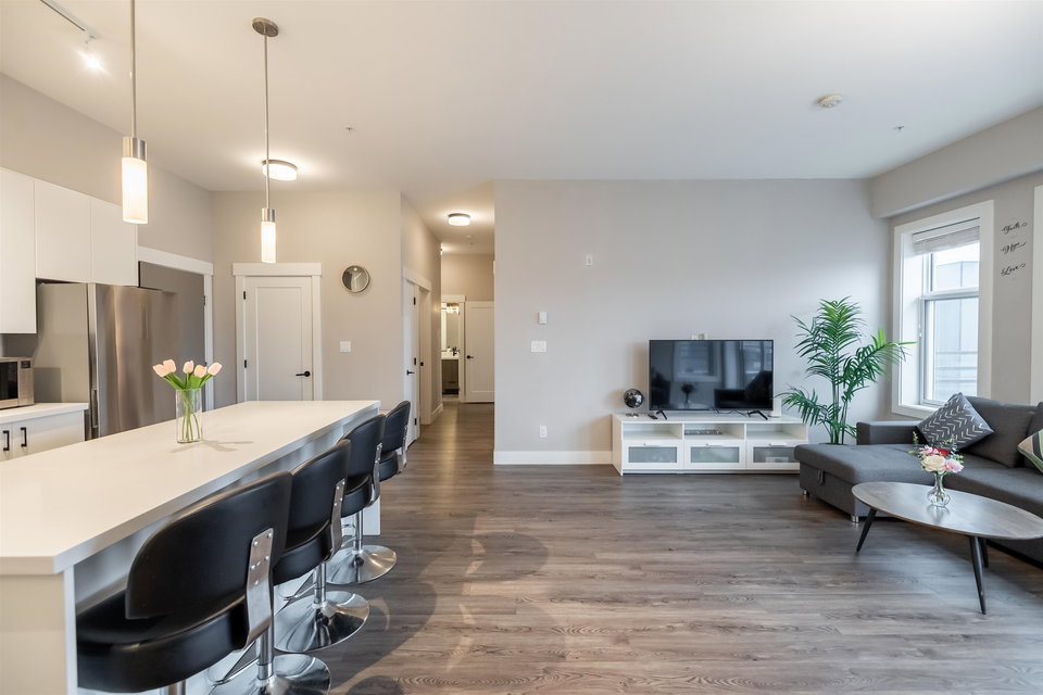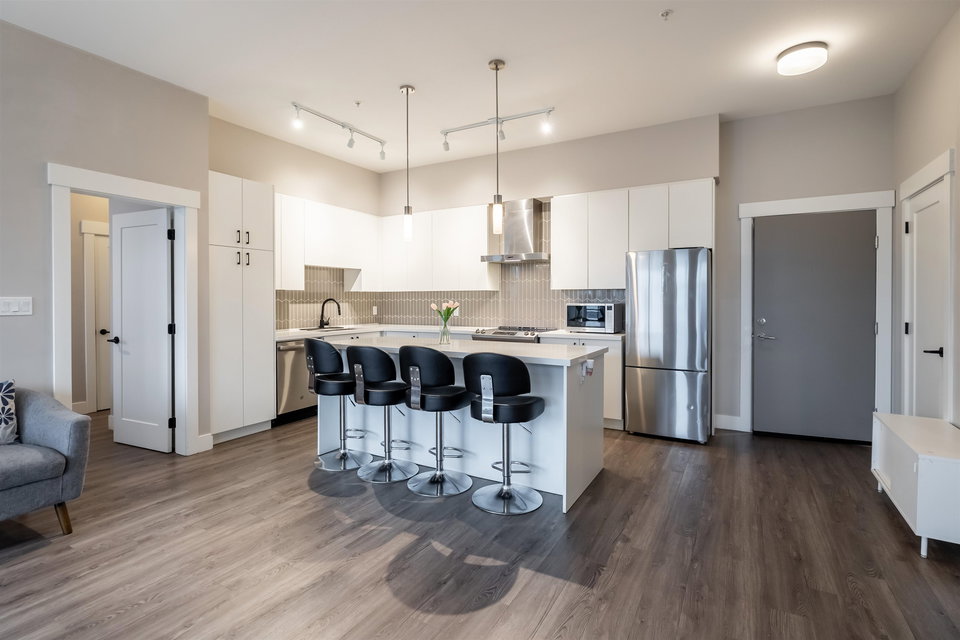 Welcome to Hudson & Singer, nestled in the heart of Willoughby Heights. This stunning 3-bedroom, 2-bathroom & den top-floor PENTHOUSE is sure to impress. The unit features S/S appliances, an elegant open-concept kitchen with a large island, a spacious private balcony, large windows that let in plenty of natural light and 2 parking stalls. You’ll enjoy high-end finishes such as white quartz countertops, vinyl plank flooring, soft-close kitchen cabinets, and 9-foot ceilings. With access to an amenities room, a putting green, a community garden and a barbecue area. Convenience is key, as Willoughby Town Centre is at your doorstep, offering shopping, dining options, grocery stores, and plenty more! Minutes away from Hwy1, schools & parks don’t miss out on seeing this exceptional PENTHOUSE!