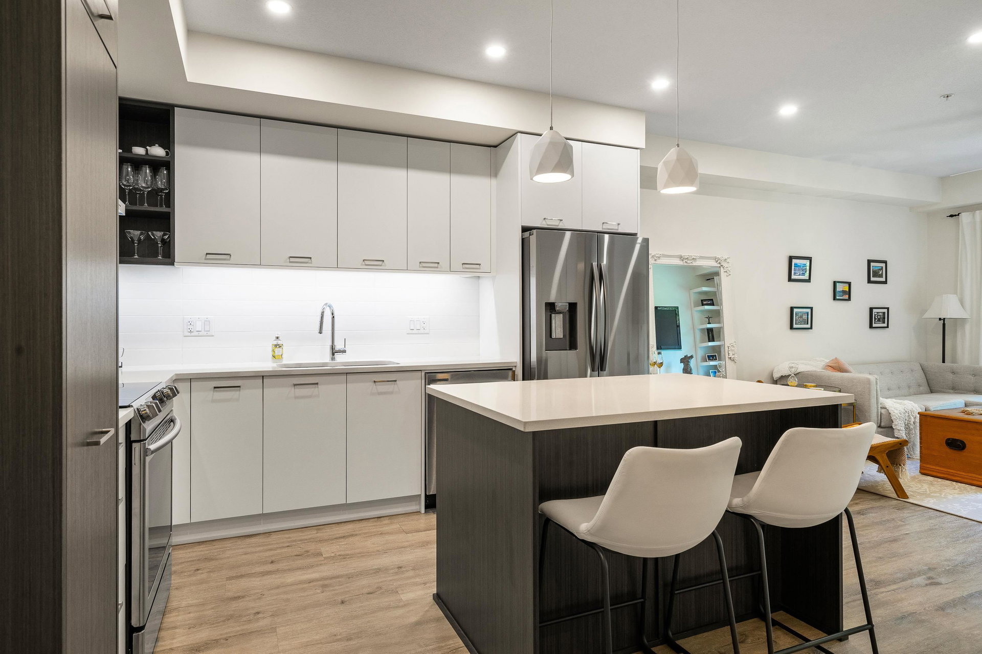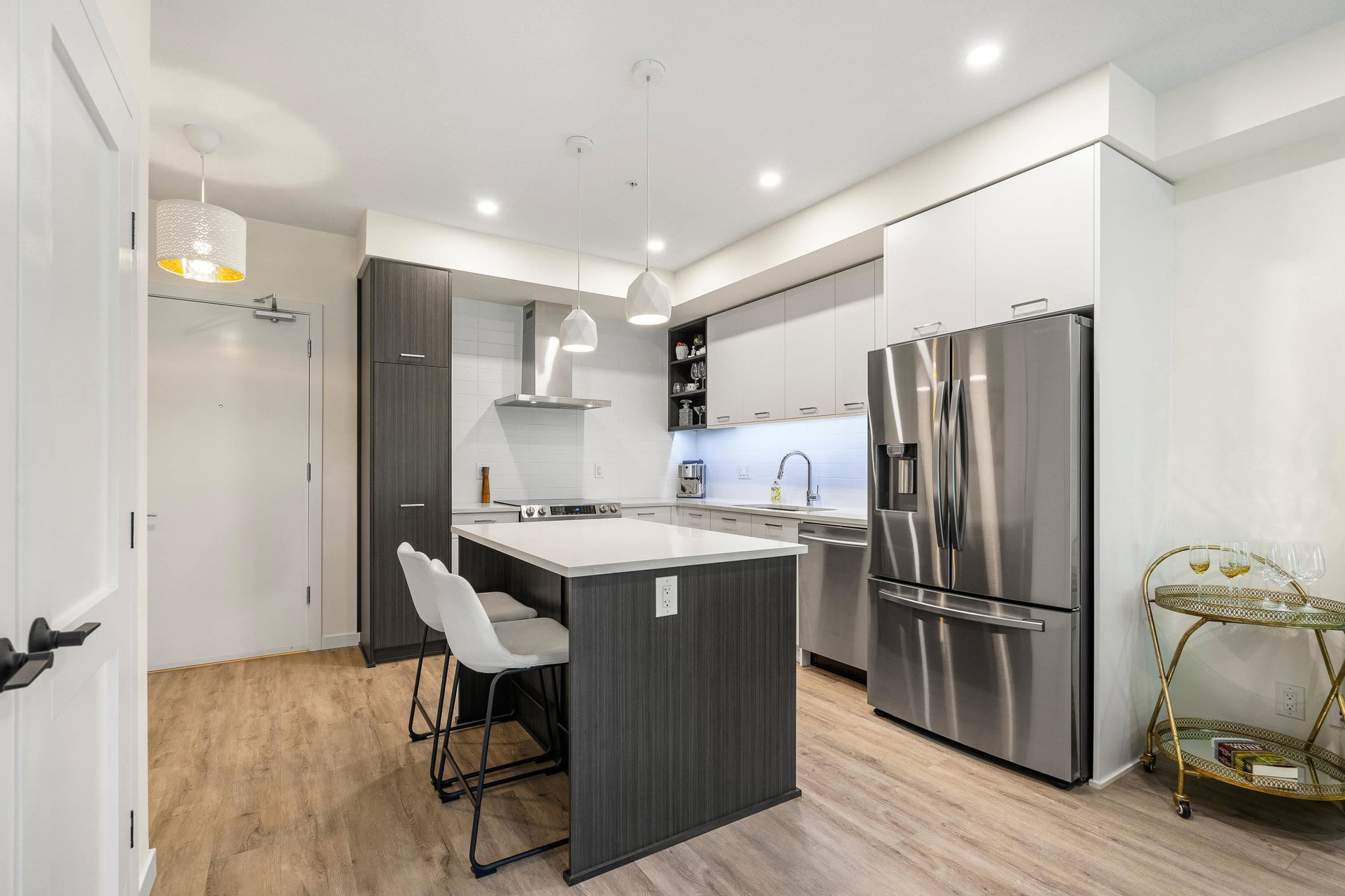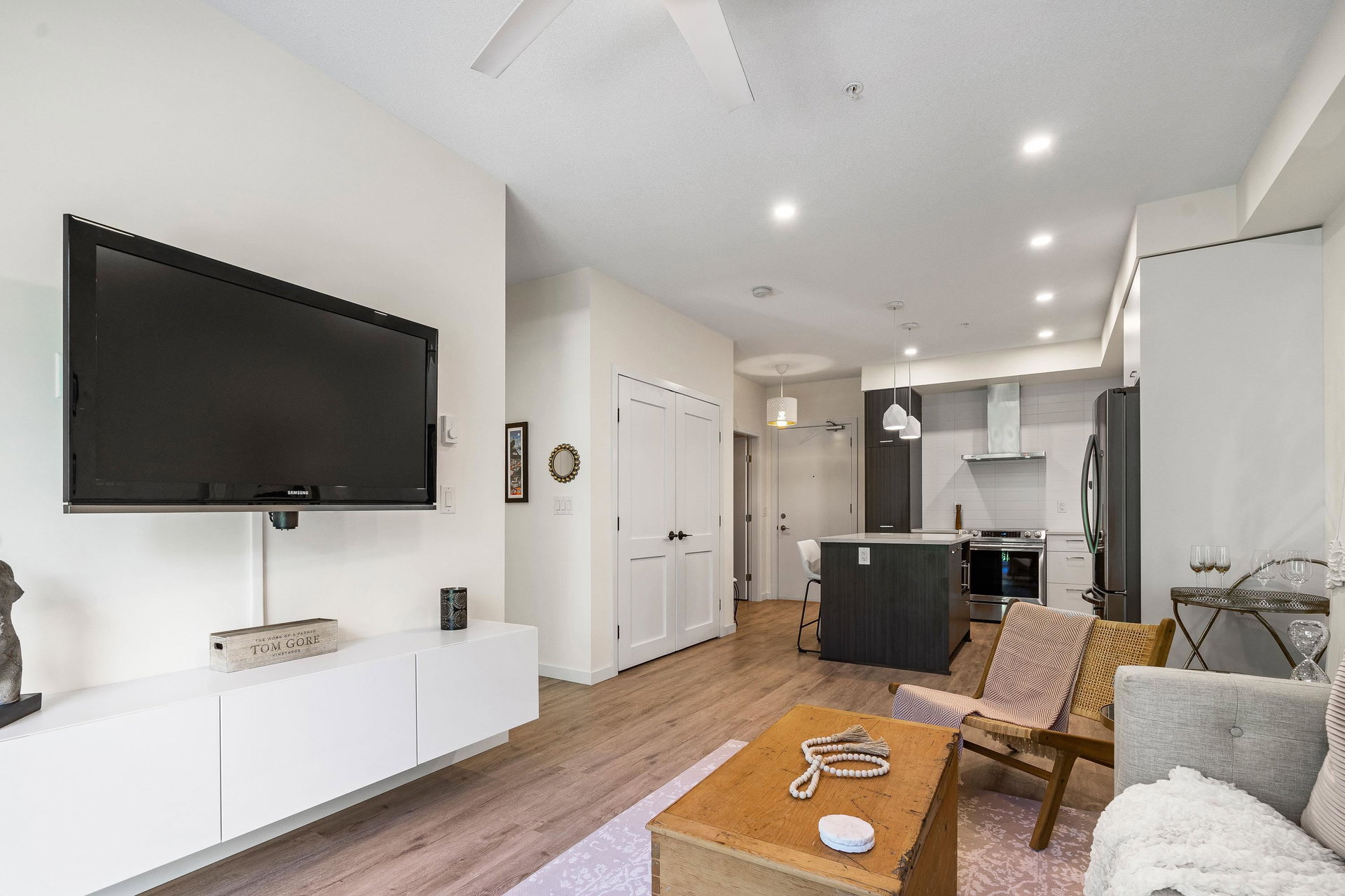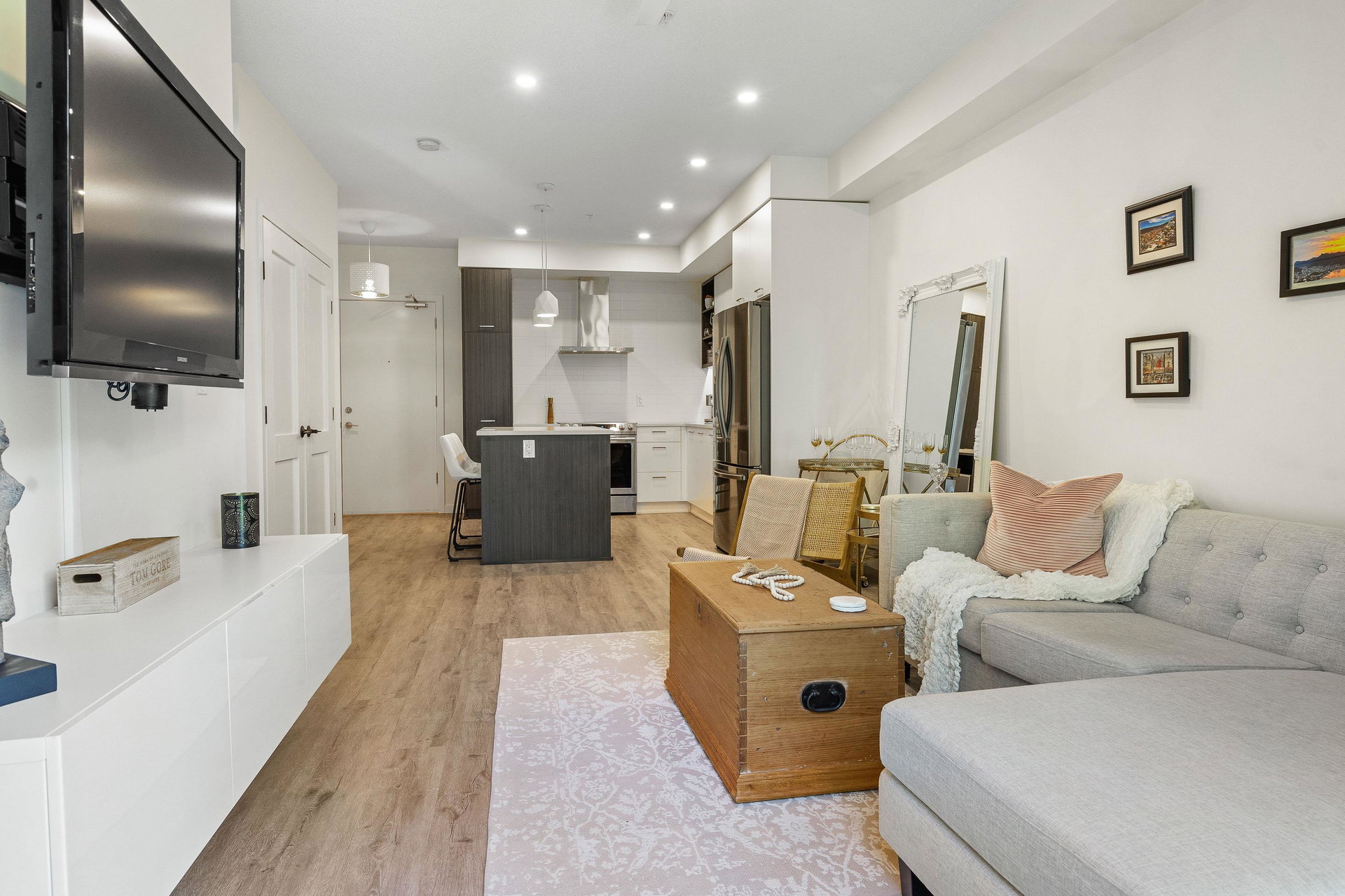 Welcome to your dream home at Park Hill in Willoughby Heights! This stunning 680-square-foot unit features 1 bedroom and a versatile den. The open-concept living area includes a massive kitchen with high-end appliances and ample cabinetry. The spacious living room flows into a private balcony overlooking a lush greenbelt, offering extreme privacy. The primary bedroom is a serene retreat with a large closet and picturesque views. The versatile den can be used as an office, guest room, or reading nook. Enjoy in-suite laundry, high ceilings, secure parking, and storage.Located near shopping, dining, parks, top-rated schools, and public transit, this pet-friendly building offers convenience and comfort. Make this exceptional property your new home today!