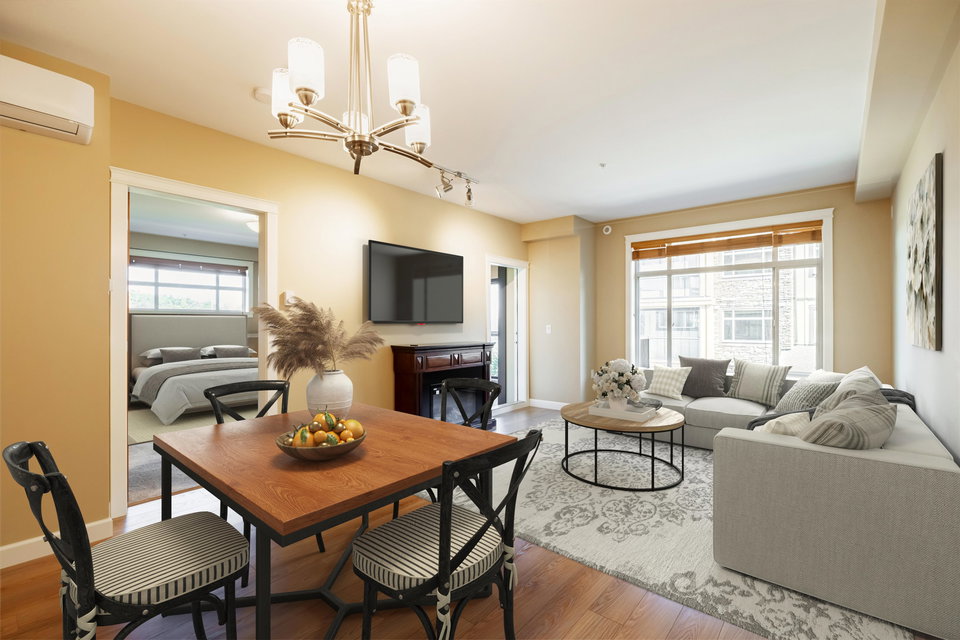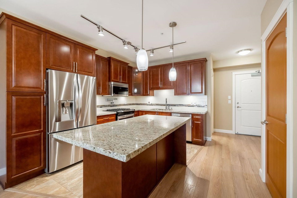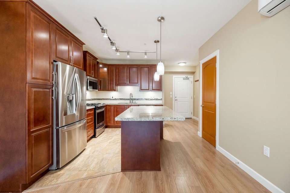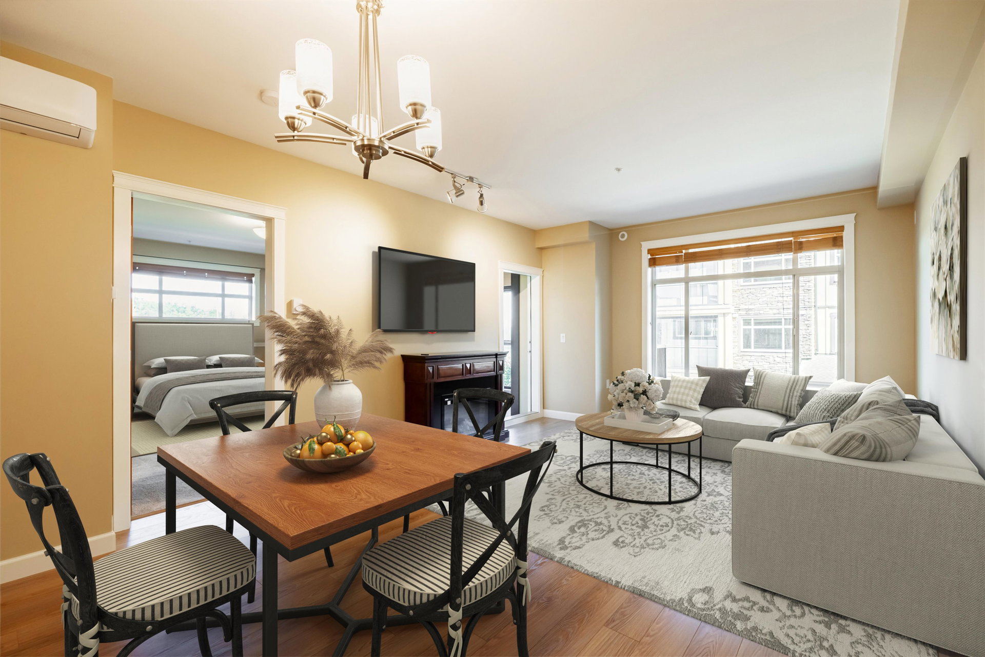 Welcome to Walnut Ridge 4 at Yorkson Creek by Quadra! This rarely available 3 BDRM corner unit with breathtaking MOUNTAIN VIEWS has it all! 1400 sq ft with 269 sq ft enclosed balcony (21’x11′)! Gourmet kitchen includes gas range with pot filler (gas included in your strata fee), stainless steel appliances, granite counters w/ undermount sink, cabinets with undermount lighting, tile flooring and a large island! You will love the park and mountain views from your private northwest facing solarium! Enjoy the comfort of air conditioning in all 3 bedrooms as well as main living area! 2 secure underground parking stalls and convenient access to your storage unit that has power! Footsteps to dog park, shopping & easy access to HWY 1. Don’t miss this one, truly a 10 out of 10, call today!