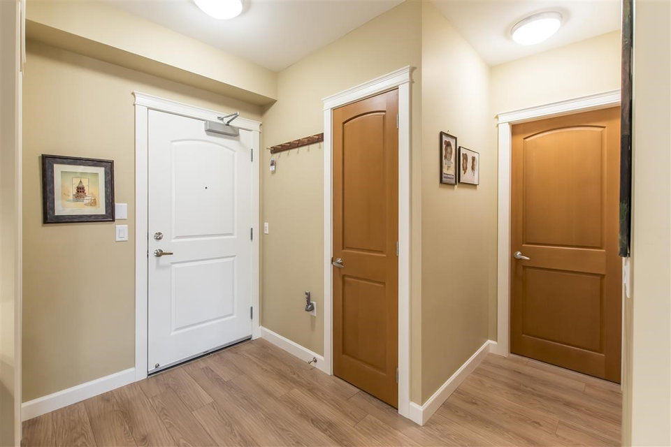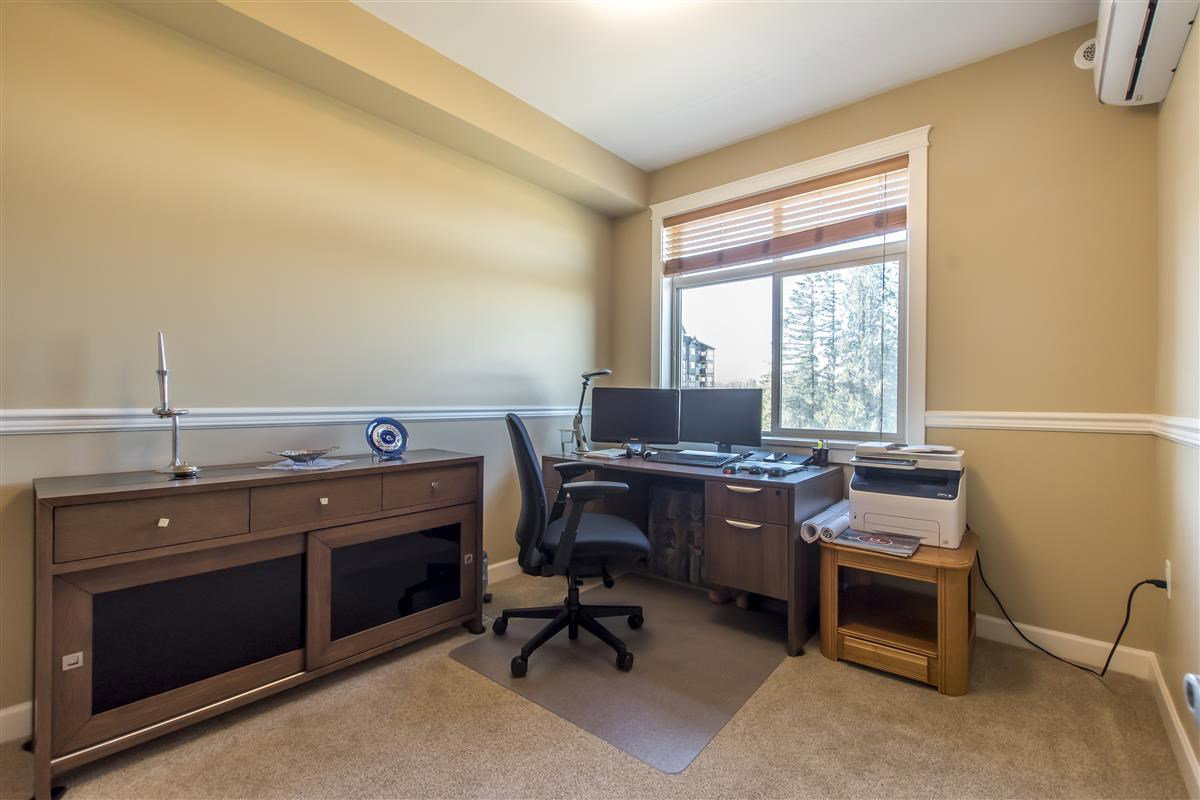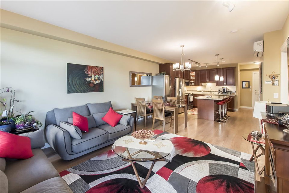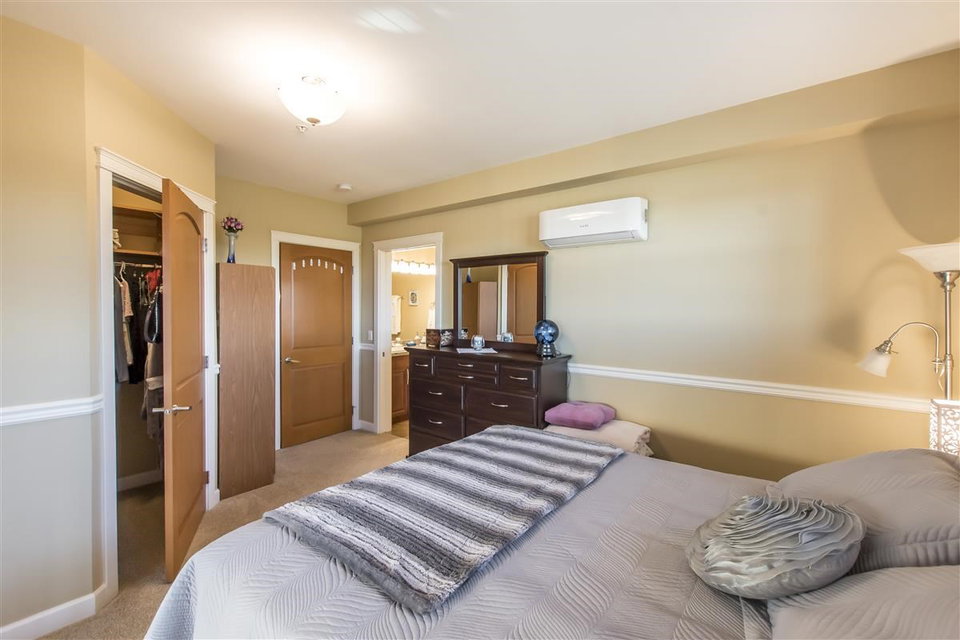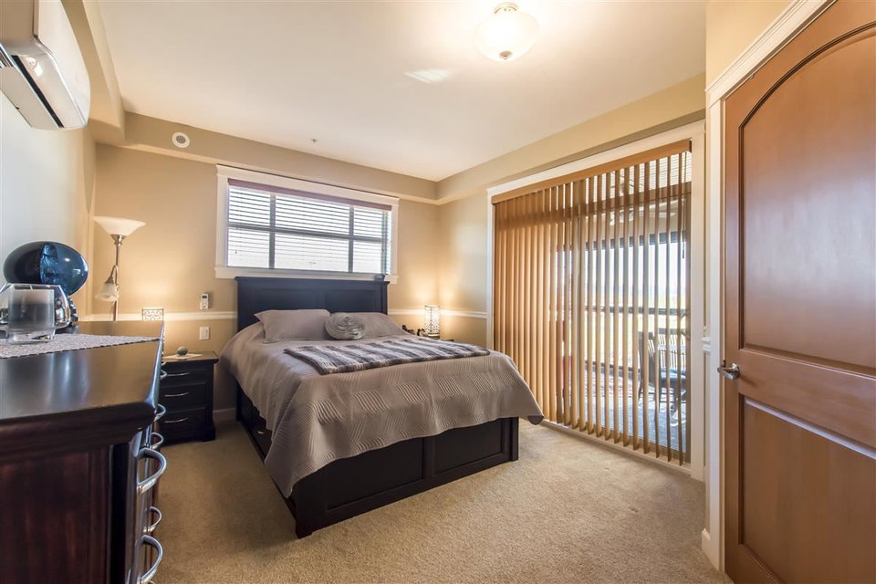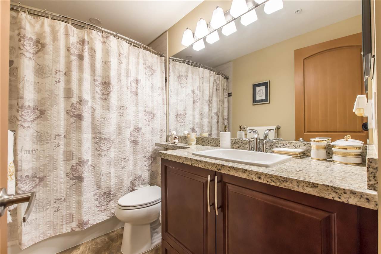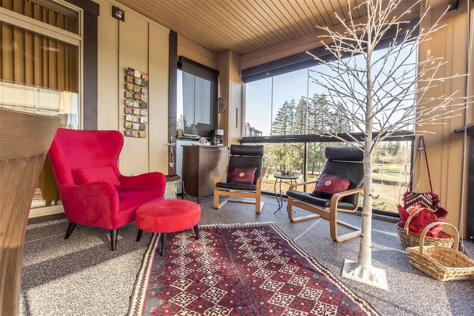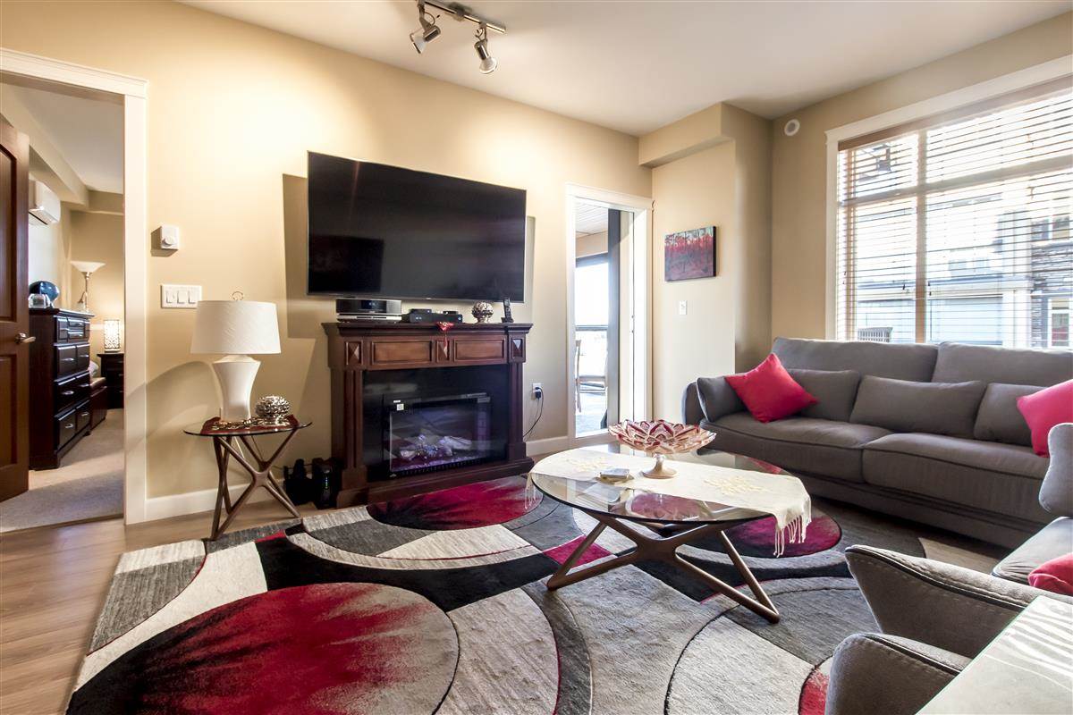 This 3 Bed & 2 Bath apartment is one of the best Corner Units with a Beautiful Mountain & Courtyard View at Yorkson Creek, Walnut Ridge.1,375 SF of livable space including a large(255 SF)enclosed solarium (upgraded with blinds) with retractable glass panels, gas BBQ hookup. Open living space with 9 ft. ceilings, electric fireplace and a kitchen with upgraded high quality stainless steel appliances, gas stove, pot filler and granite counters. A/C and a heat pump in all bedrooms and the living room. Heated floors in the bathrooms with heated mirrors. Solid wood doors and cabinets throughout offering lots of storage space. Free cable and internet for another 3 years, built-in safe, full size laundry! Two great parking spots and a storage attached to parking. Call today for private viewing.